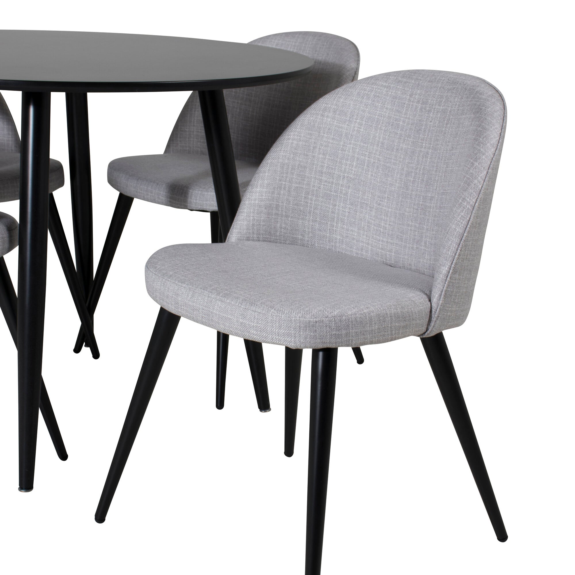 Plaza Runt Matbord - Svart / Svart - ø100*H75 +Velvetová jídelní židle - Černé nohy - Světle šedáTkanina _4