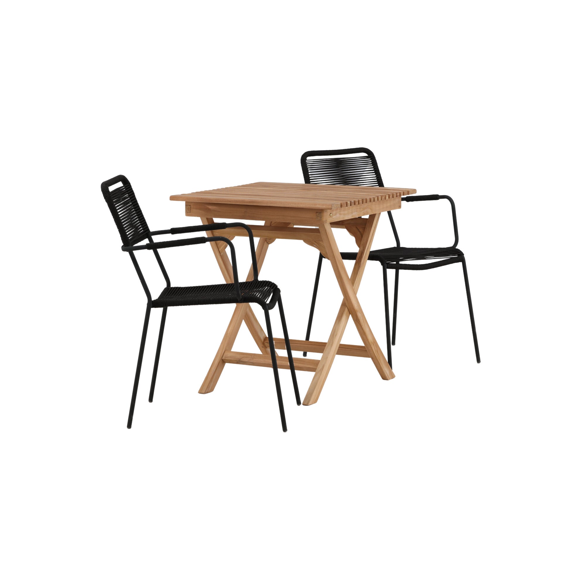 Ghana - Skládací stůl - Natural - Teak - 70*70cm _1+ Křeslo Lindos - Black Alu / Black Lano _2