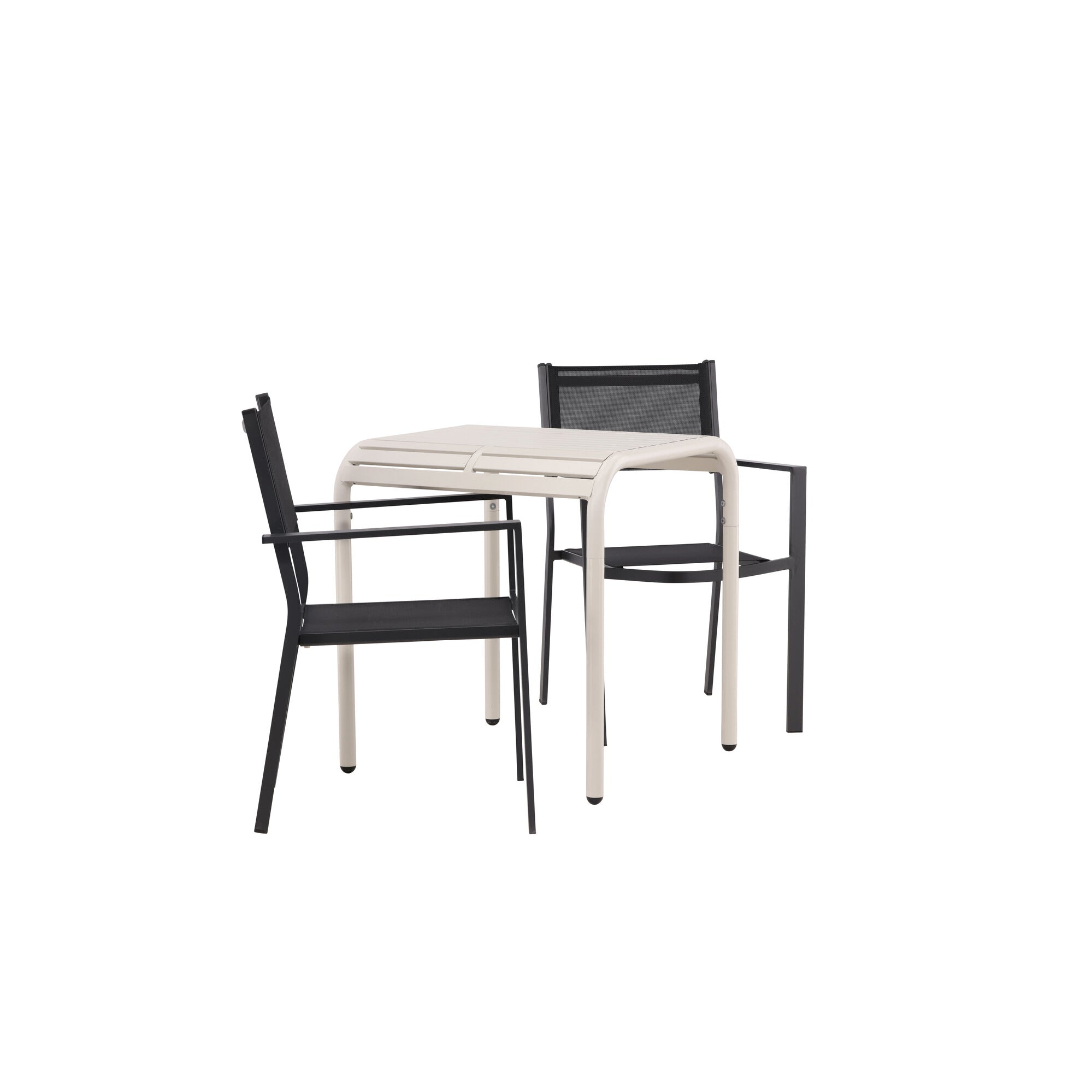 Hliníkový jídelní stůl Borneo – béžový / Kvadrat 70*70* + hliníková jídelní židle Tablas – černá / _2