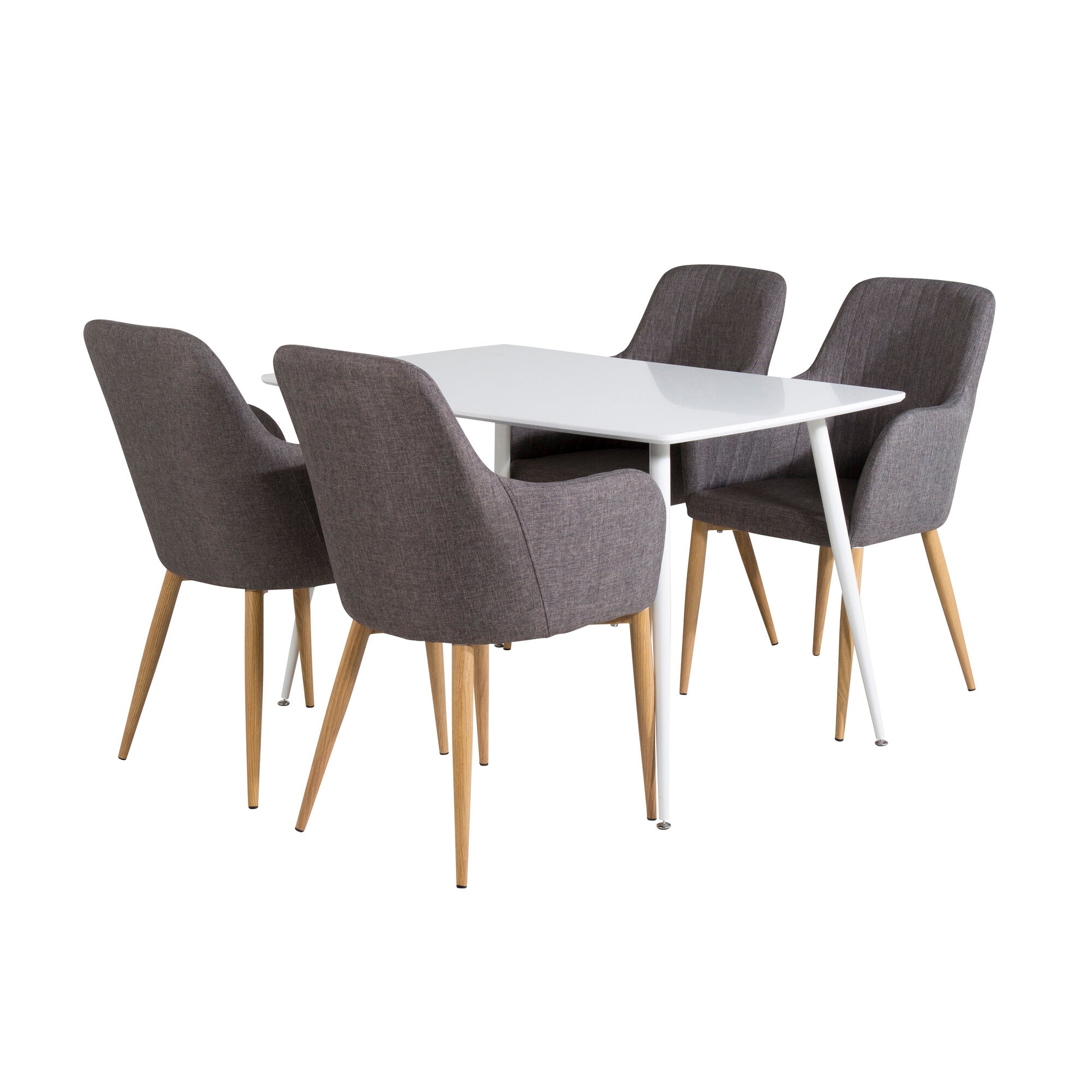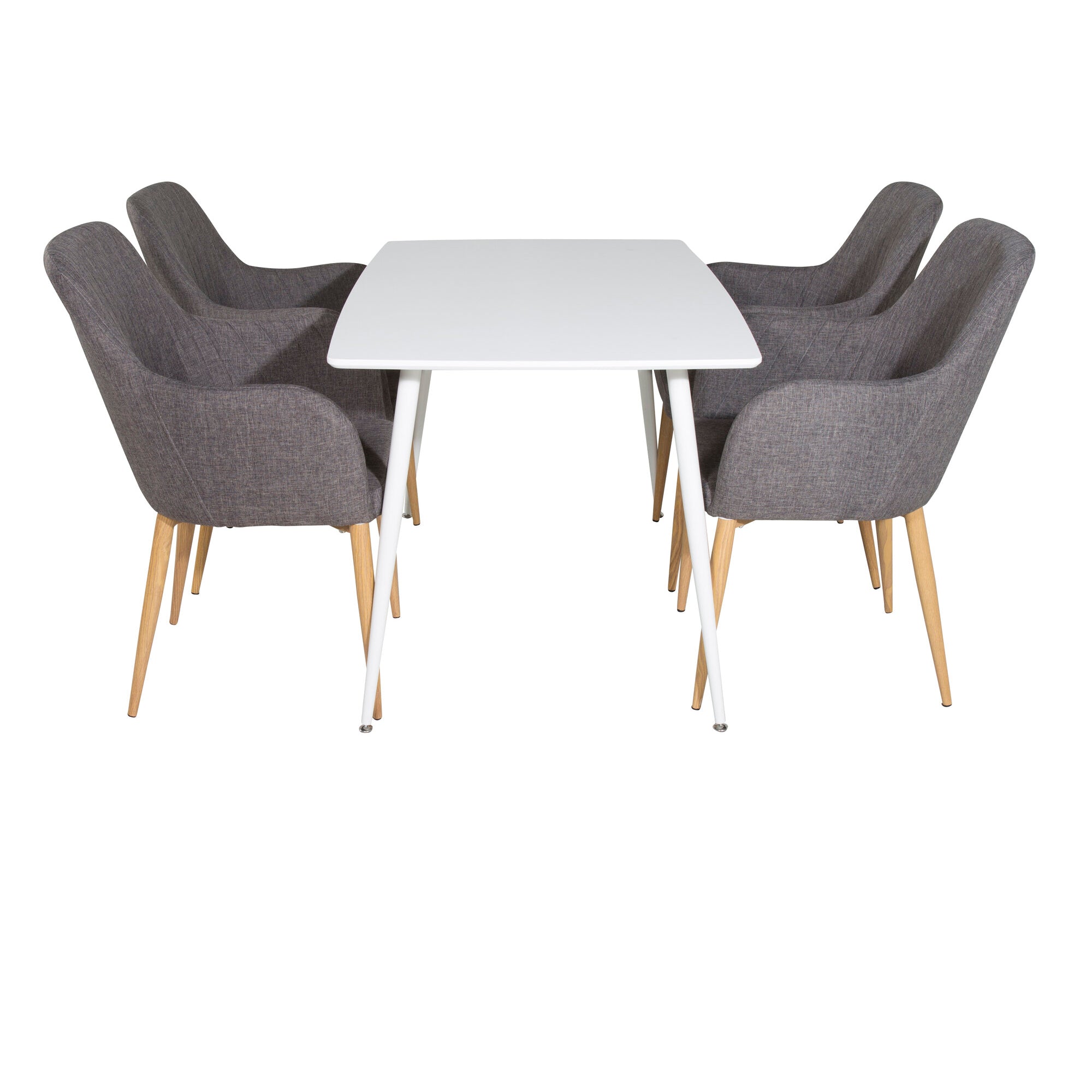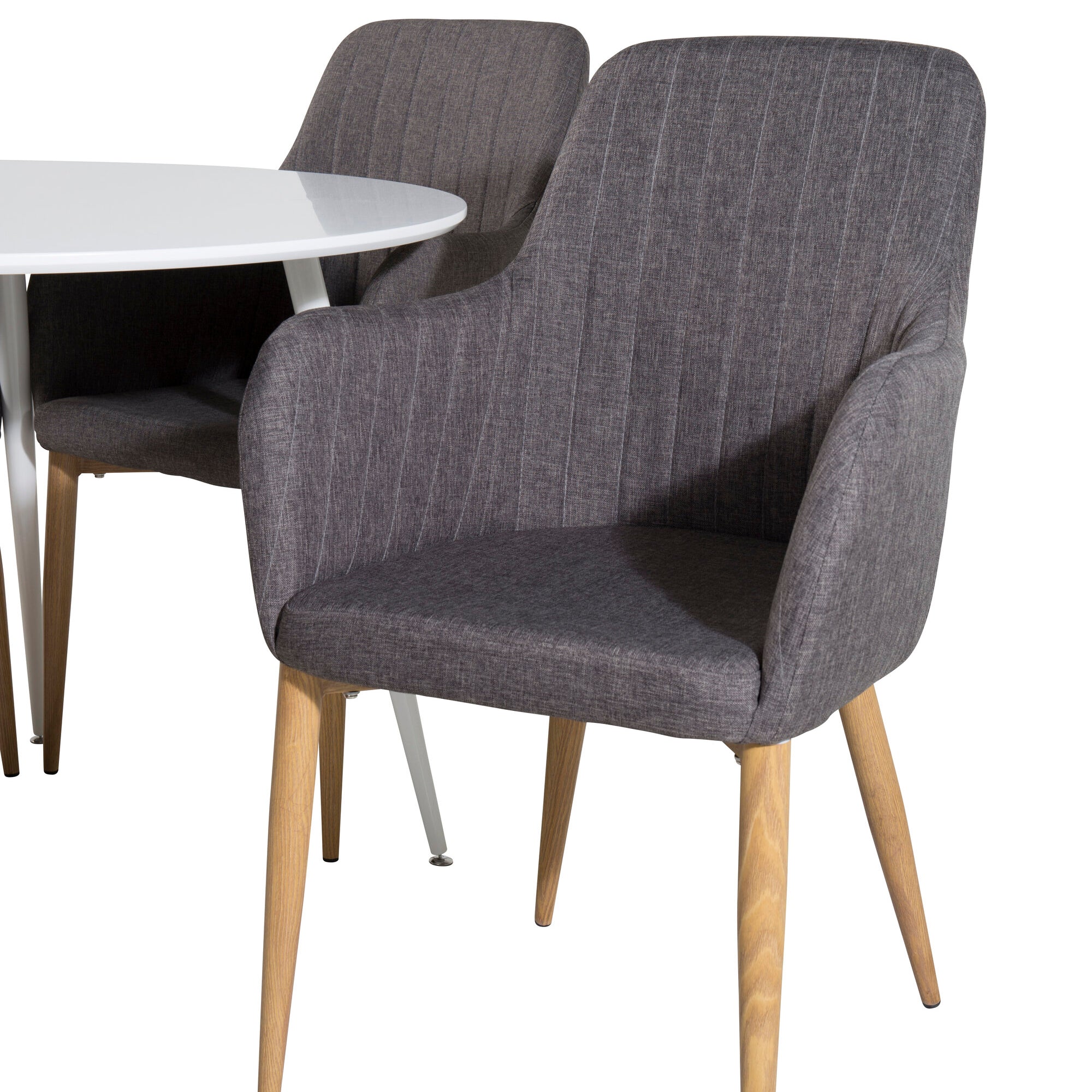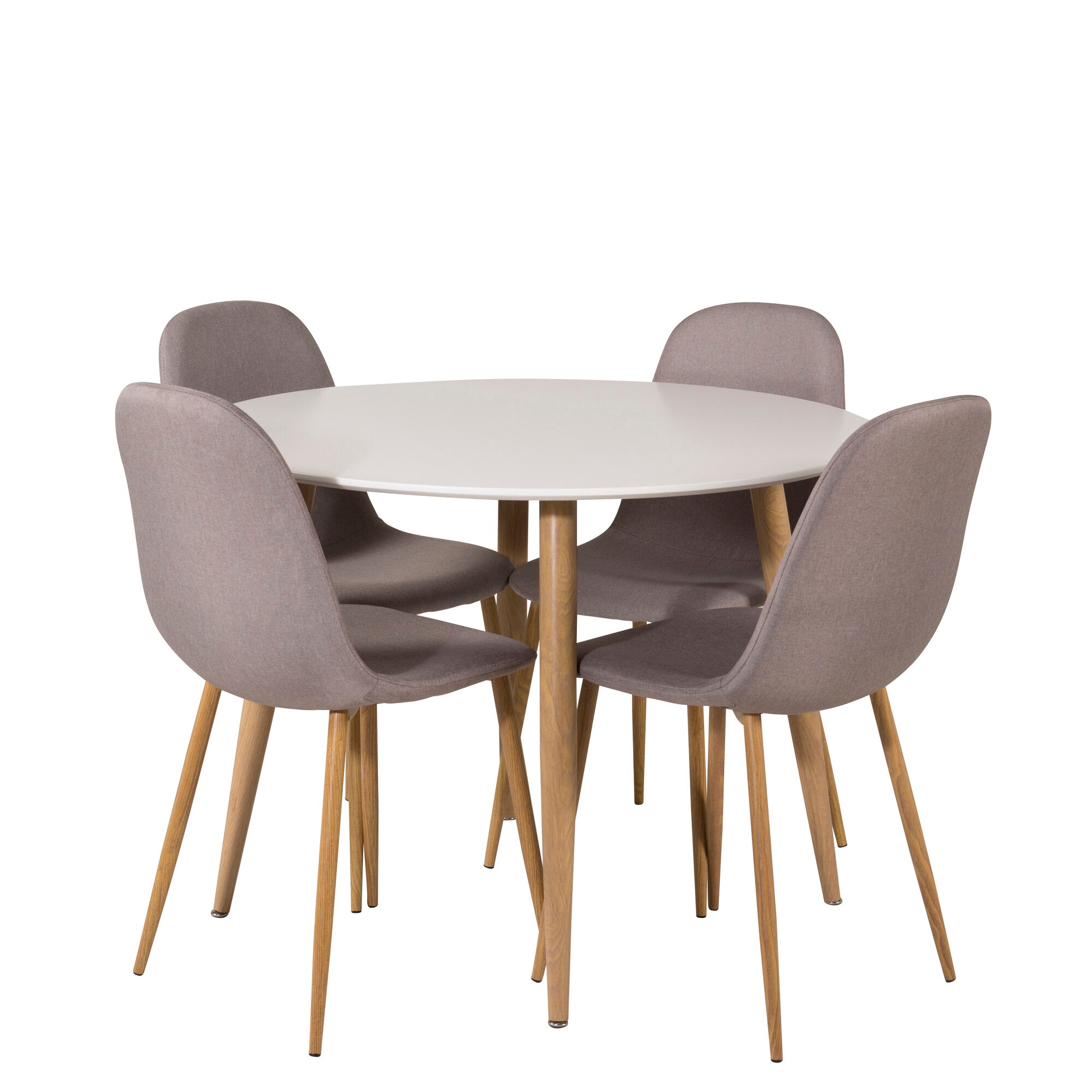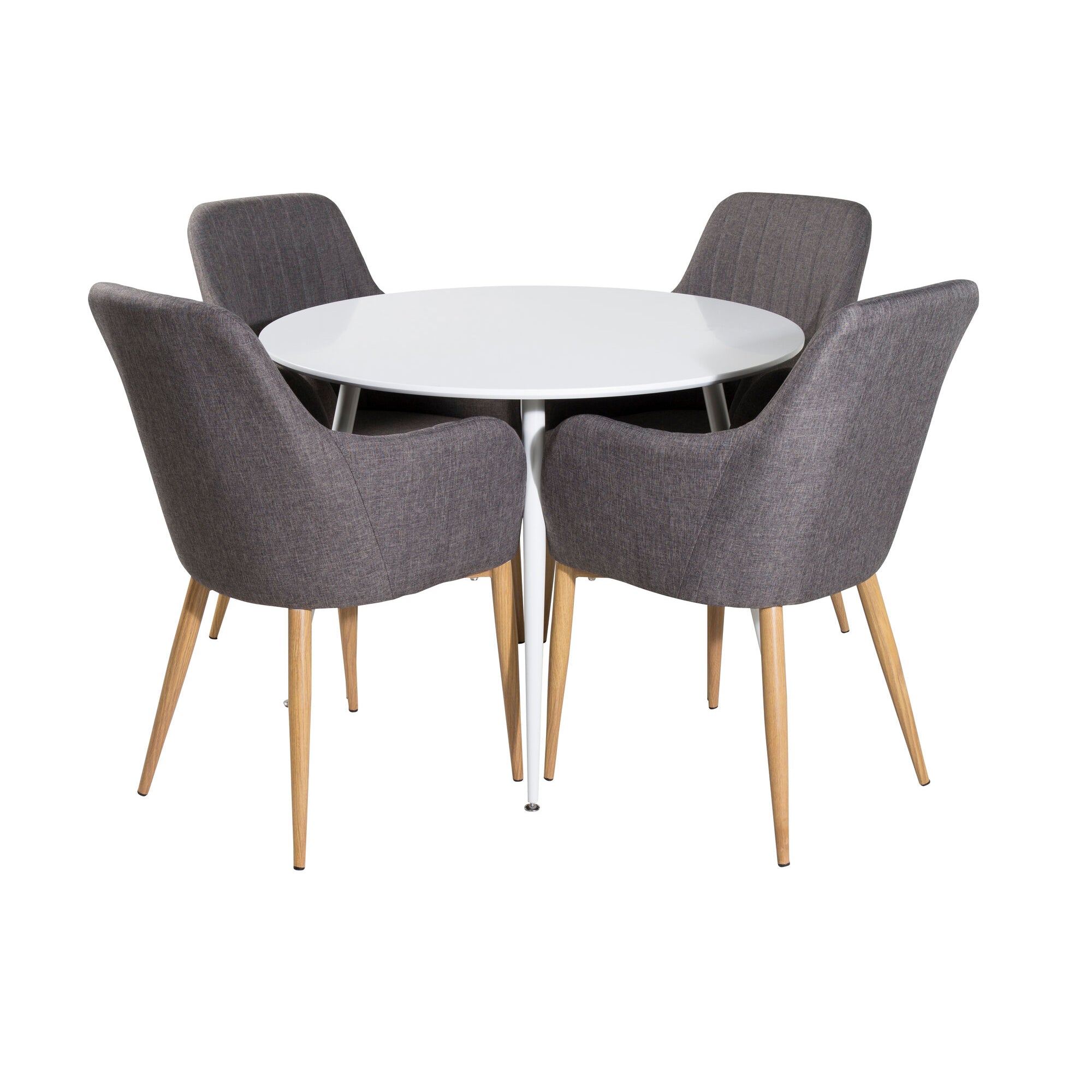 Plaza Runt Matbord - Ek-Look / Vit - ø100*H75 +Polar Jídelní židle Dubové nohy / Šedá látka _4
