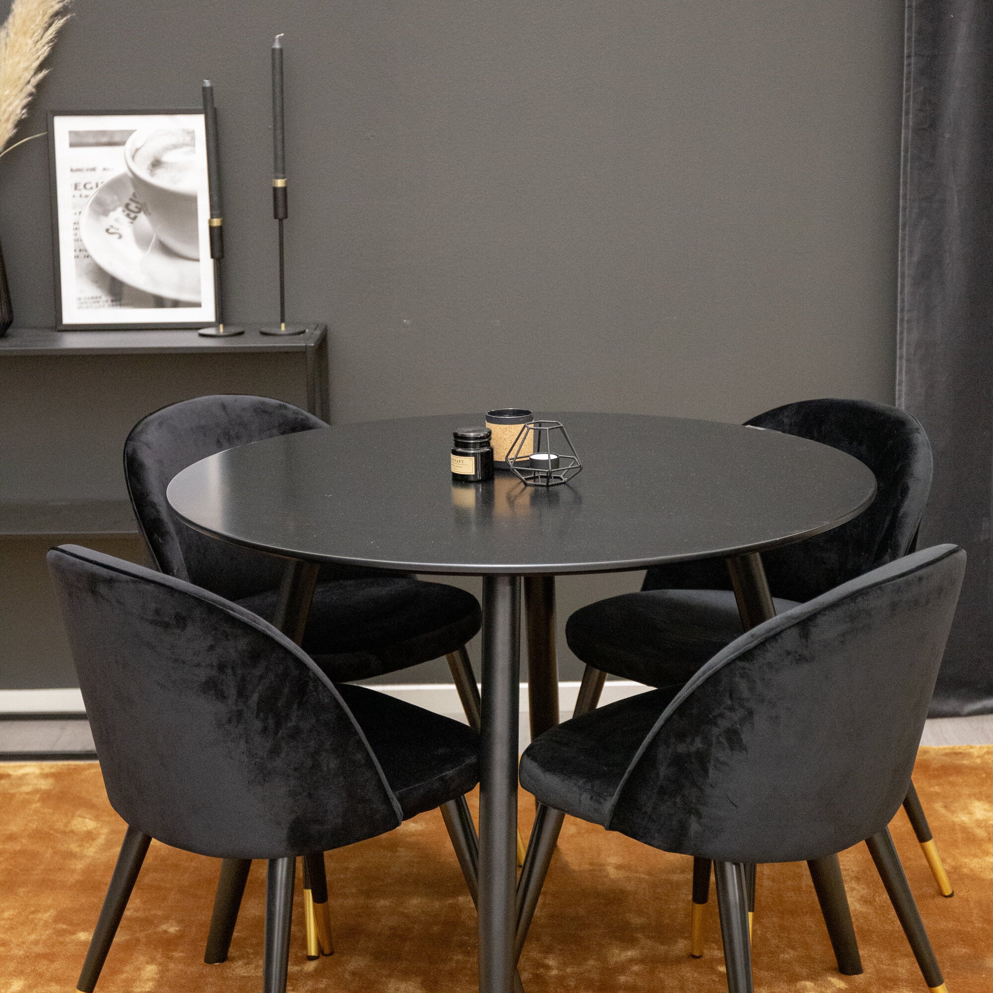 Plaza Runt Matbord - Svart / Svart - ø100*H75 +Velvet jídelní židle mosaz - černá / černá _4