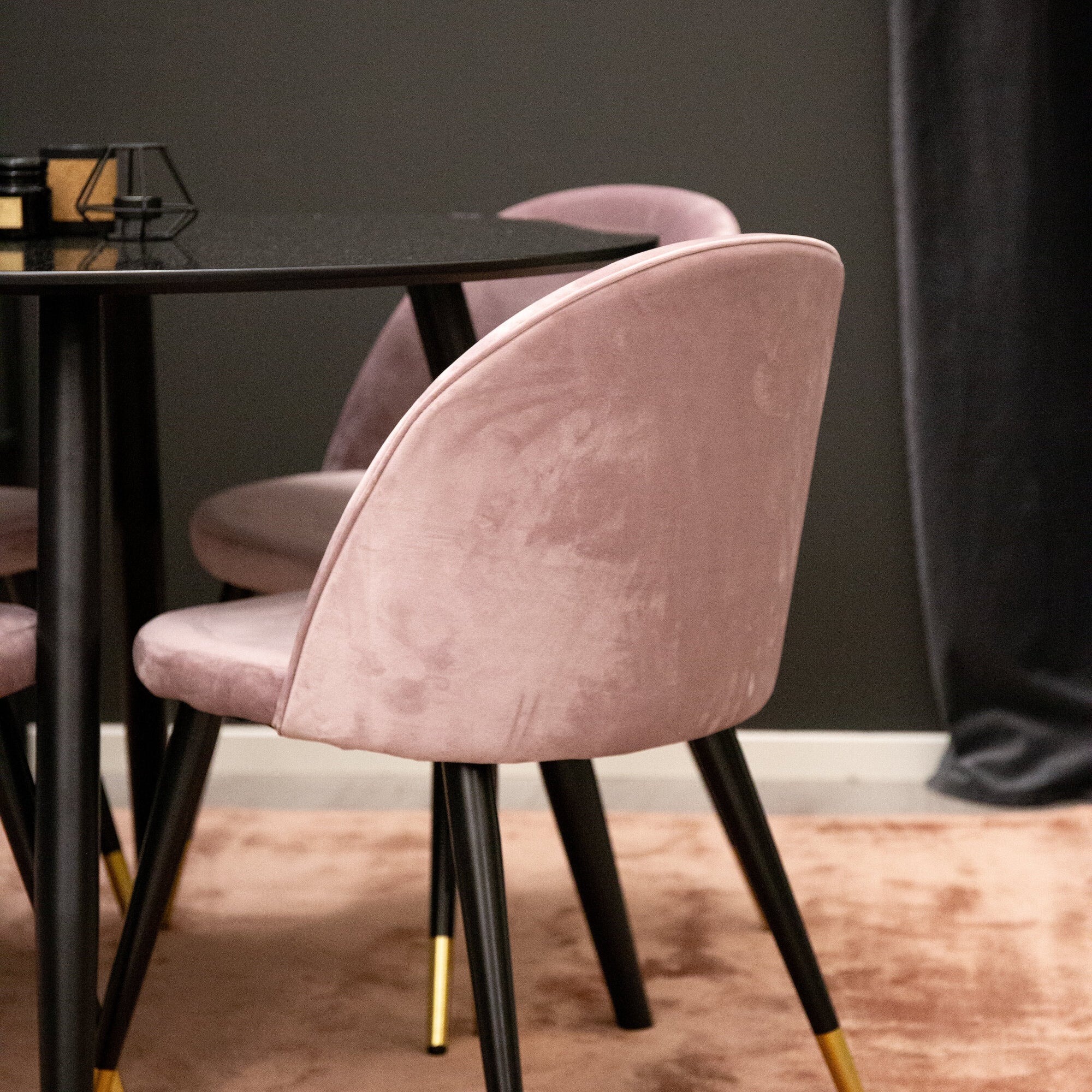 Plaza Runt Matbord - Svart / Svart - ø100*H75 +Velvet jídelní židle mosaz - růžová / černá _4