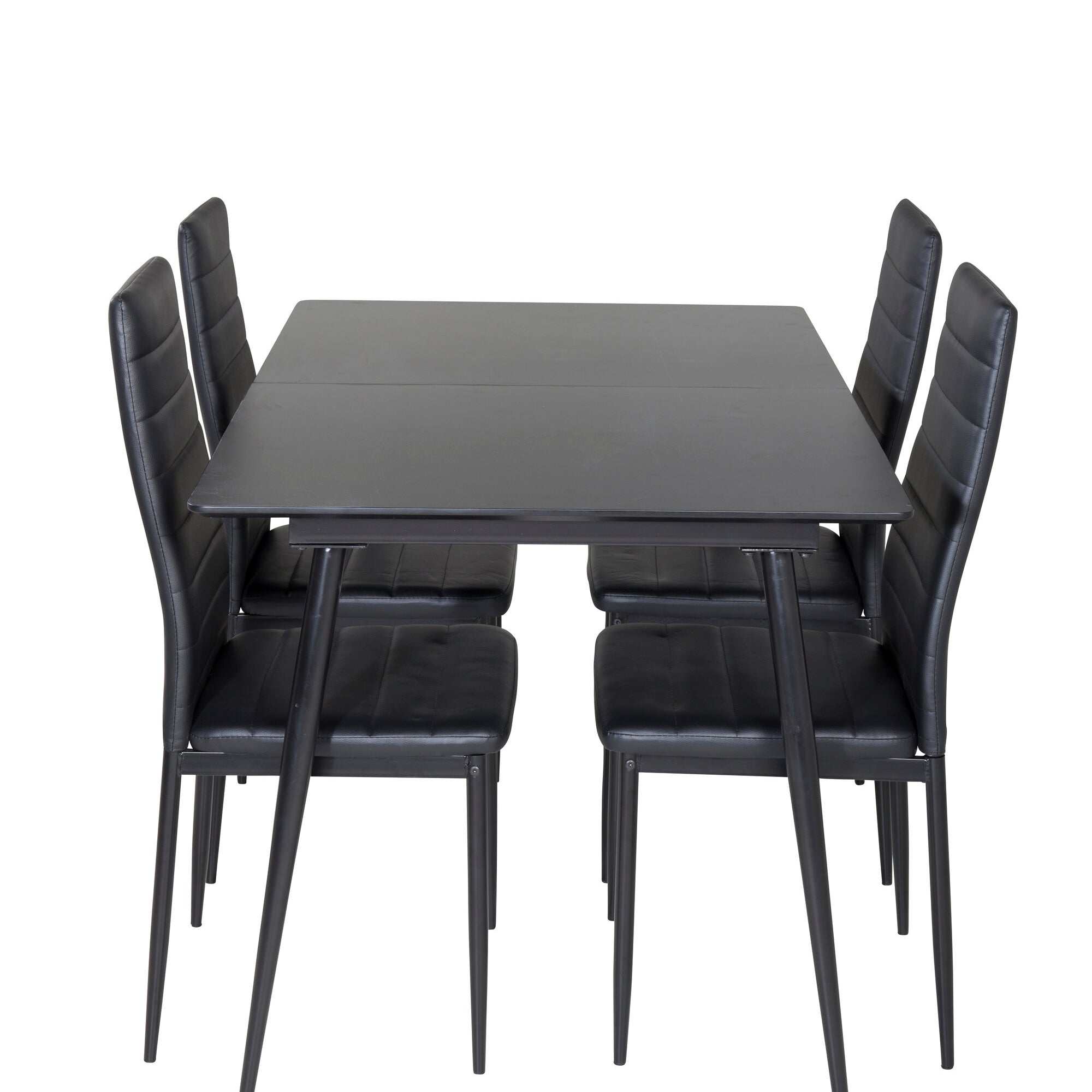 Prodlužovací stůl Silar - černý melamin / černé nohy + jídelní židle s vysokým opěradlem - černé nohy - černá PU_4