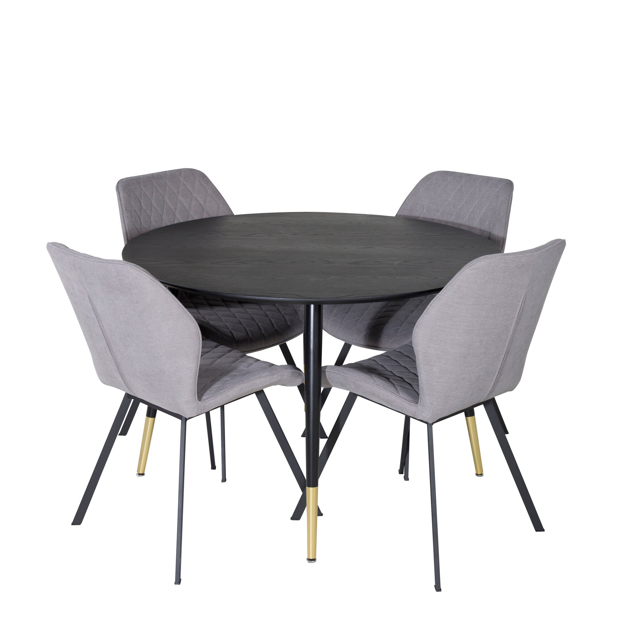 Jídelní stůl Dipp - 115 cm - Černá / Černá mosaz+Gemma Jídelní židle - Černé nohy - Šedá látka_4