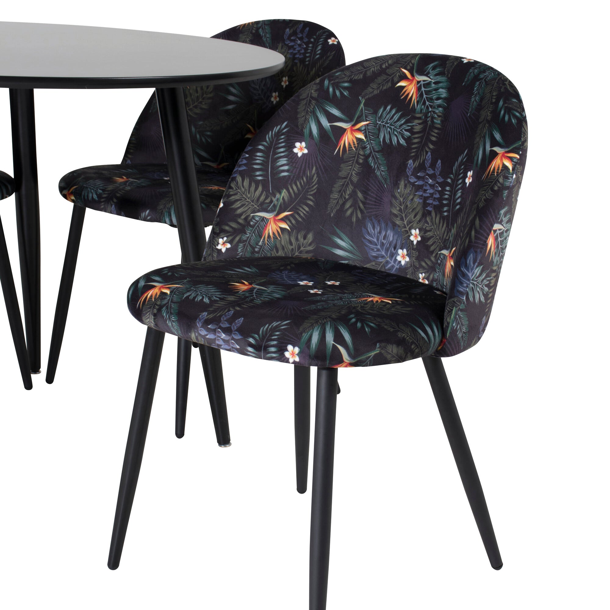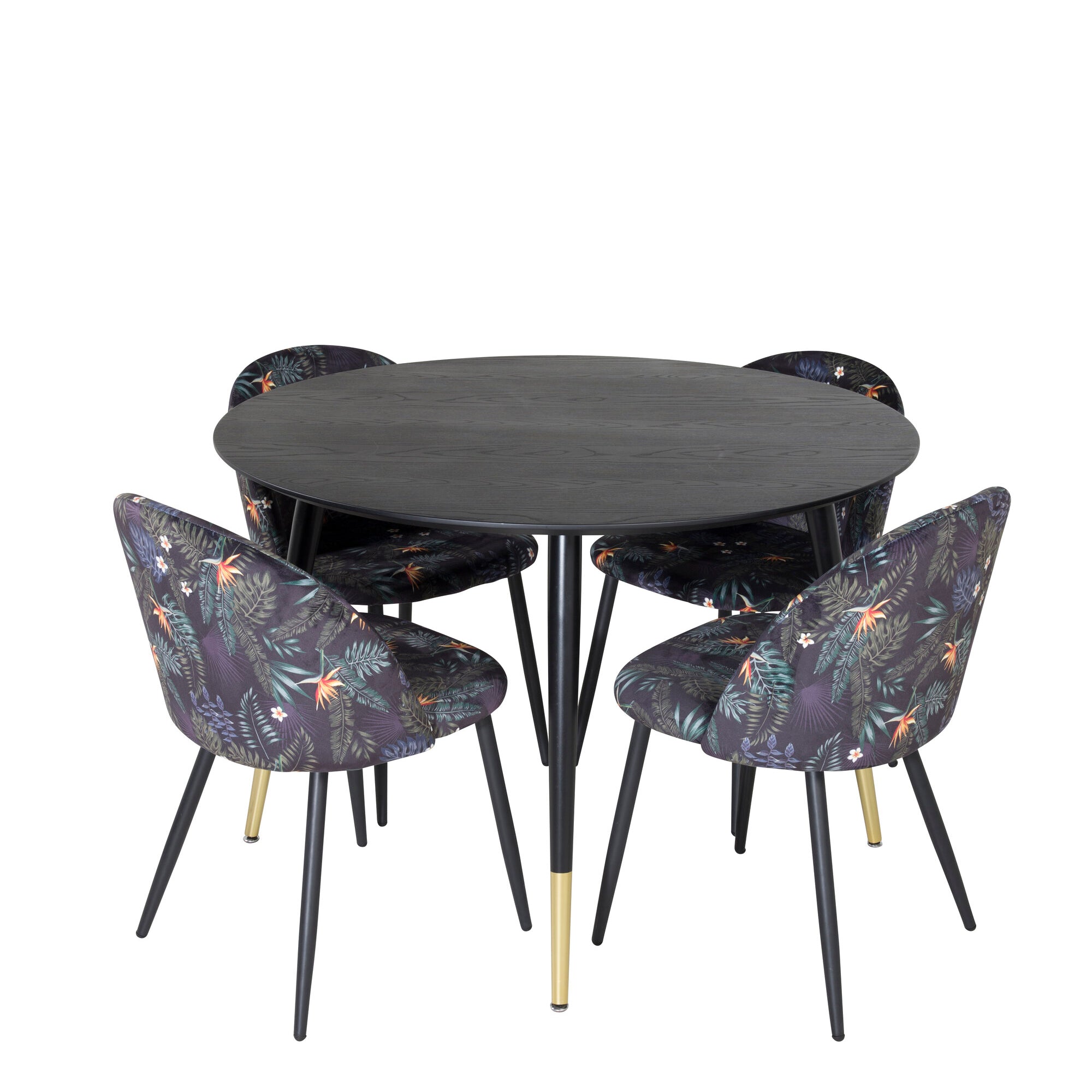 Plaza Runt Matbord - Svart / Svart - ø100*H75 +Jídelní židle Velvet - látka Black Flower _4