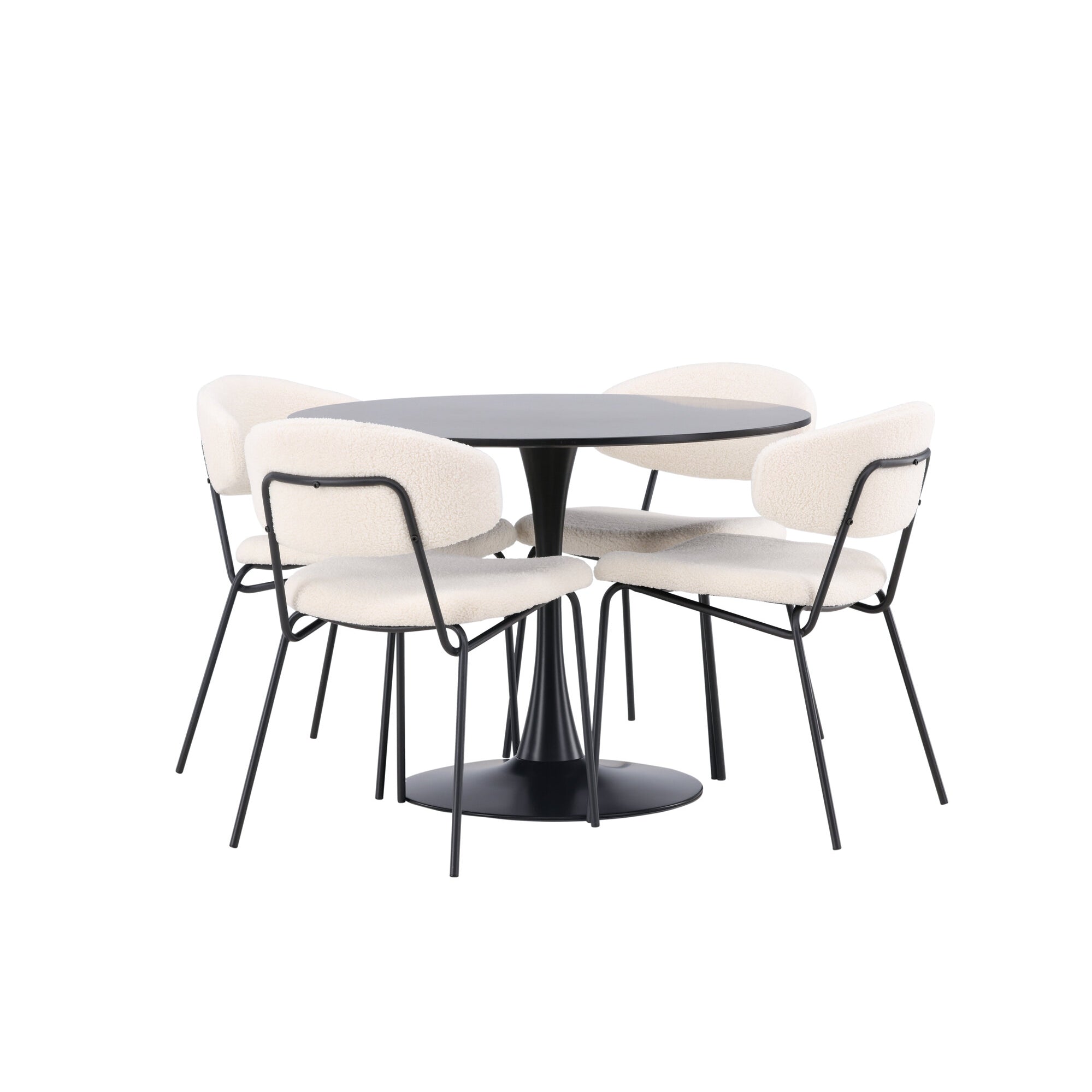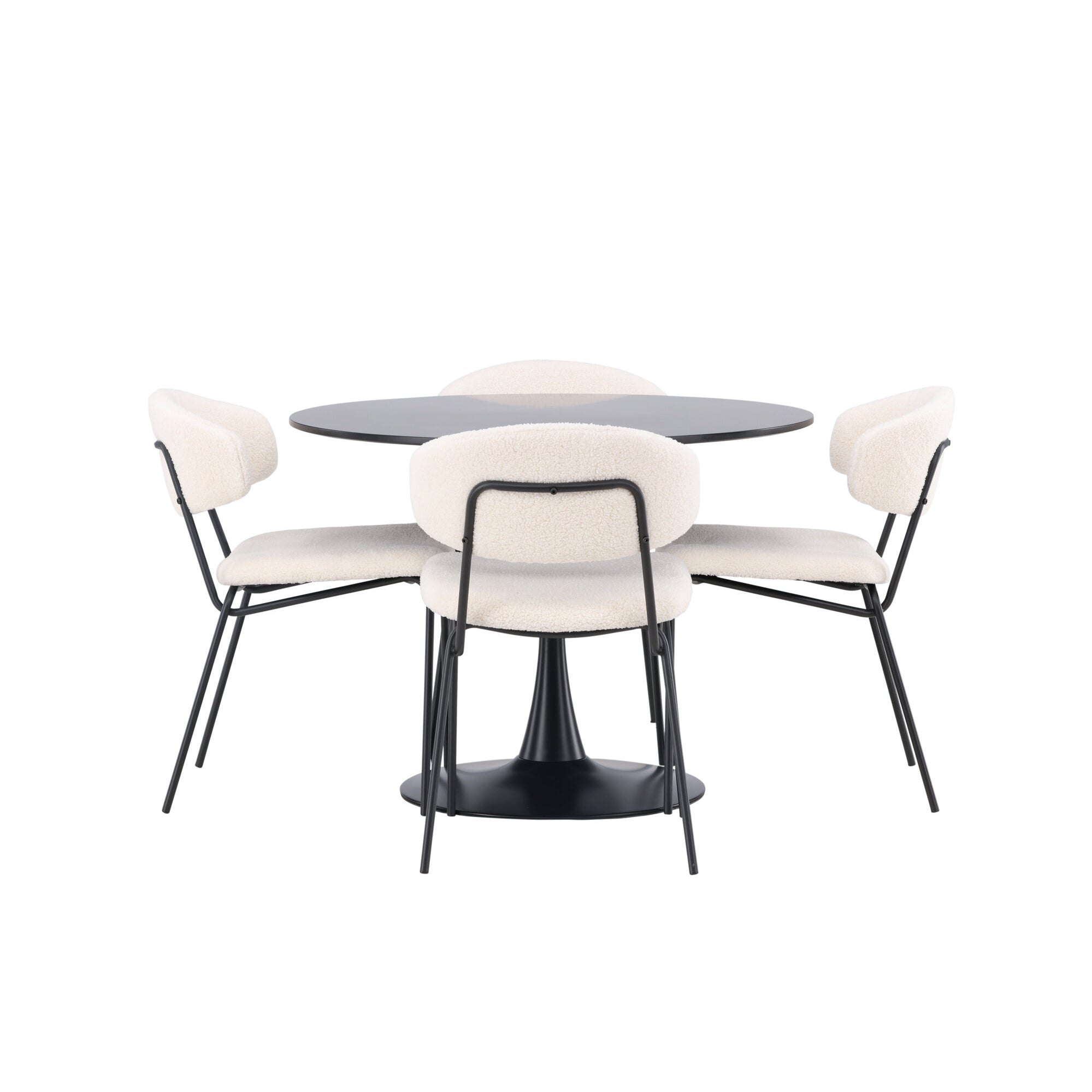 Jídelní stůl Glade - černá / černá MDF +Chico jídelní židle - černá / bílá Boucle _4