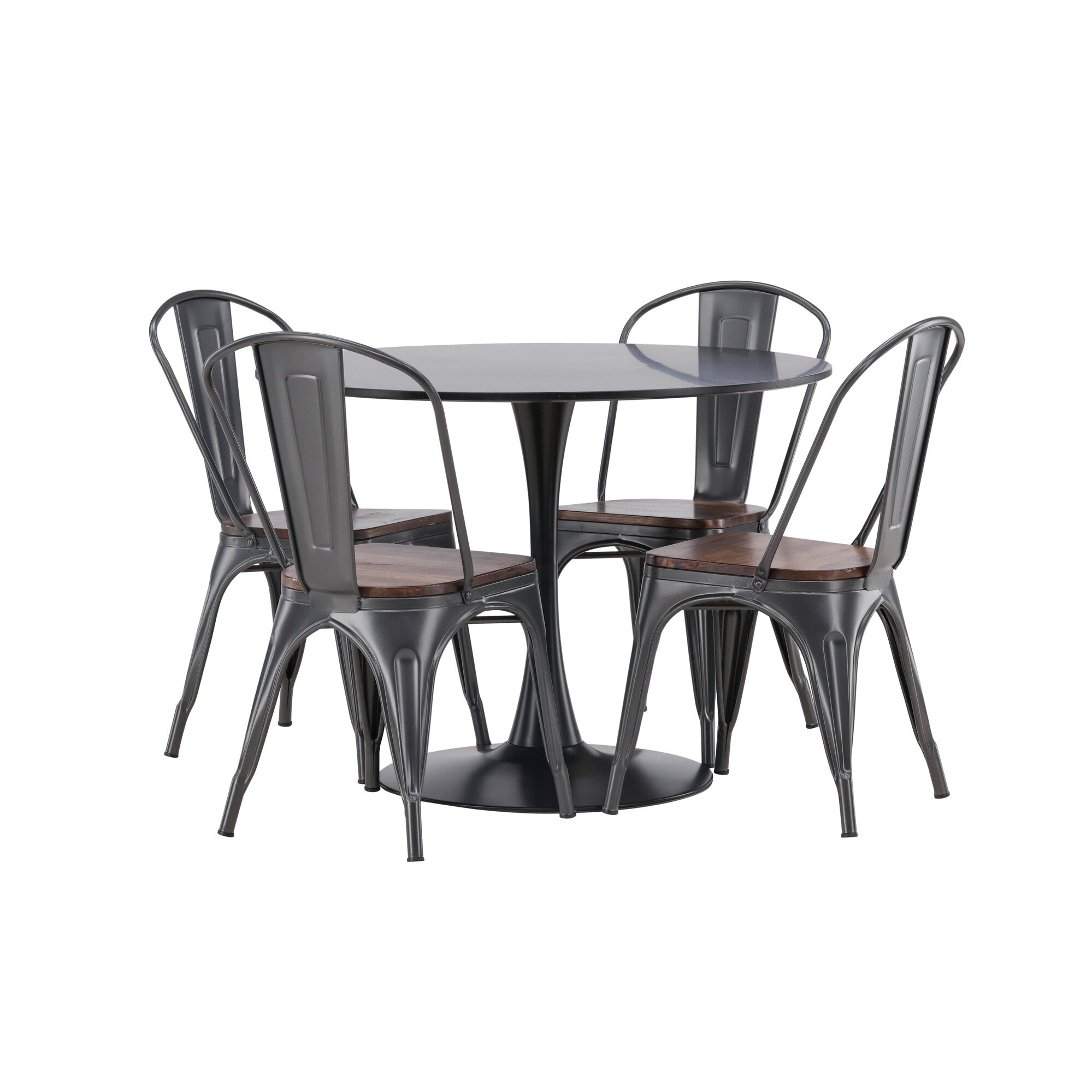 Jídelní stůl Glade – černá / černá MDF + Jídelní židle Tempe – tmavě šedá / tmavě hnědá MDF _4