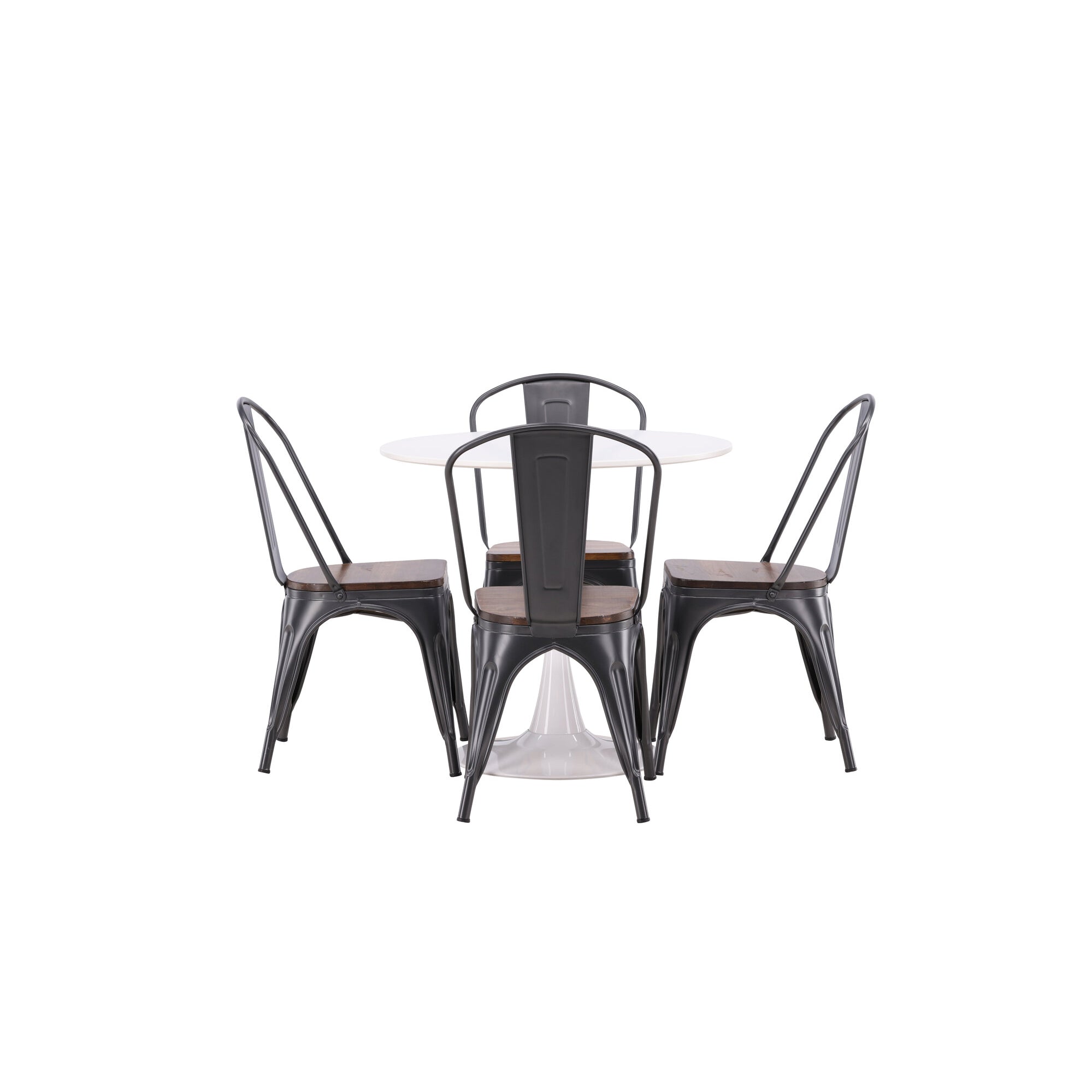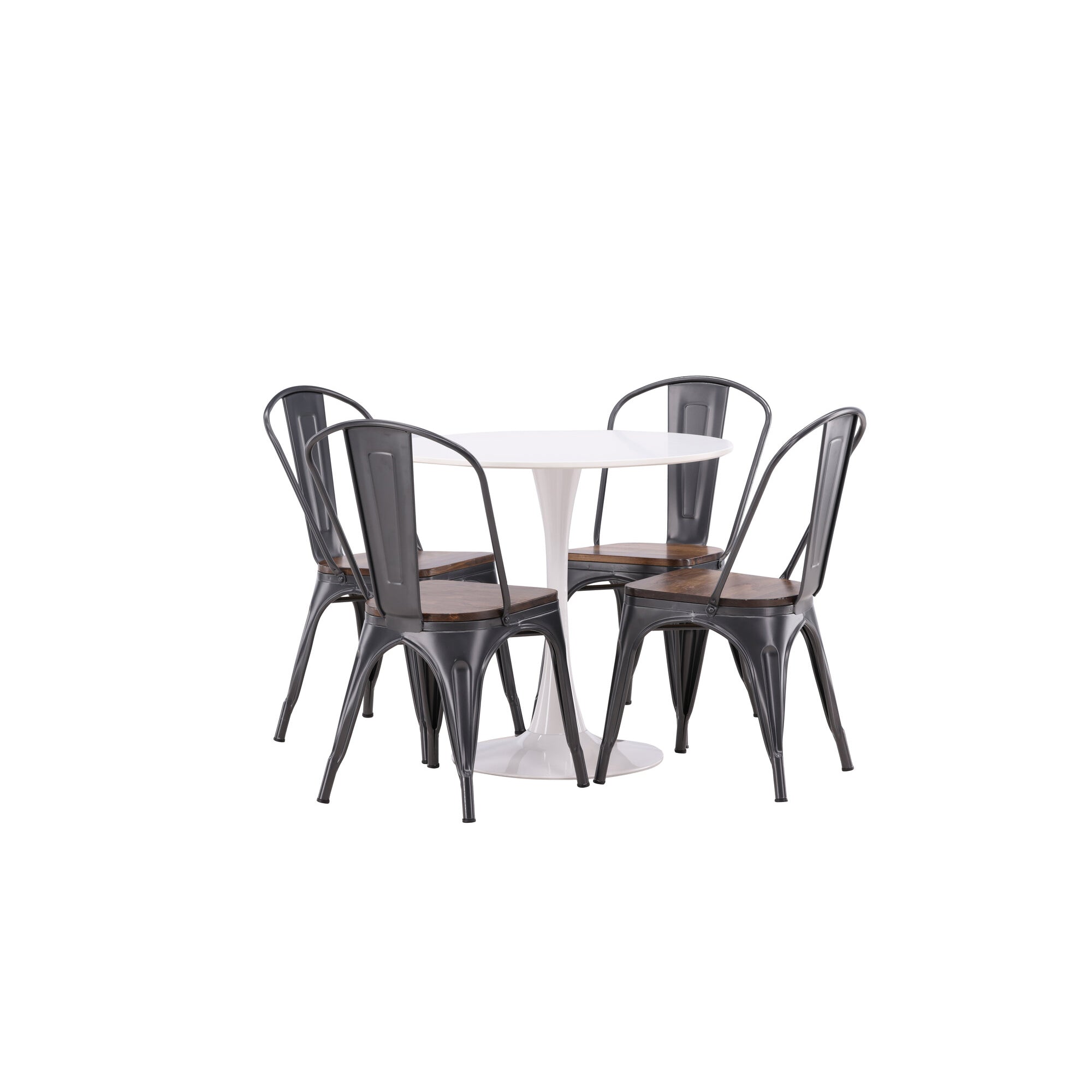 Jídelní stůl Hamden - Bílá MDF+Jídelní židle Tempe - Tmavě šedá / Tmavě hnědá MDF_4