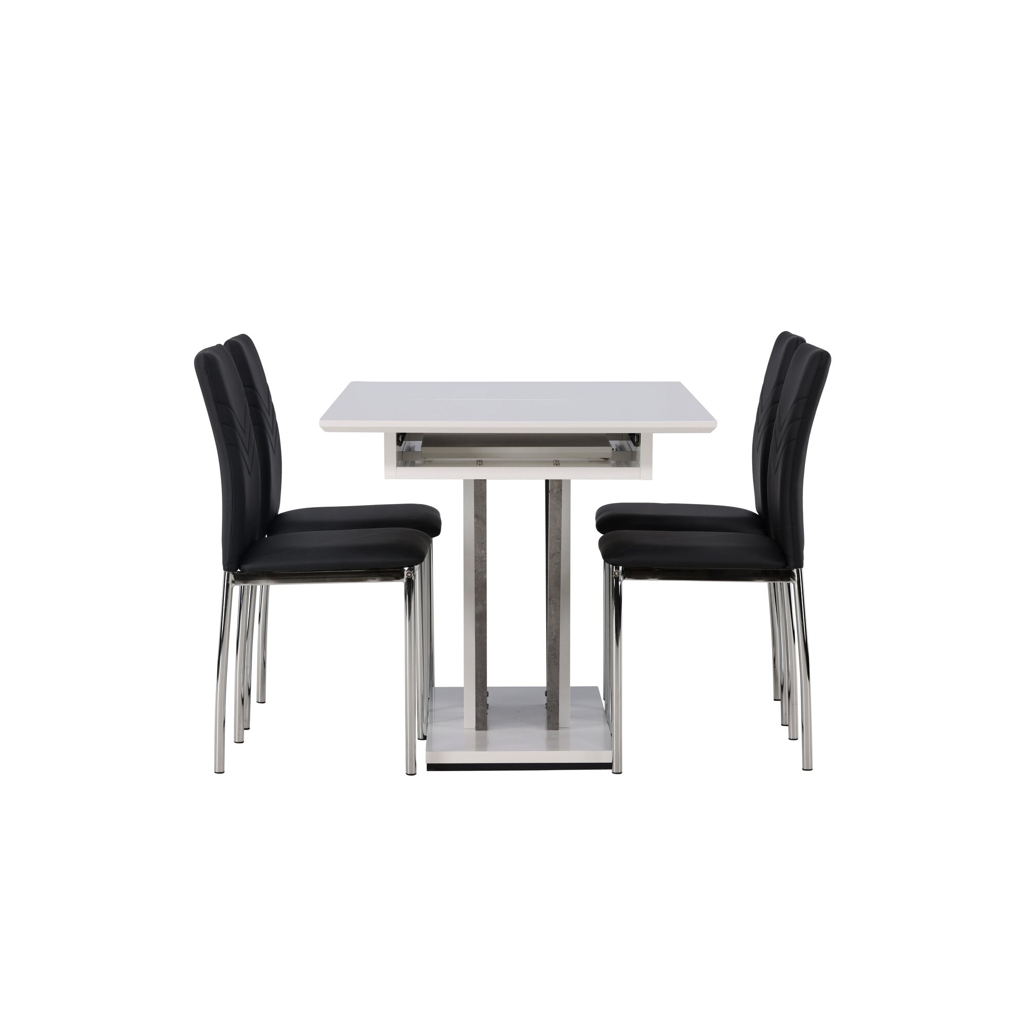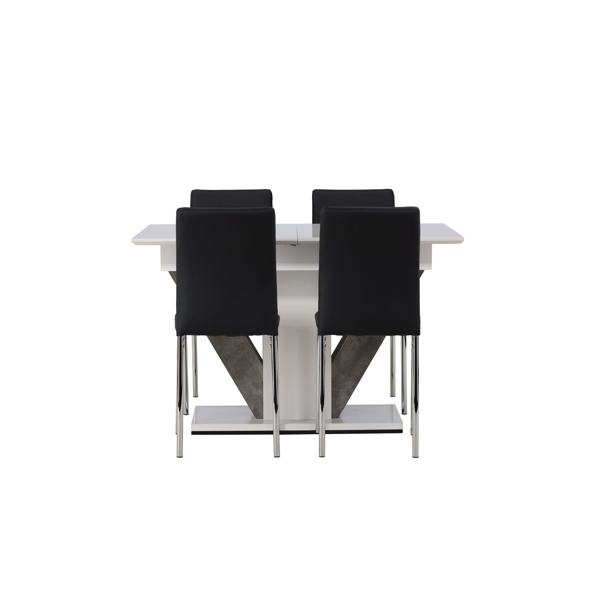 Jídelní stůl Disa 120/160*80 - Bílá / Šedá MDF + Jídelní židle Lily - Chromovaná noha / Černá PU _4
