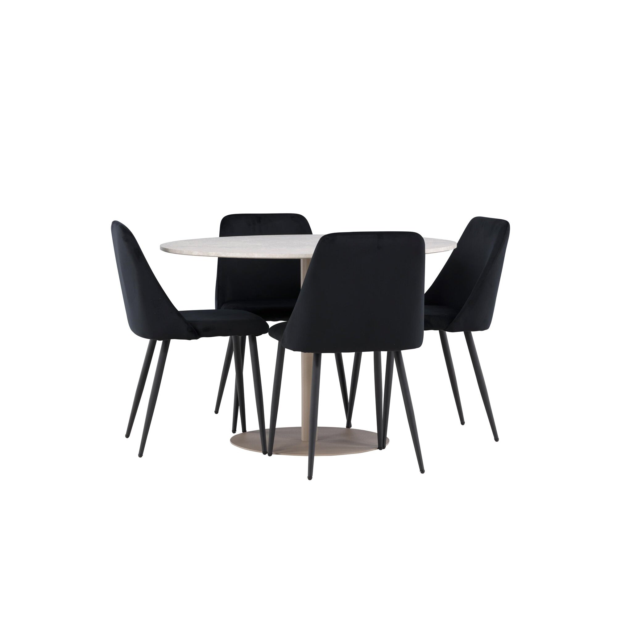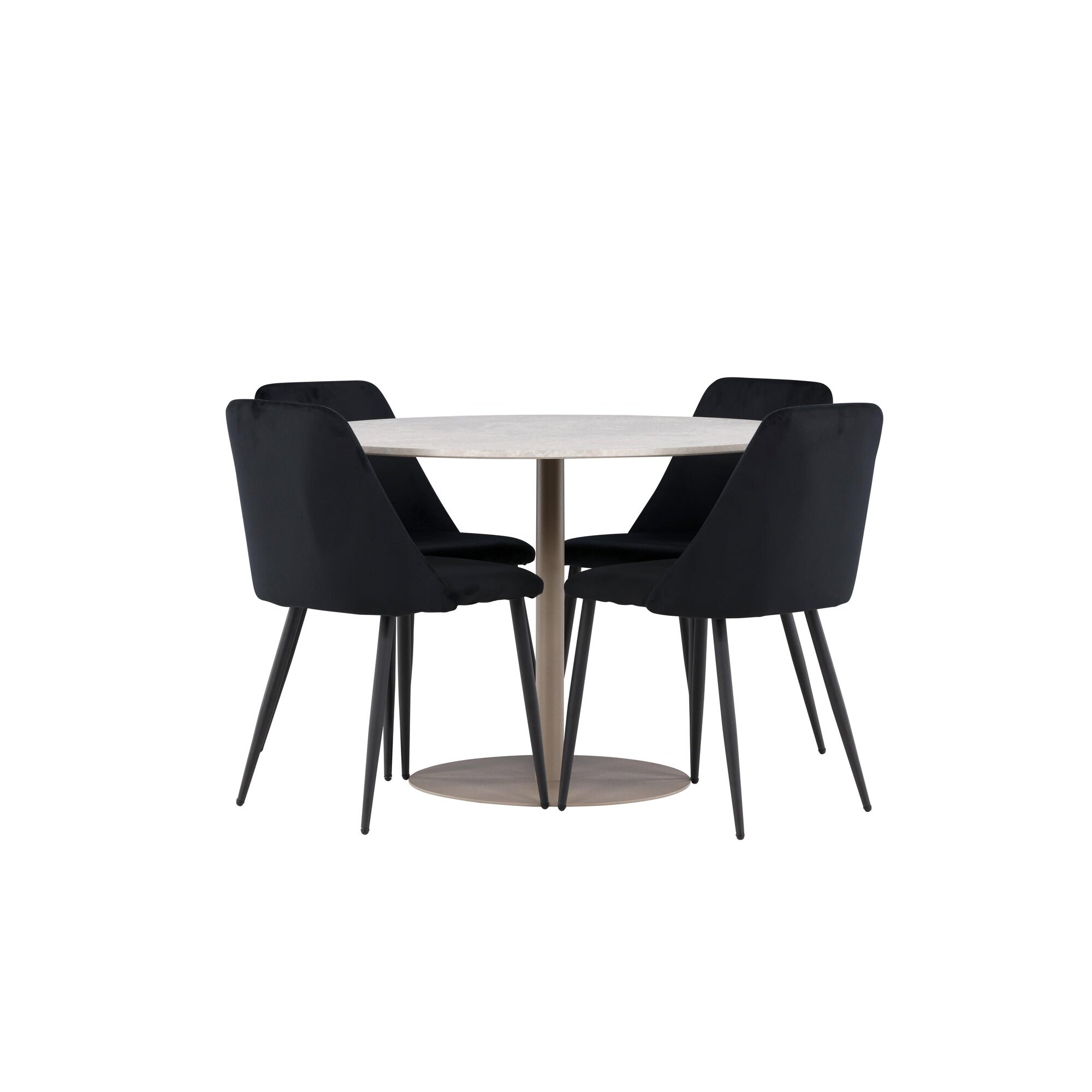 Dipp jídelní stůl - 115 cm - Černá dýha / černé nohy s mosazným dippem + Velvet Dinin