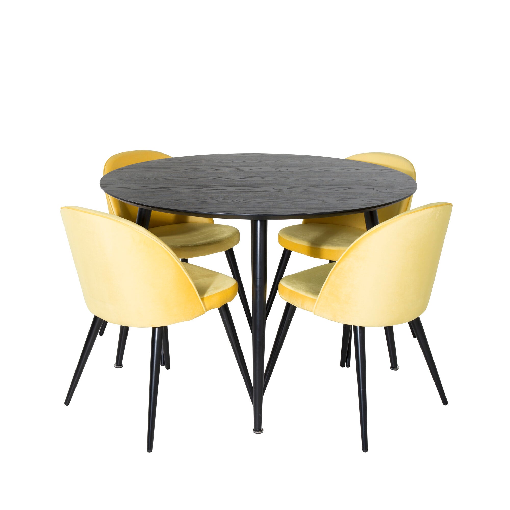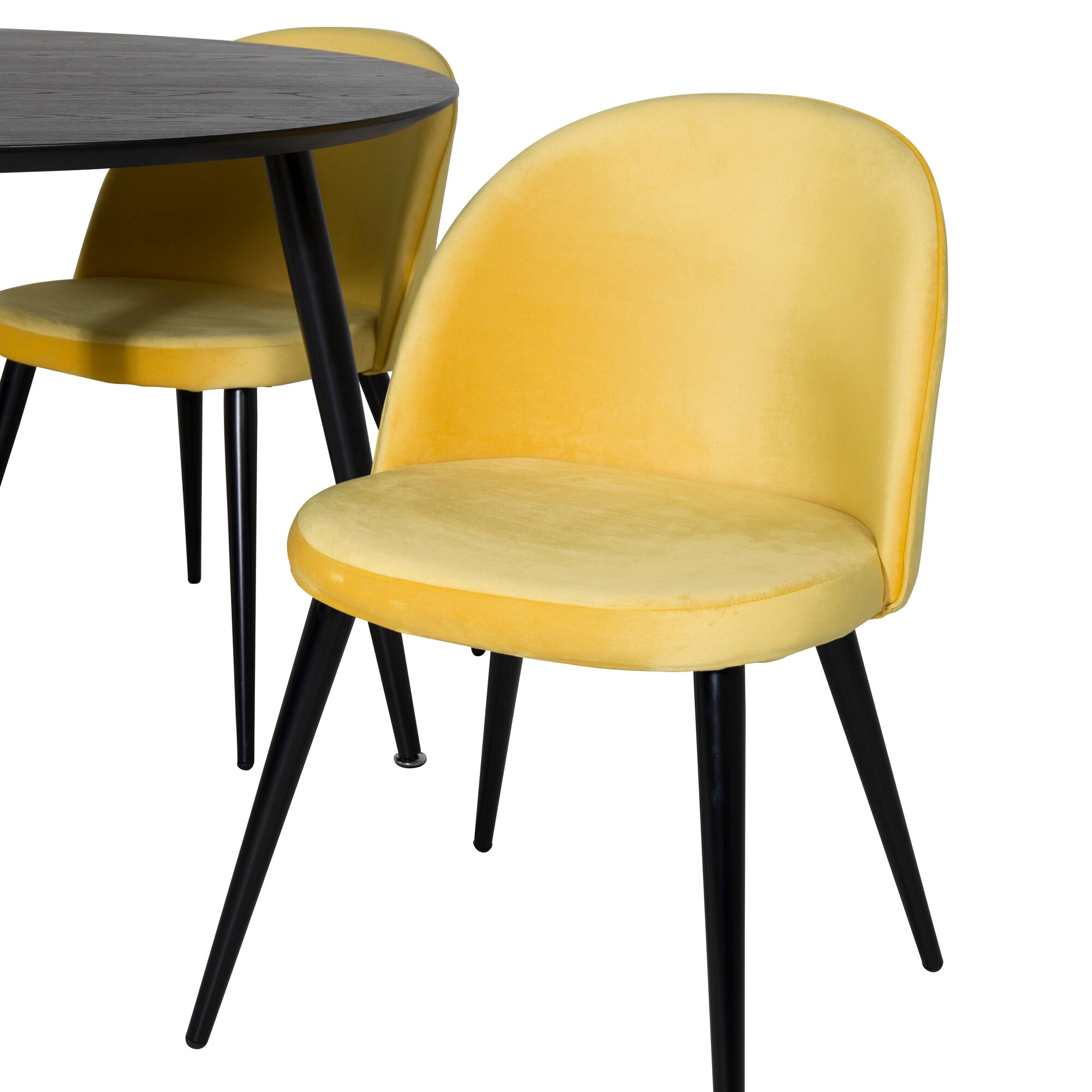 Jídelní stůl Dipp - 115 cm - černá dýha / celé černé nohy + sametová jídelní židle - žlutá / černá_4