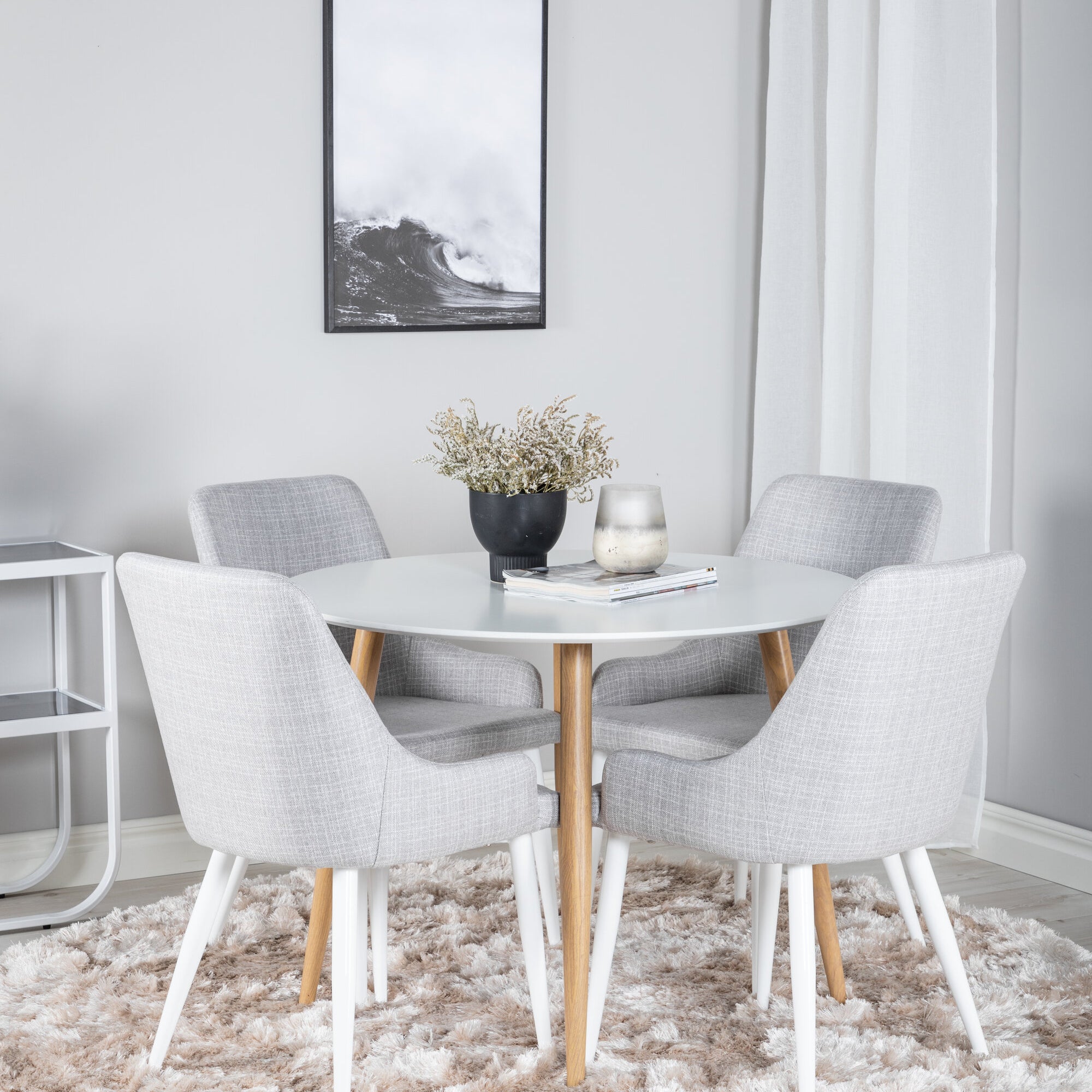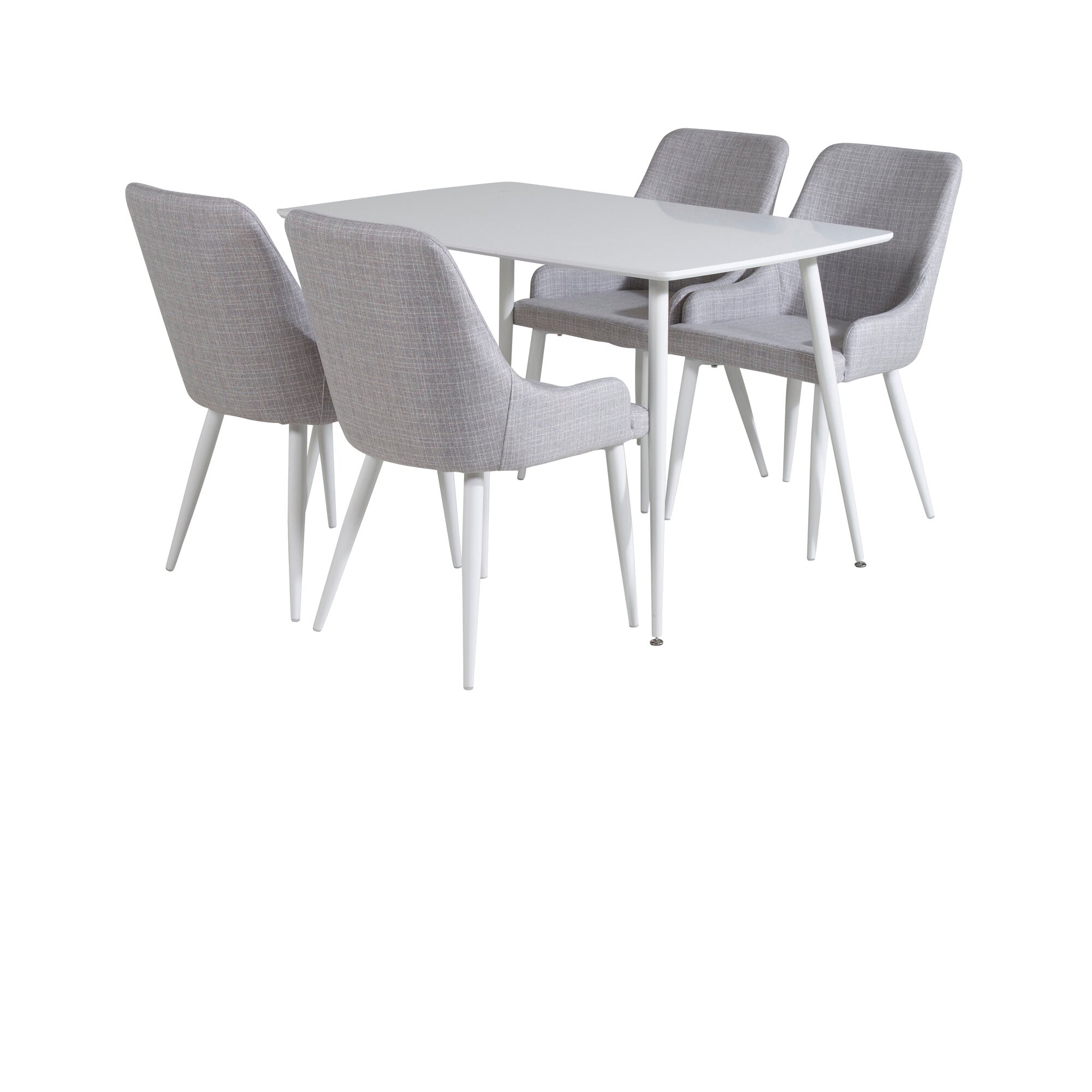 Polar Jídelní stůl 120 cm - Bílá Bílá+Plaza Jídelní židle - Bílé nohy - Světle šedá Fabric_4