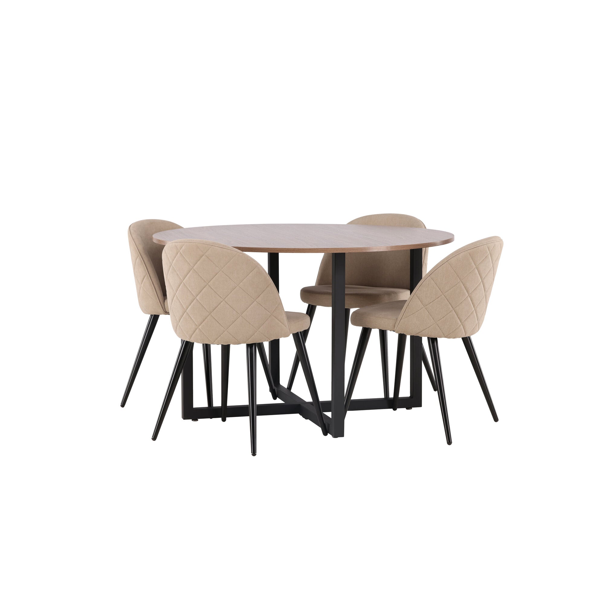 Jídelní stůl Durango – černá / ořechová MDF + židle se sametovými stehy – černá / béžová látka (polyesterové prádlo) _4