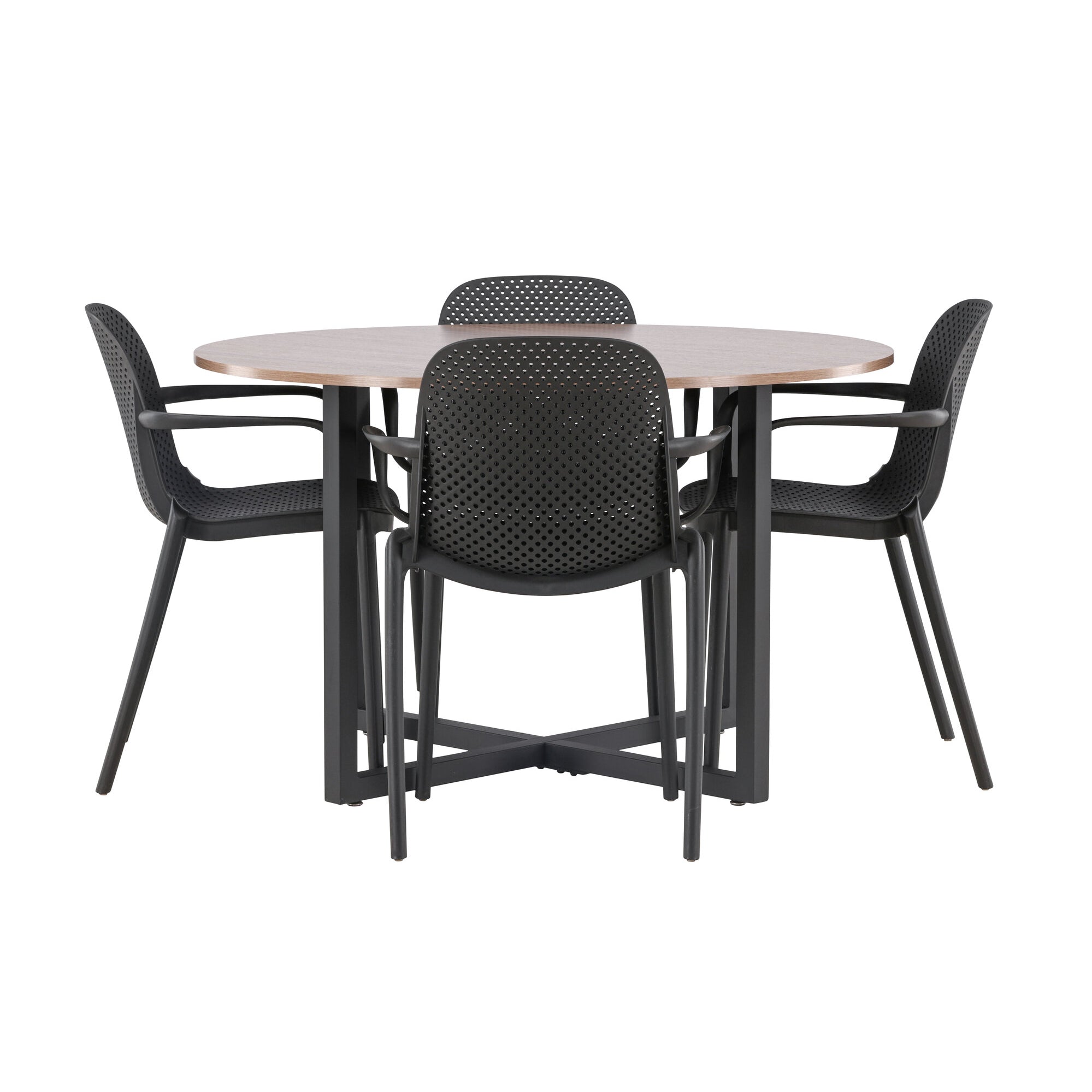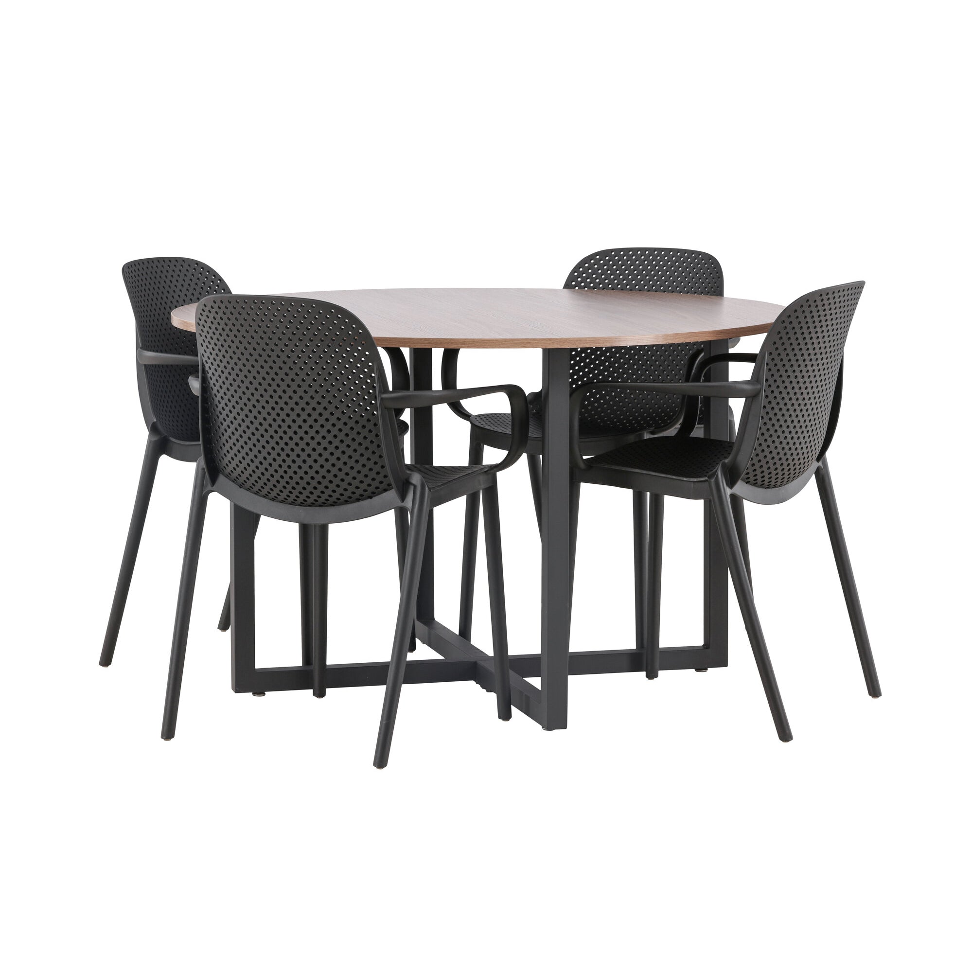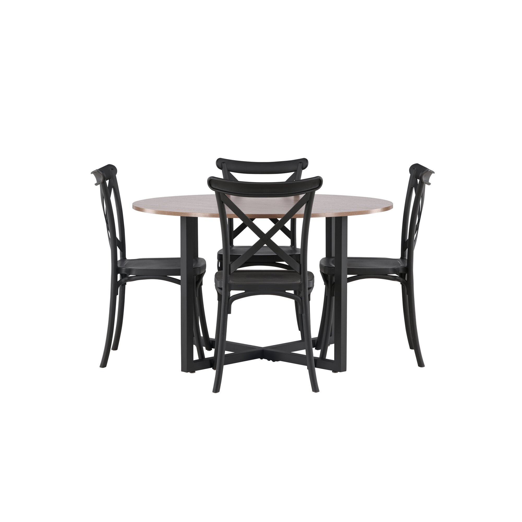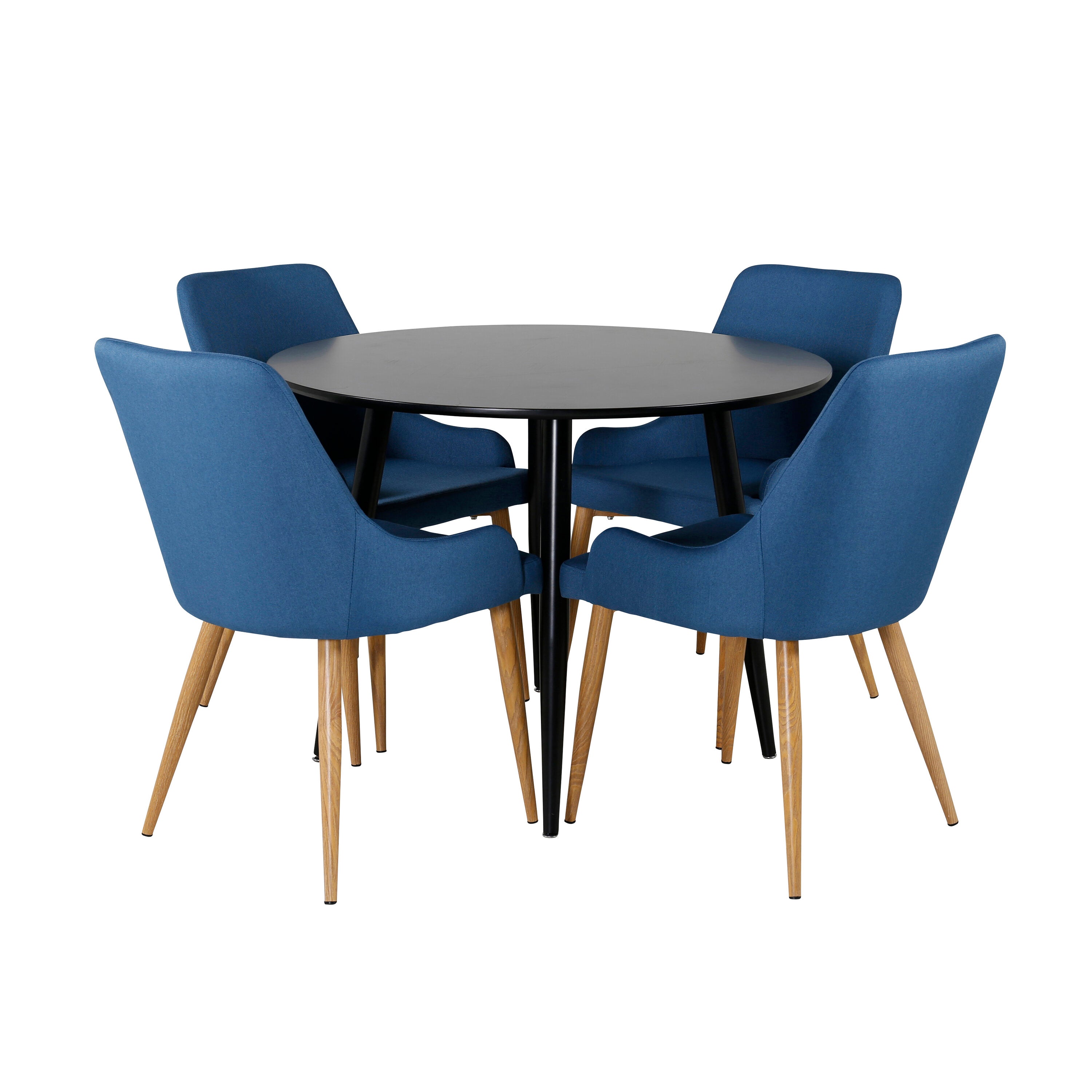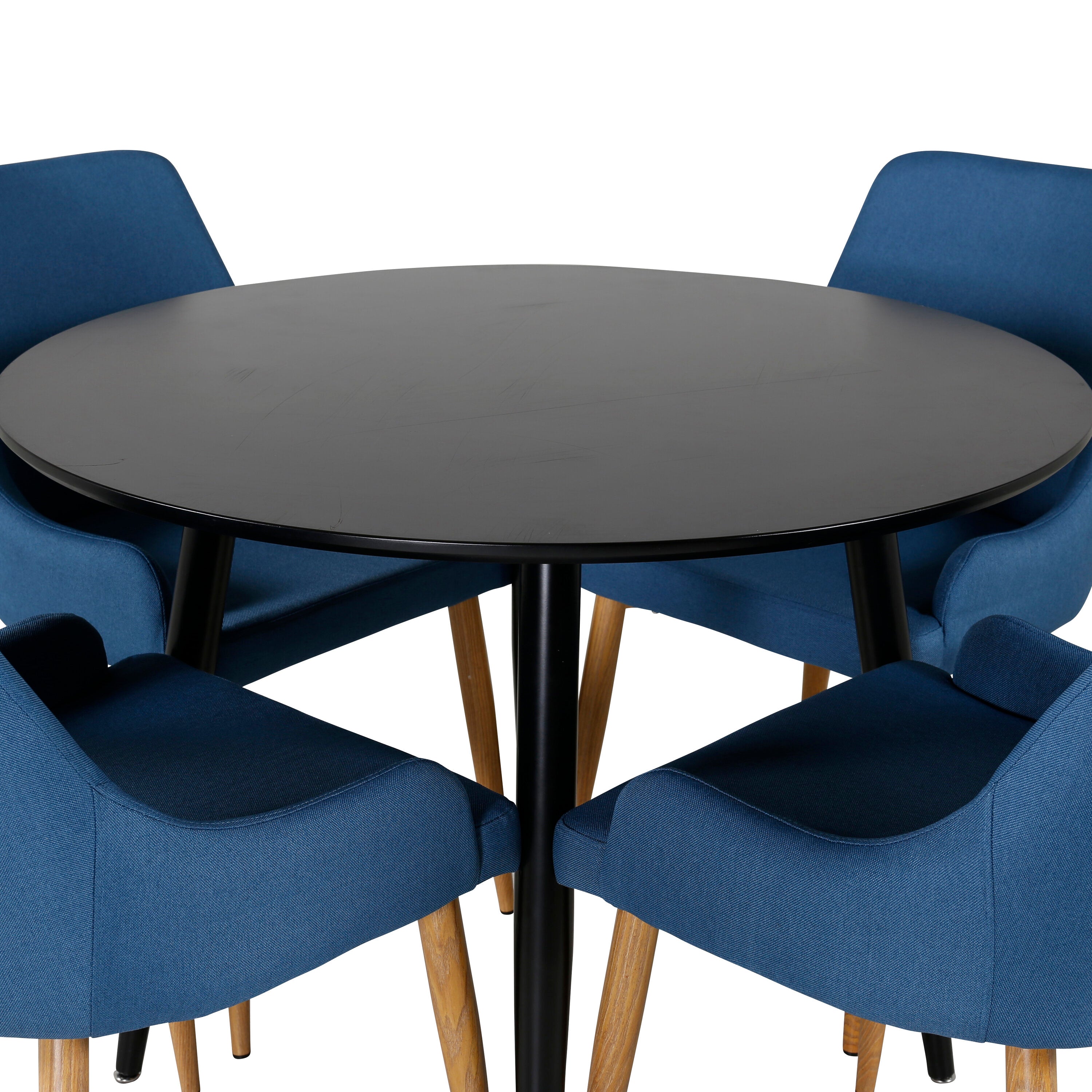 Plaza - Jídelní stůl - 100 ø - Černá/Černá +Plaza - Jídelní židle - Modrá / Dub _4