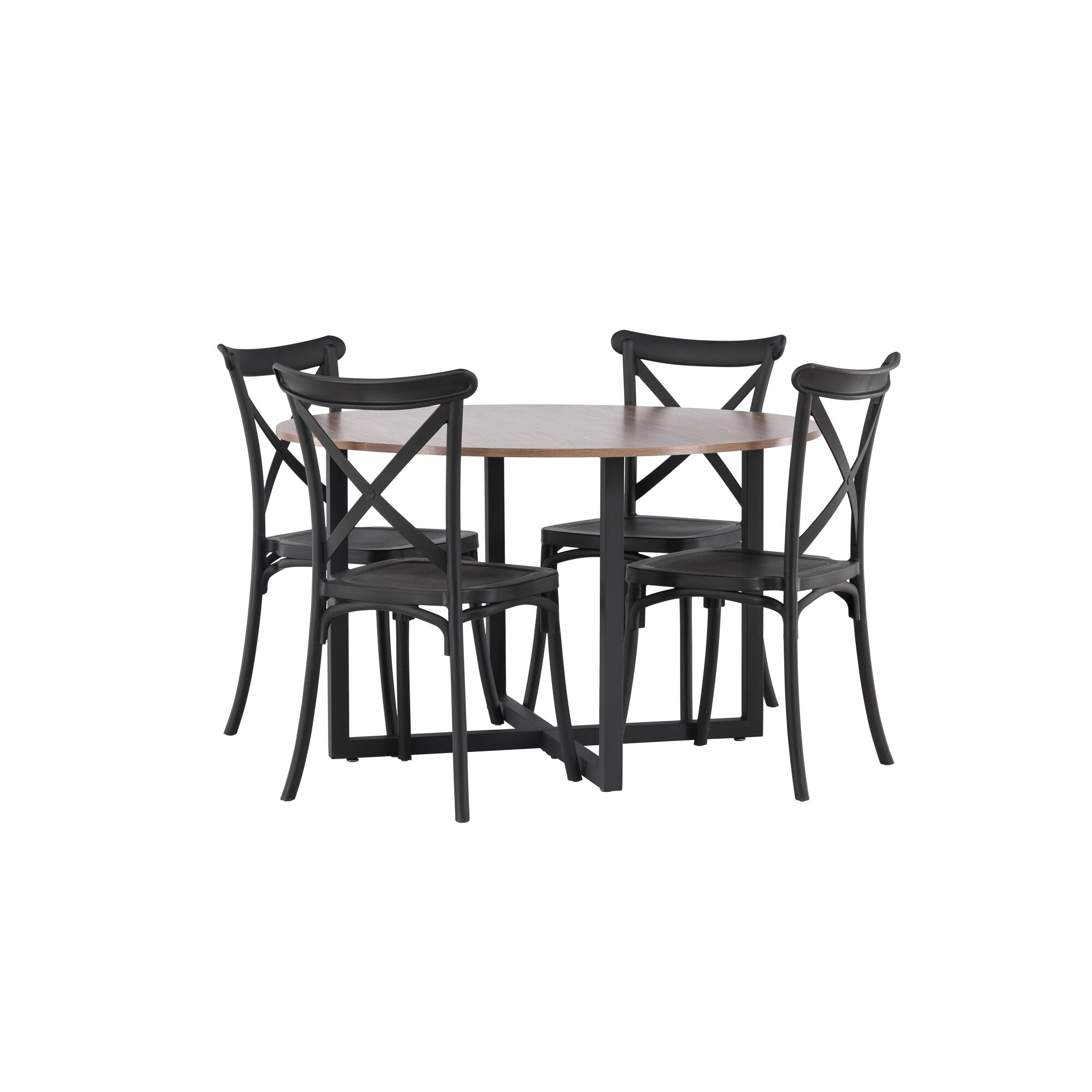Jídelní stůl Durango – černá / ořechová MDF + jídelní židle Crosett – matná černá / matná černá plast _4