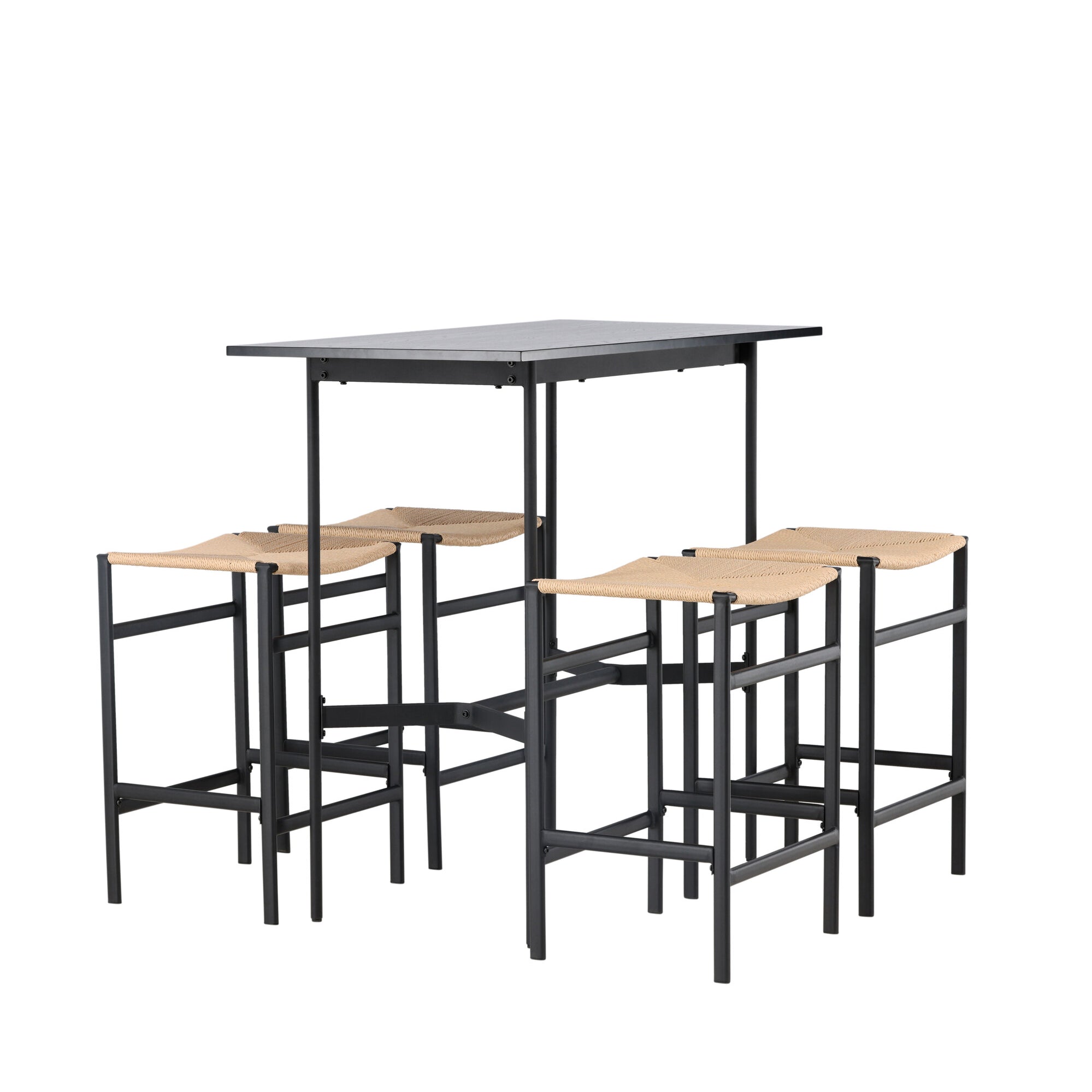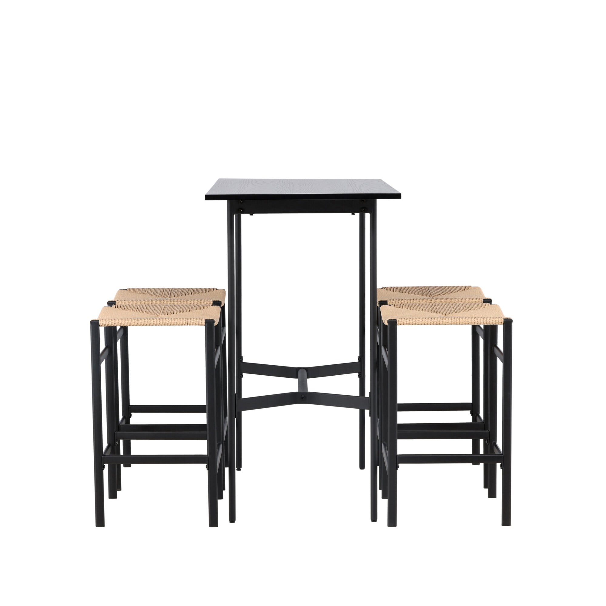 Barový stůl Rax 120*60 - černá / černá MDF + Barová židle Polly - černá / přírodní kaučukové dřevo, sedací lano _4