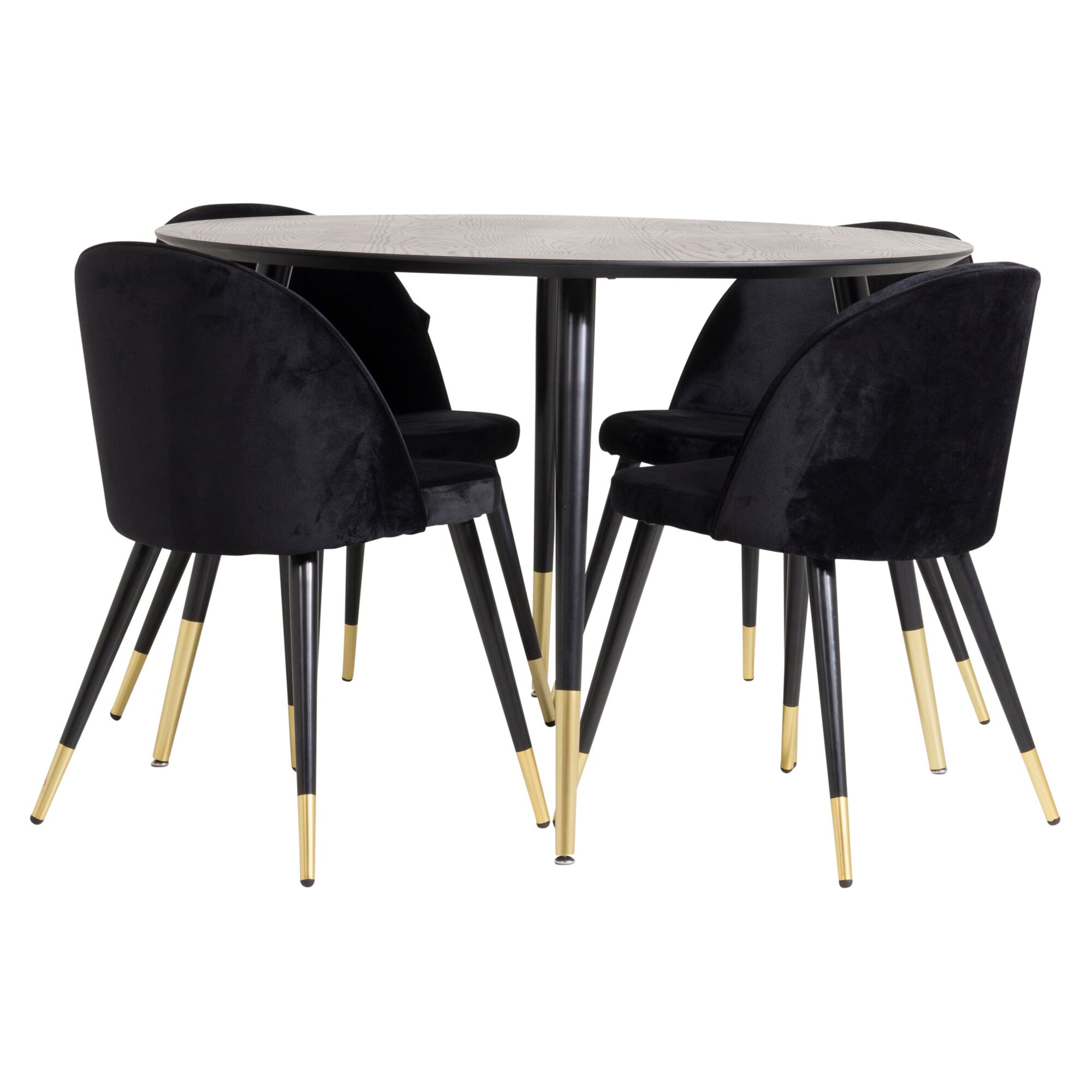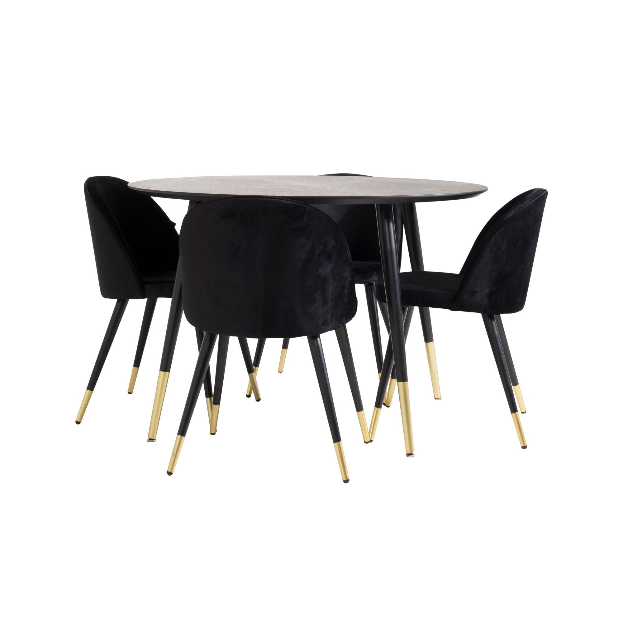 Jídelní stůl Dipp - 115 cm - Černá dýha / černé nohy s mosazným dipp - Sametová jídelní židle Mosaz - Černá / Černá 4