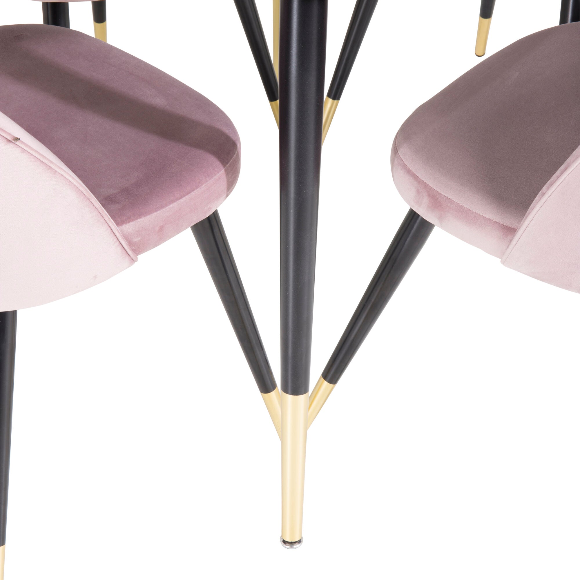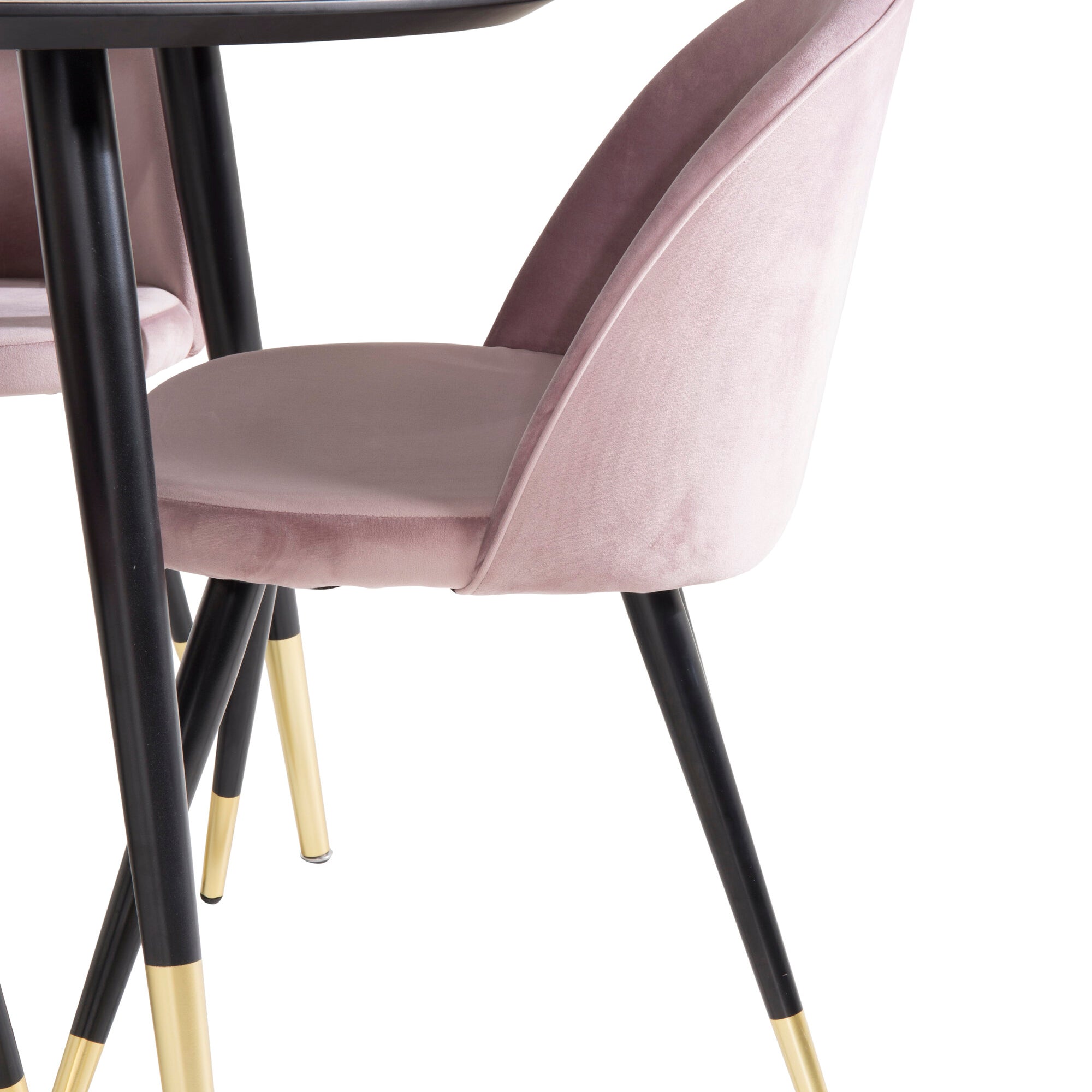 Jídelní stůl Dipp - 115 cm - Černá dýha / černé nohy s mosazným dipp - Sametová jídelní židle Mosaz - Růžová / Černá 4