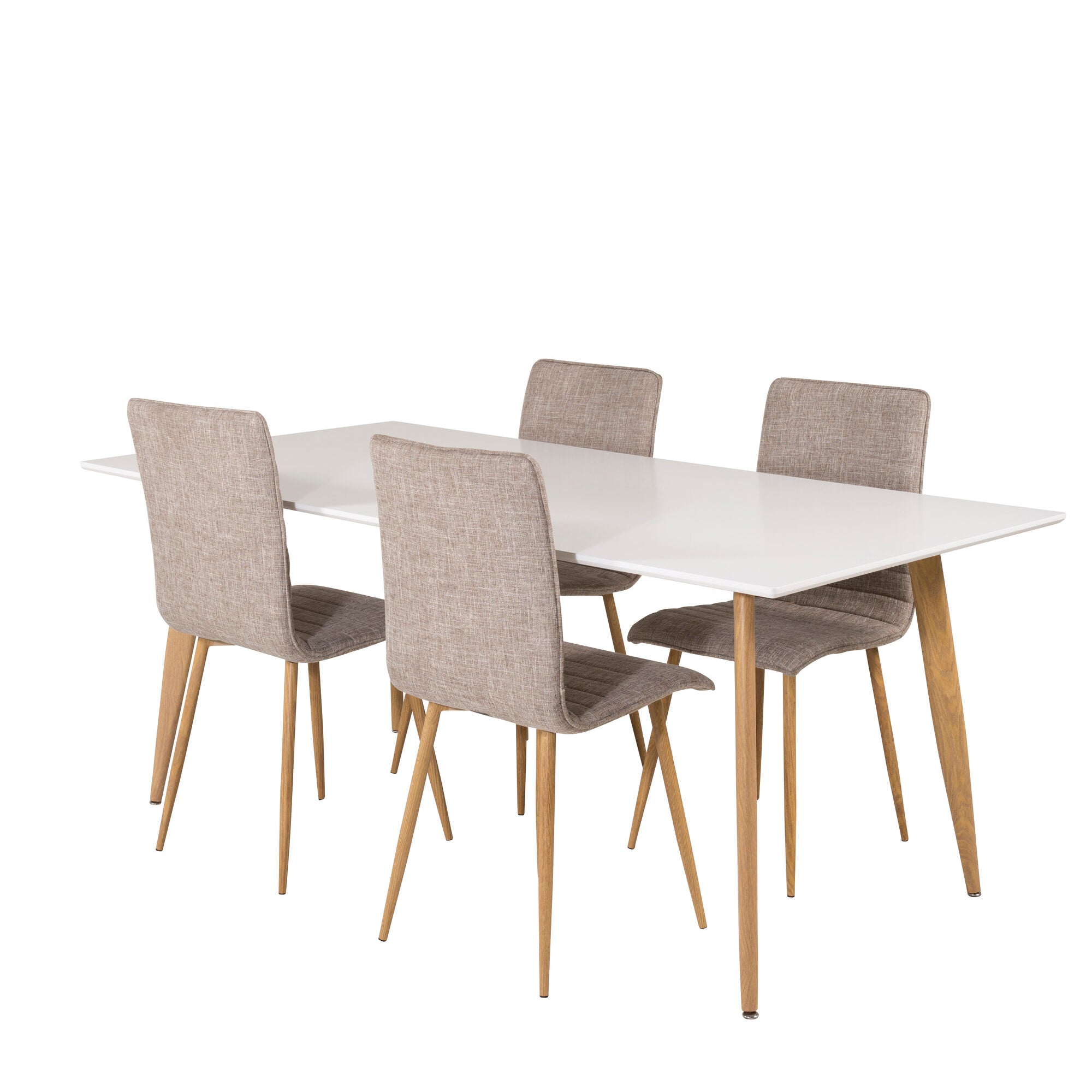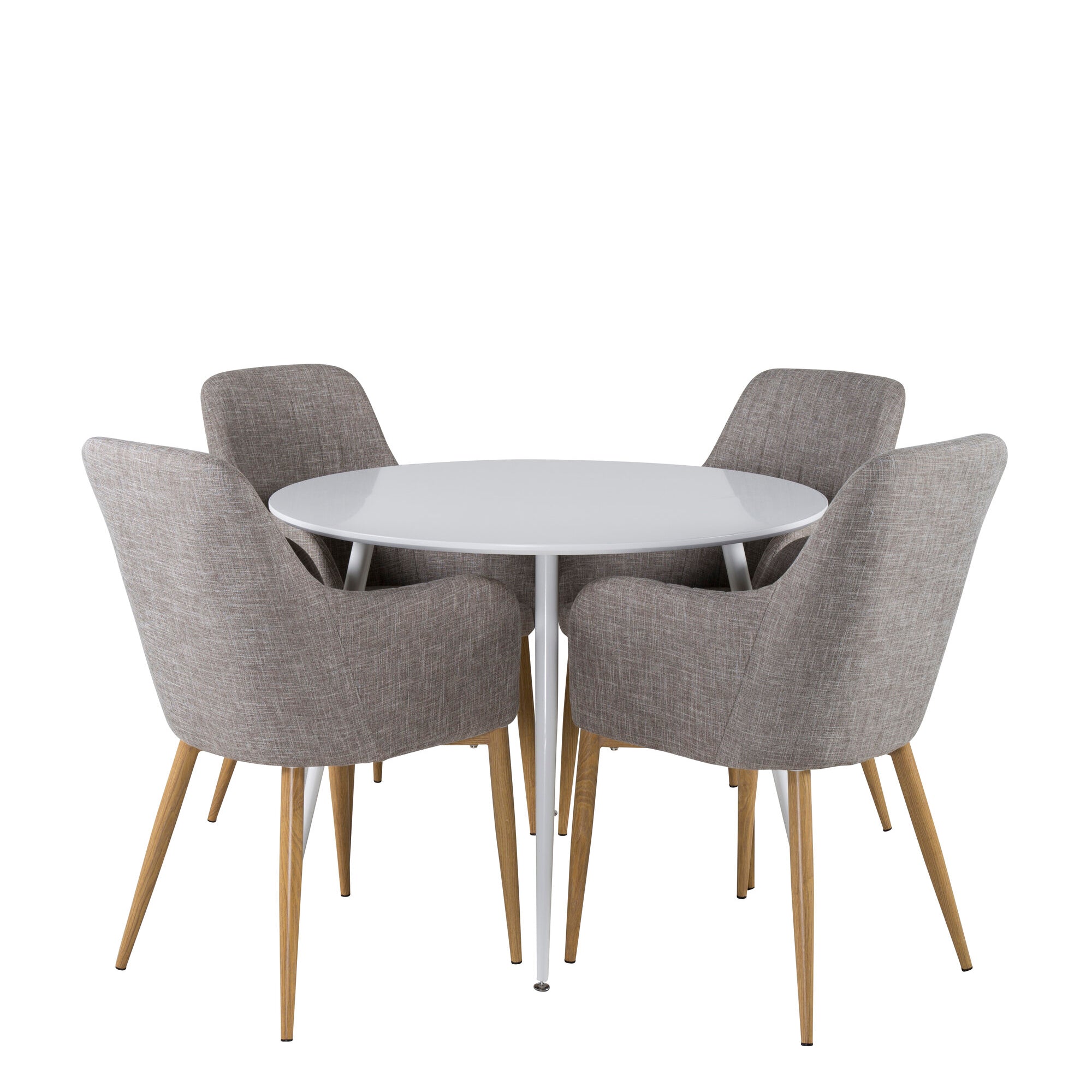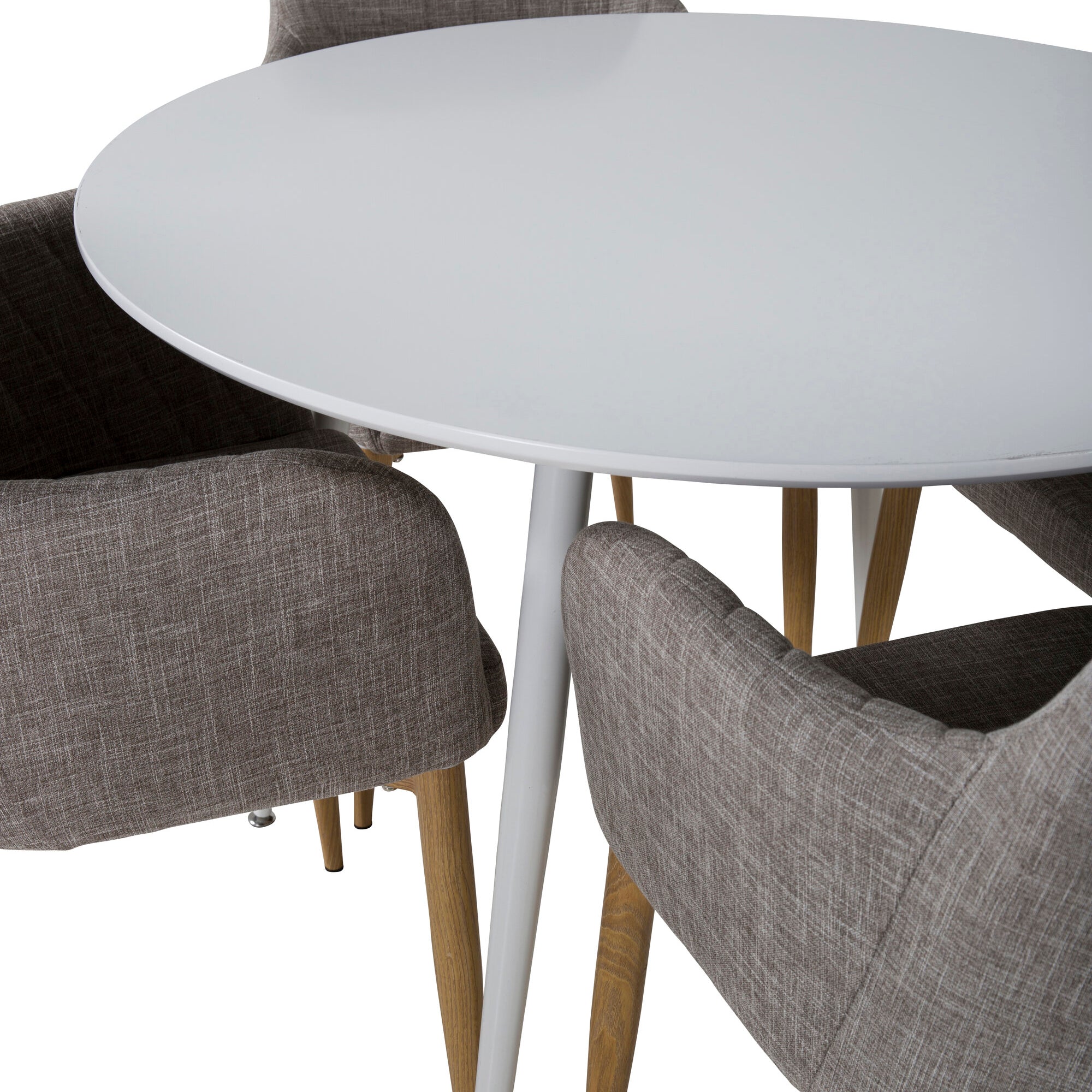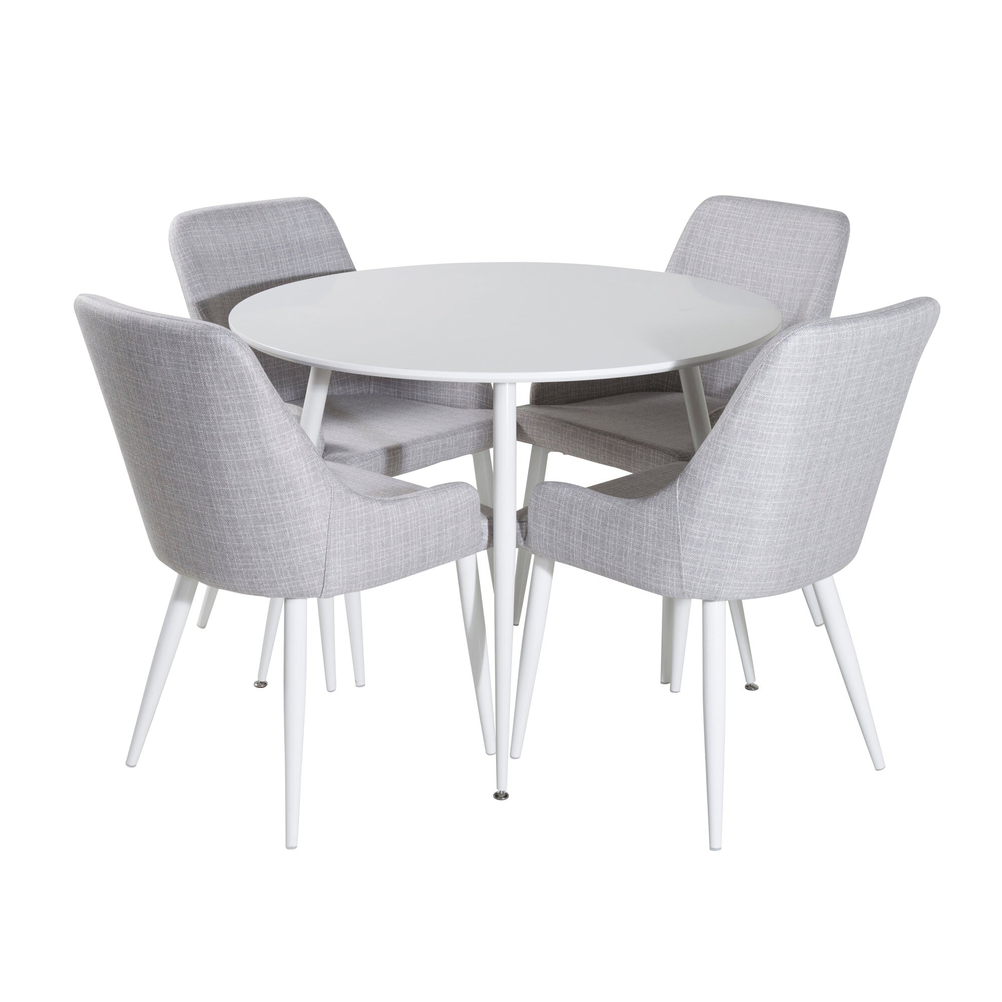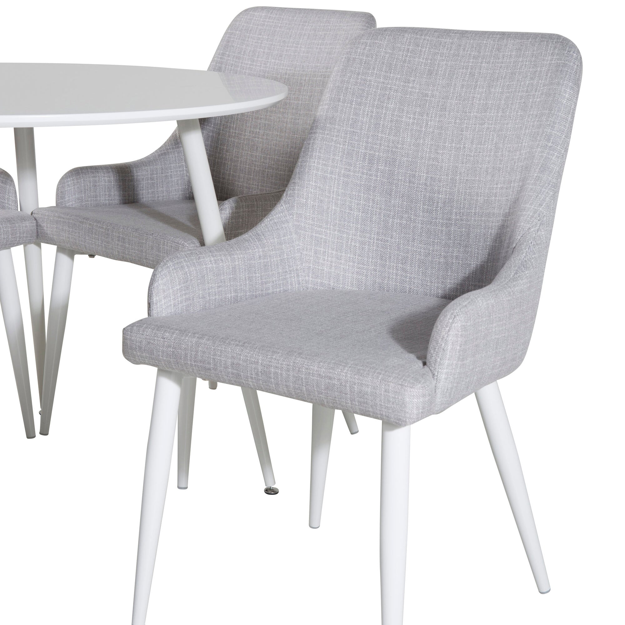 Plaza Kulatý stůl 100 cm - Bílá deska / Bílé nohy+Plaza Jídelní židle - Bílé nohy - Světle šedá Fabric_4