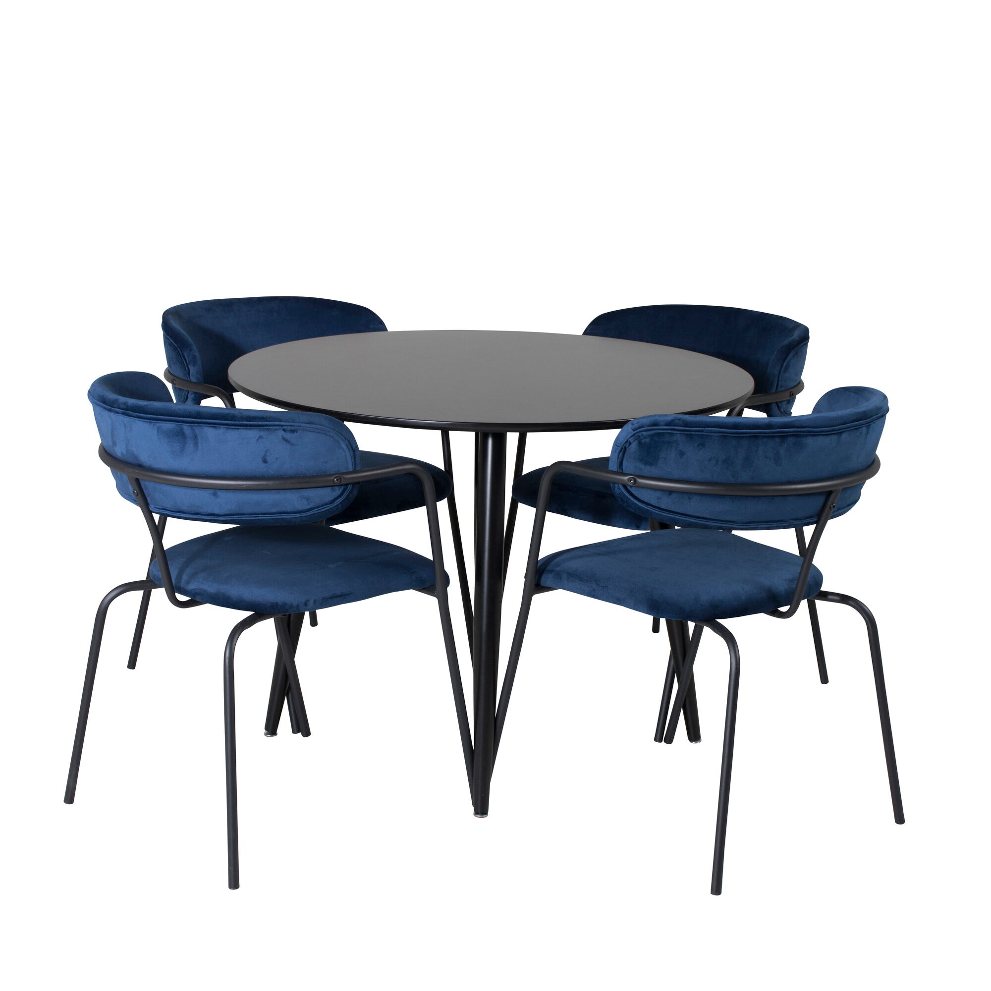 Plaza - Jídelní stůl - 100 ø - Black/Black +Arrow křeslo - Black Legs - Blue Velvet _4