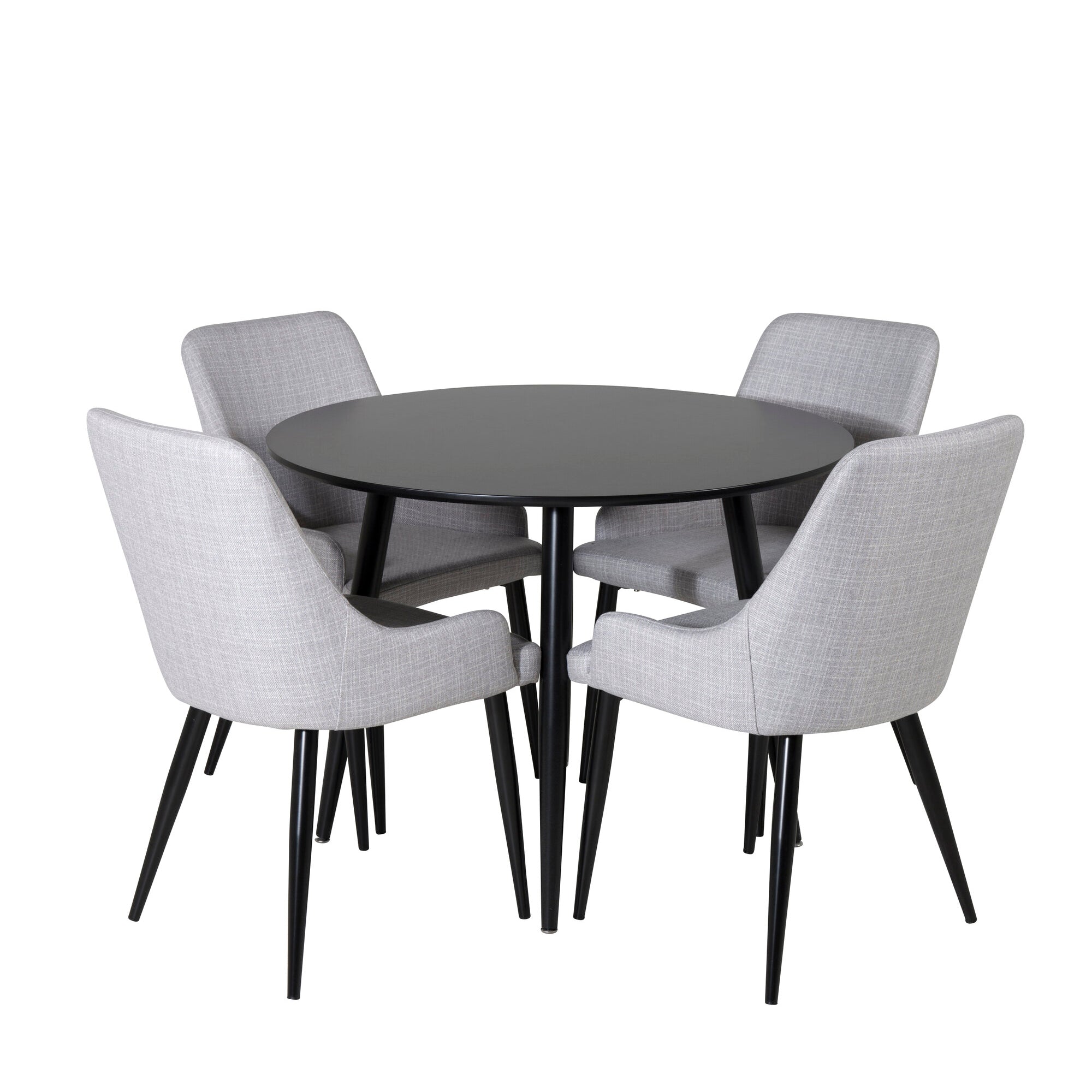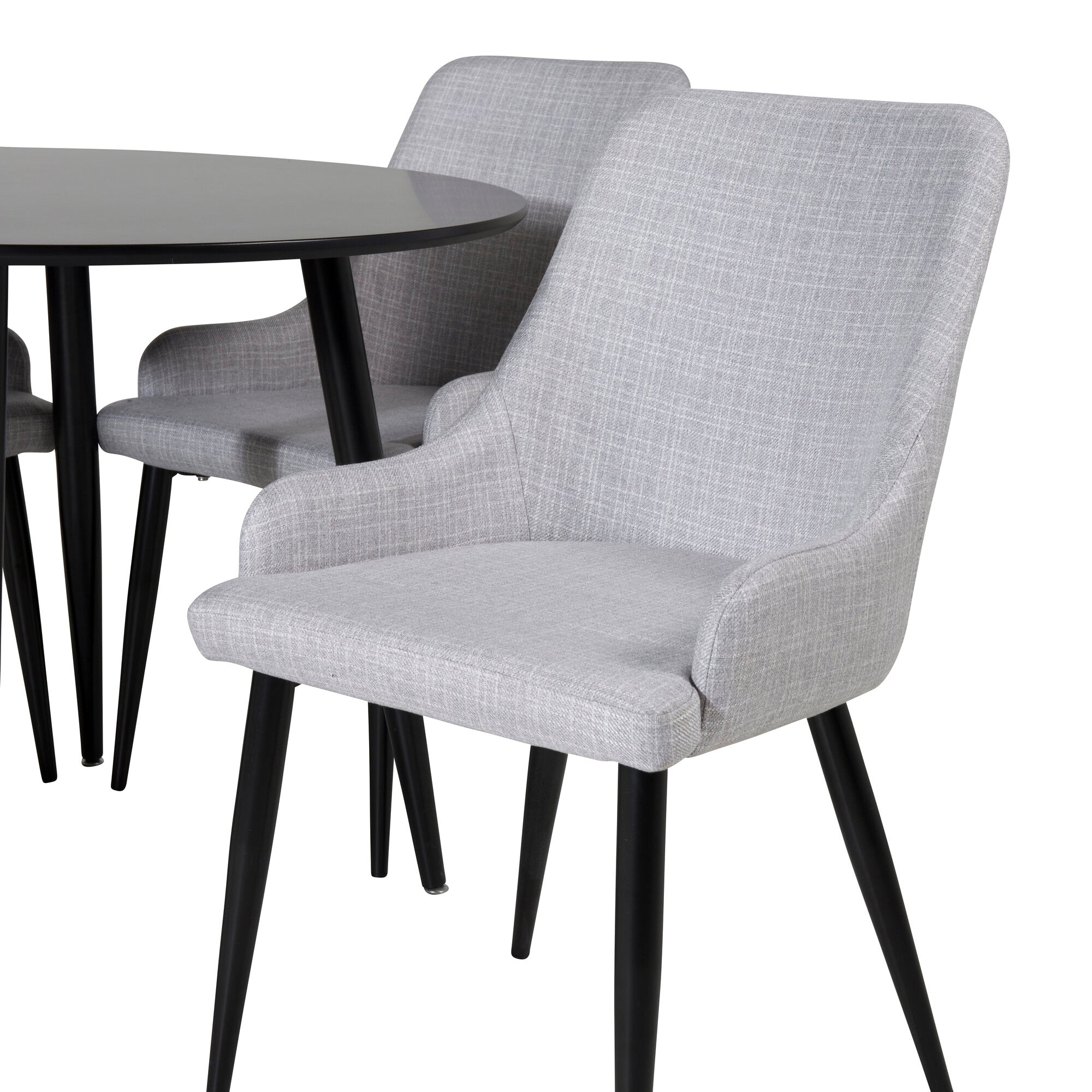 Plaza Runt Matbord - Svart / Svart - ø100*H75 +Plaza Jídelní židle - Černé nohy - Světle šedá látka _4