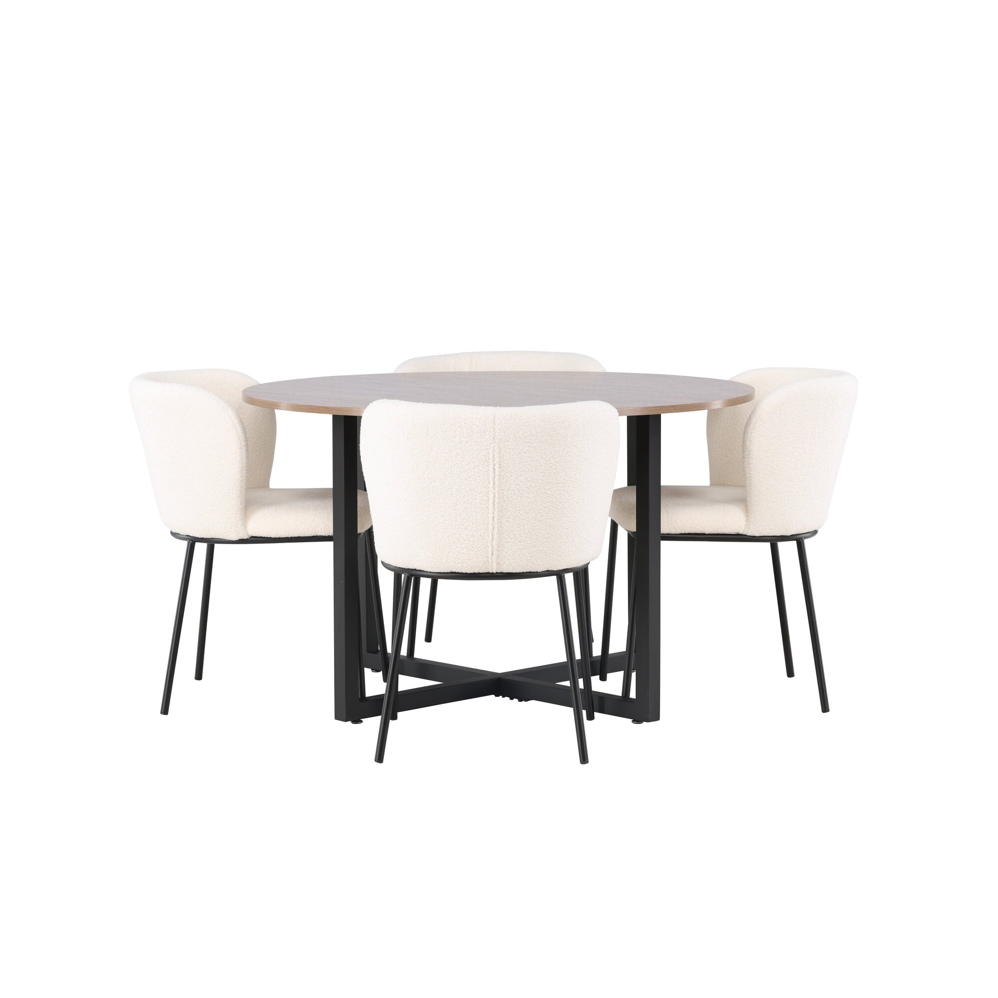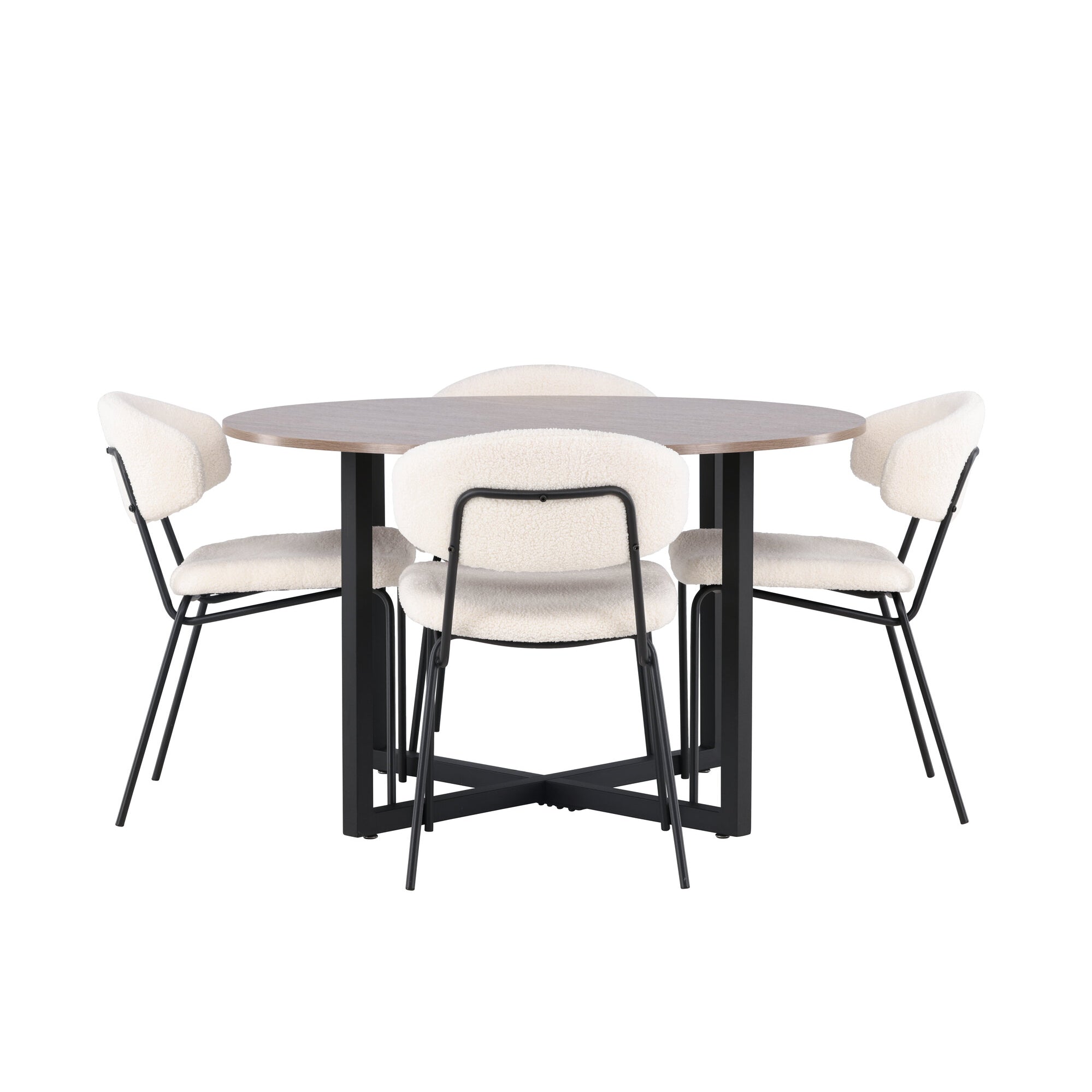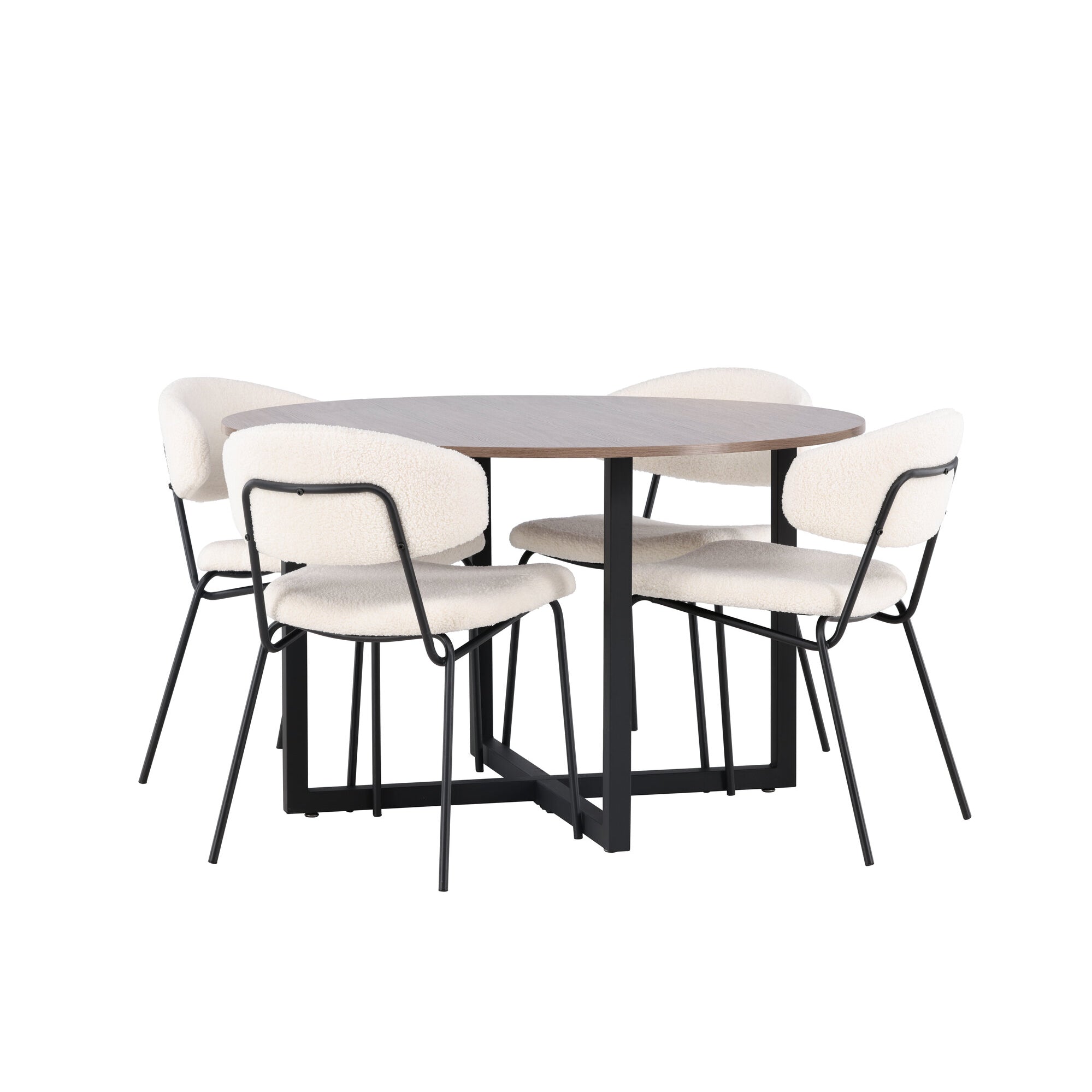 Jídelní stůl Durango - černá / ořechová MDF + jídelní židle Chico - černá / bílá Boucle _4