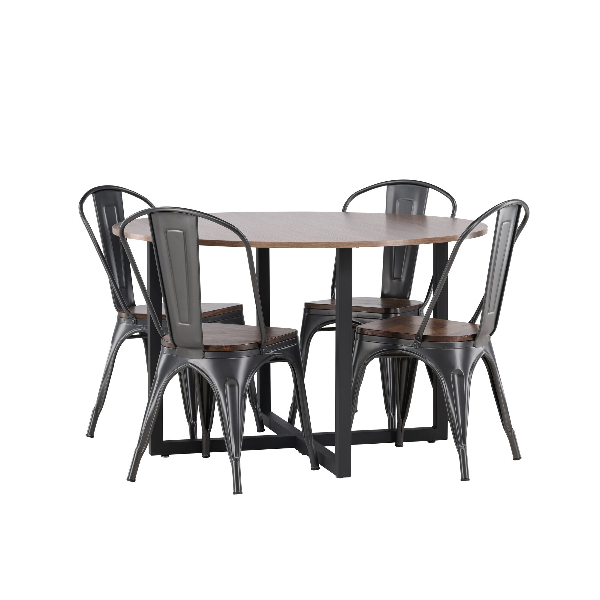 Plaza - Jídelní stůl - 100 ø - Černá/Černá +Plaza - Jídelní židle - Černá/Tmavě šedá _4
