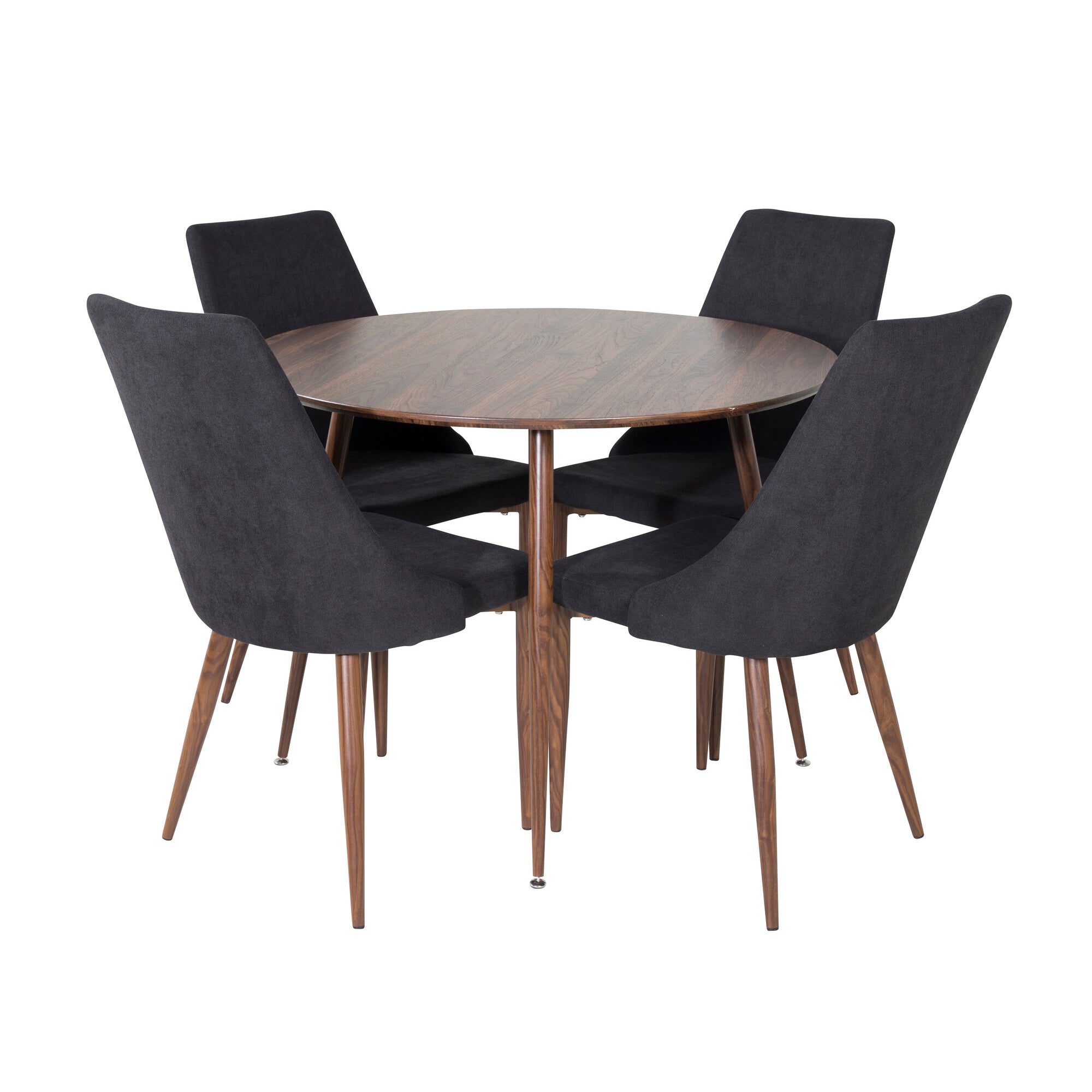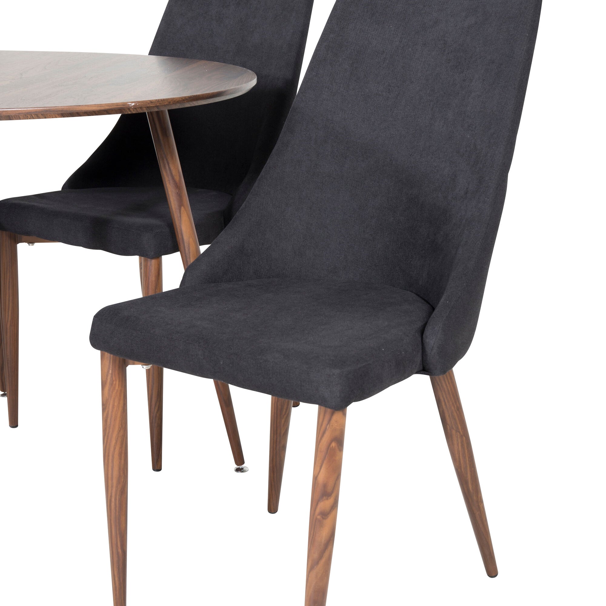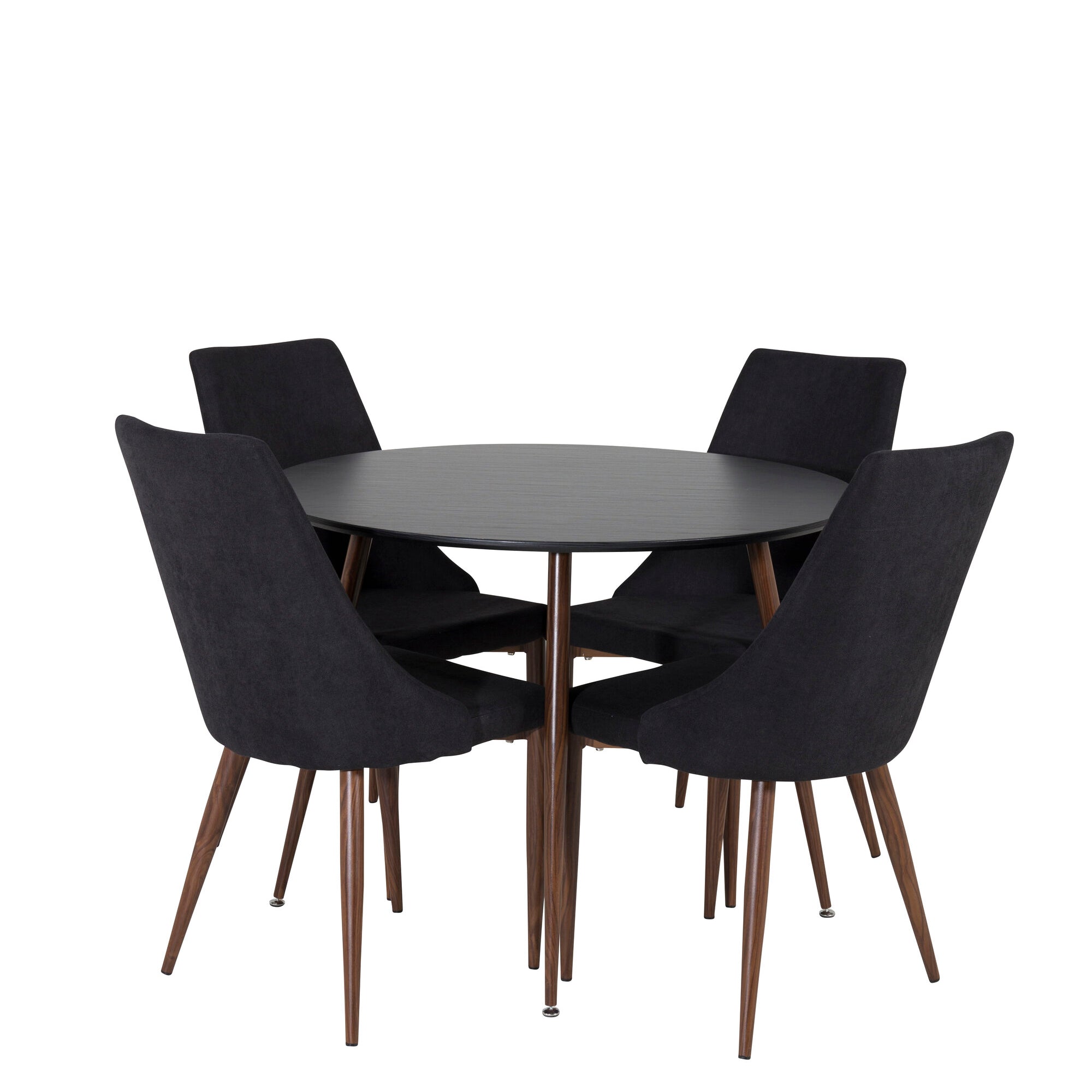 Plaza Kulatý stůl 100 cm - Ořechová deska - Ořechové nohy+Jídelní židle Leon - Ořechové nohy - Černá Fabric_4