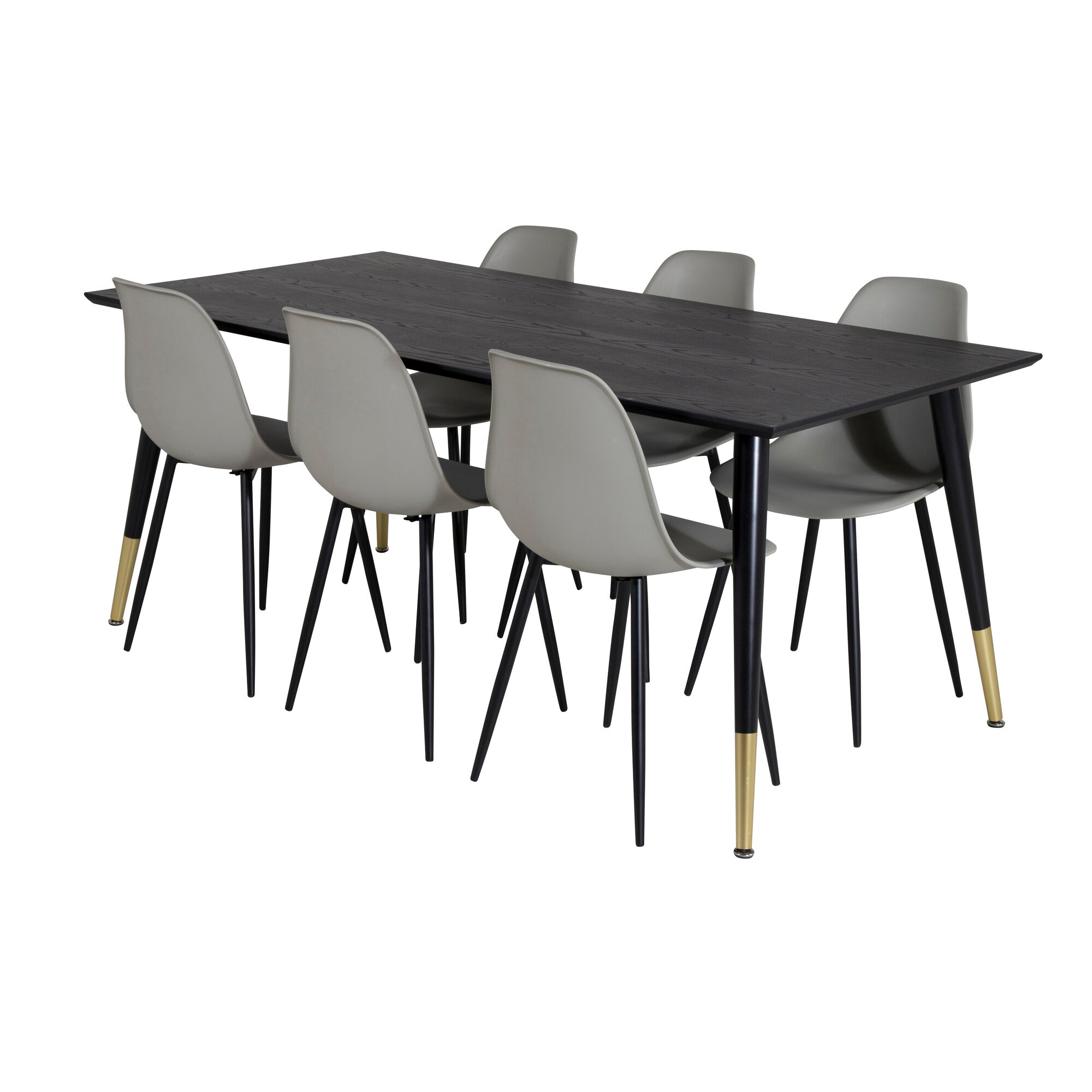 Jídelní stůl Dipp - 180*90cm - Černá / Černá mosaz+Polar Plastová jídelní židle - Černé nohy / Šedý plast_6