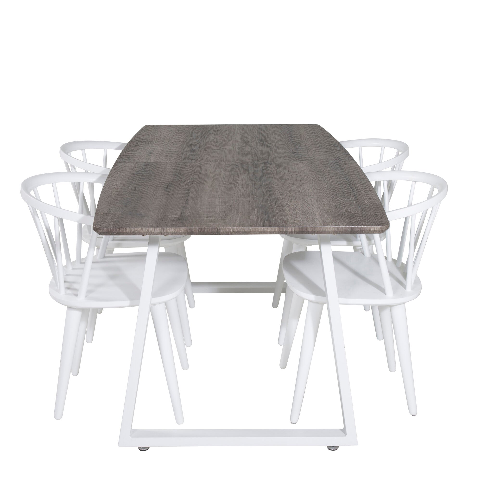 Inca Extentiontable - šedý "dub" / bílá Nohy+Bobby Windsor Jídelní židle - White_4