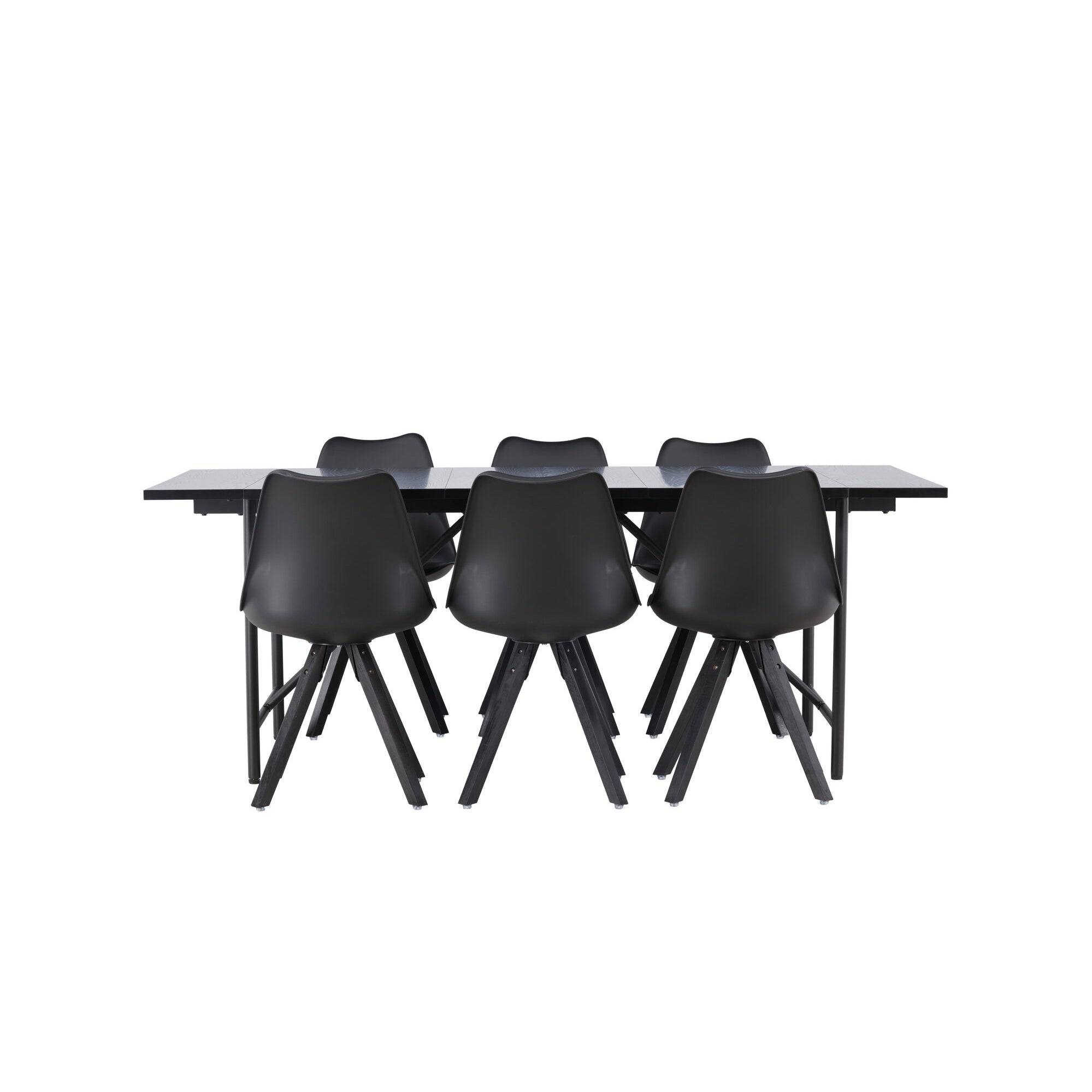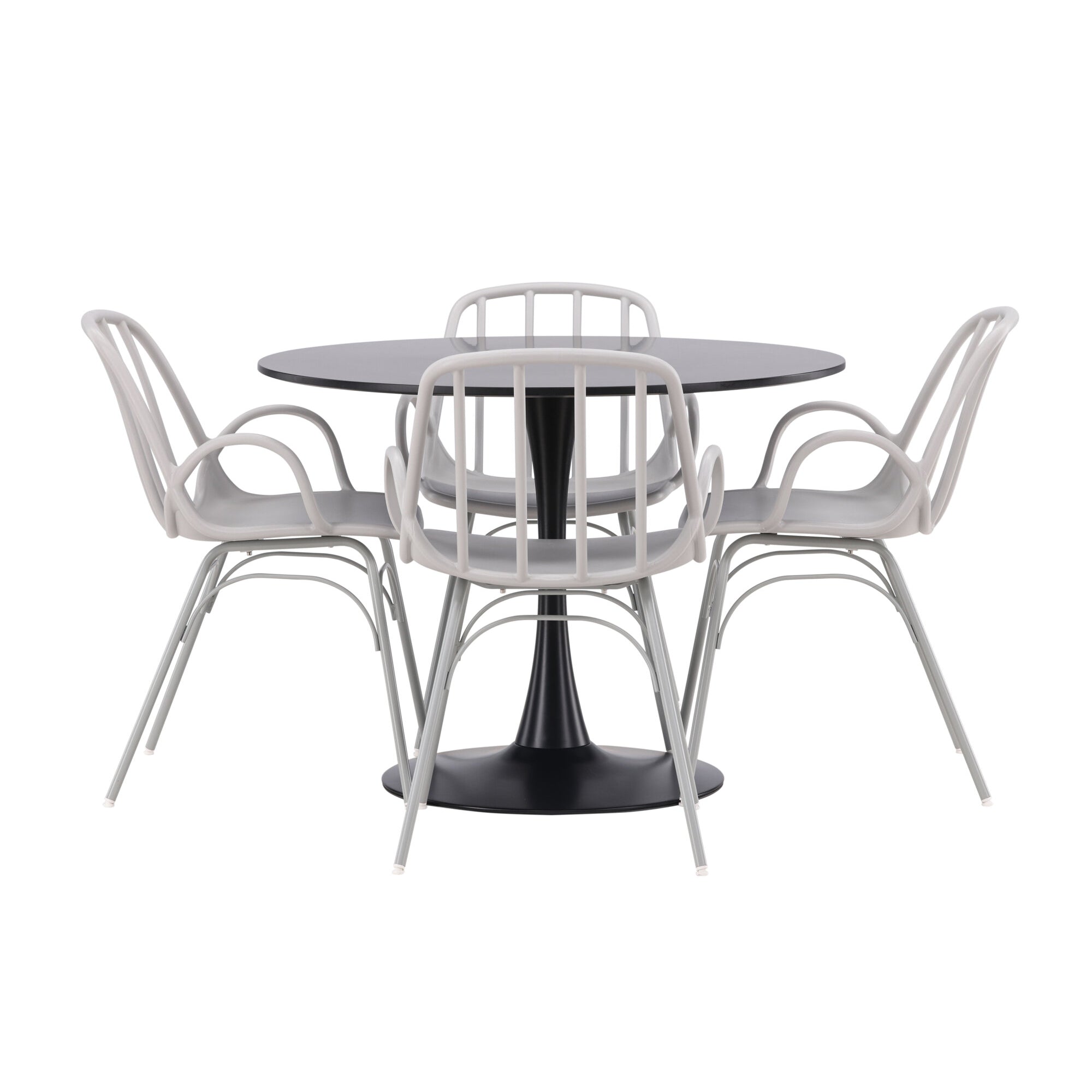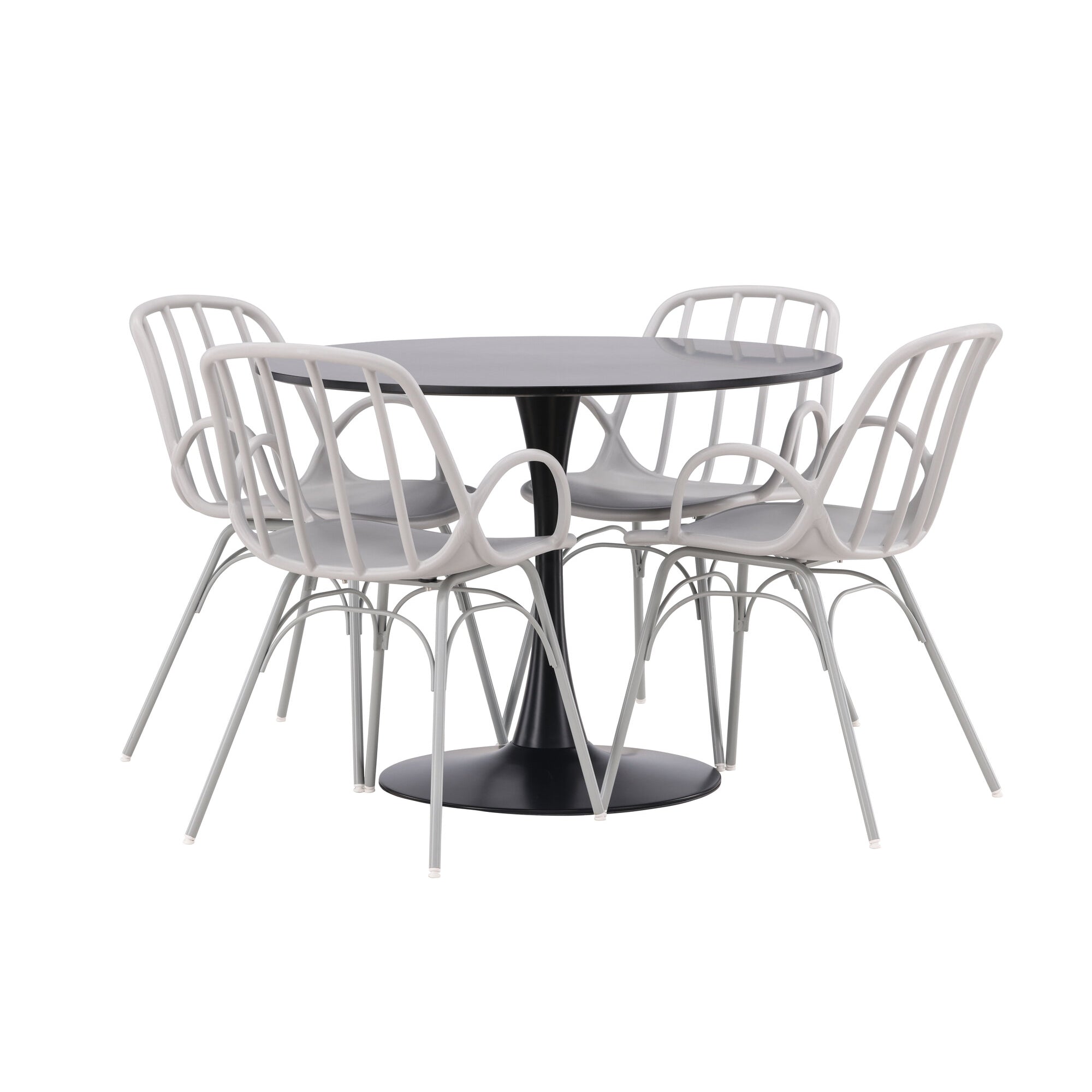 Jídelní stůl Glade - Černá / Černá MDF + Jídelní židle Dyrön - Greige Polypropylen _4