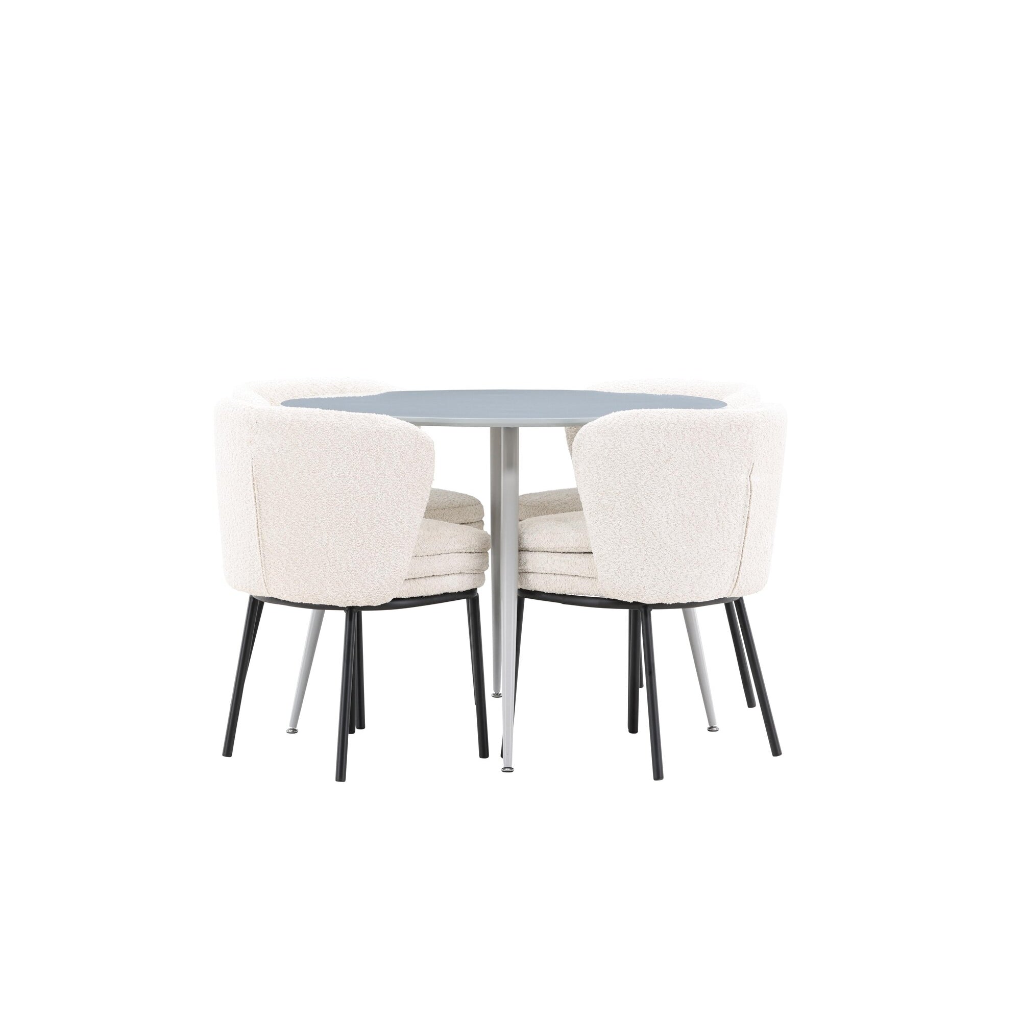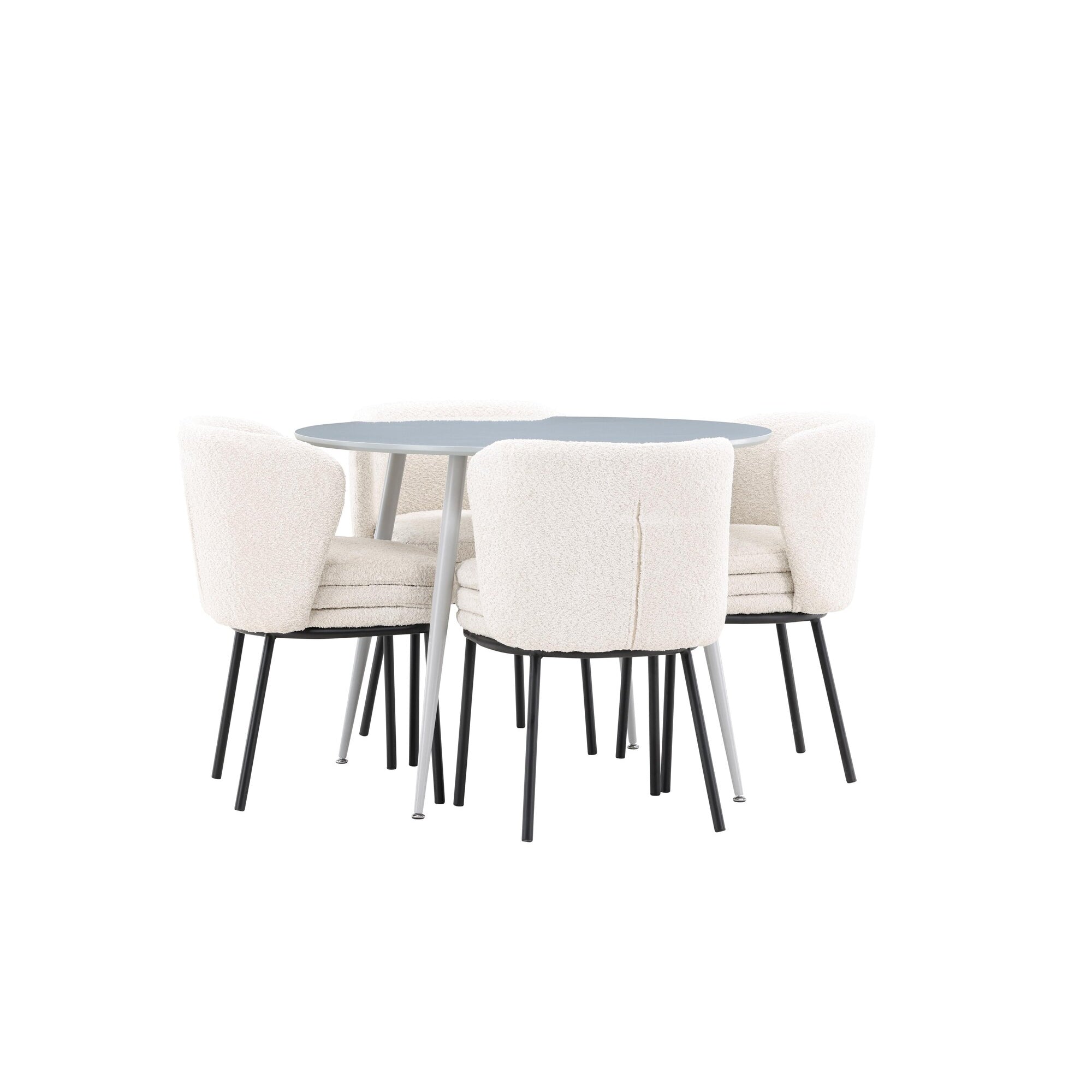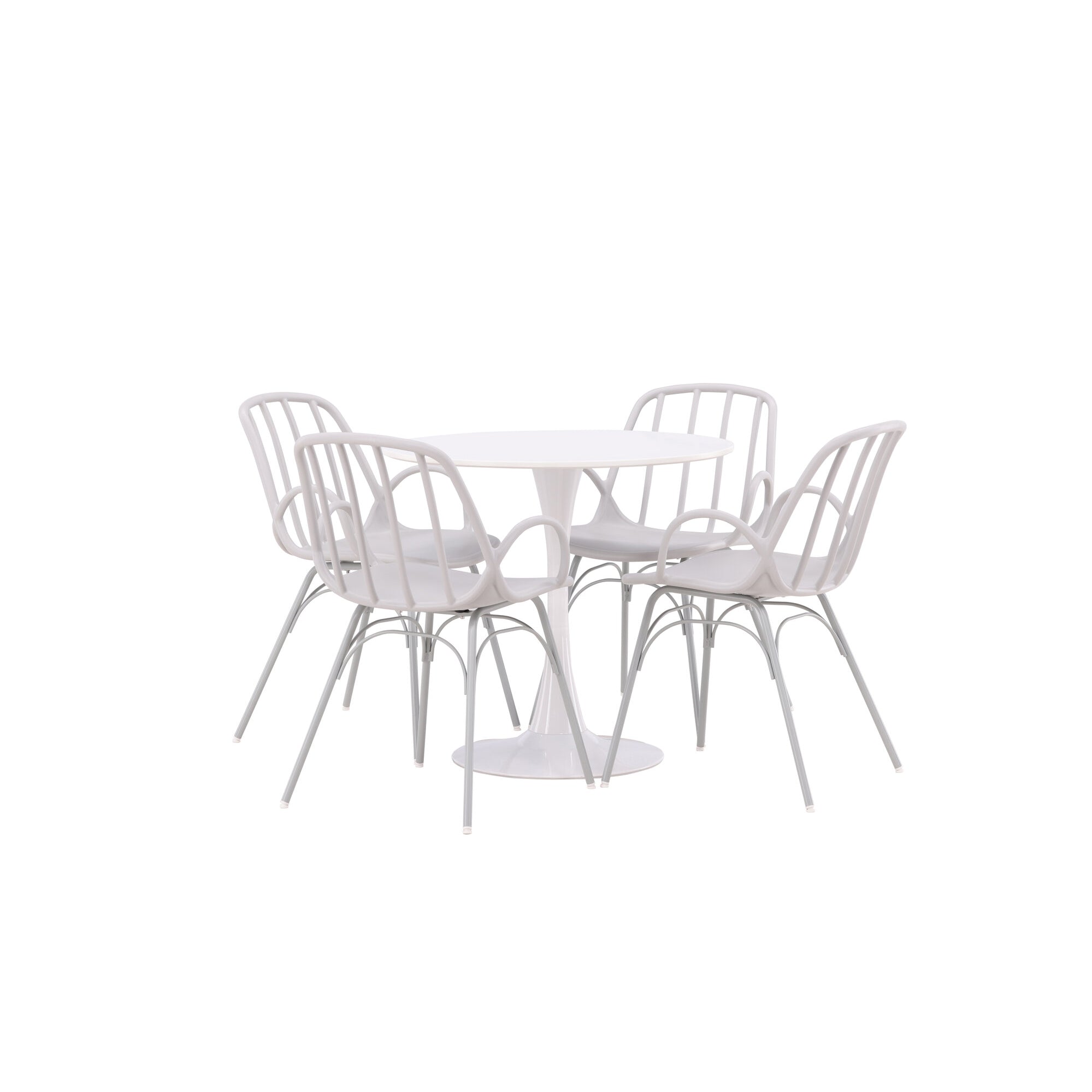 Parma cafébord ø90 - Bílá Alu / Šedá židle Aintwood+Albany 5:pos - Bílá Alu /