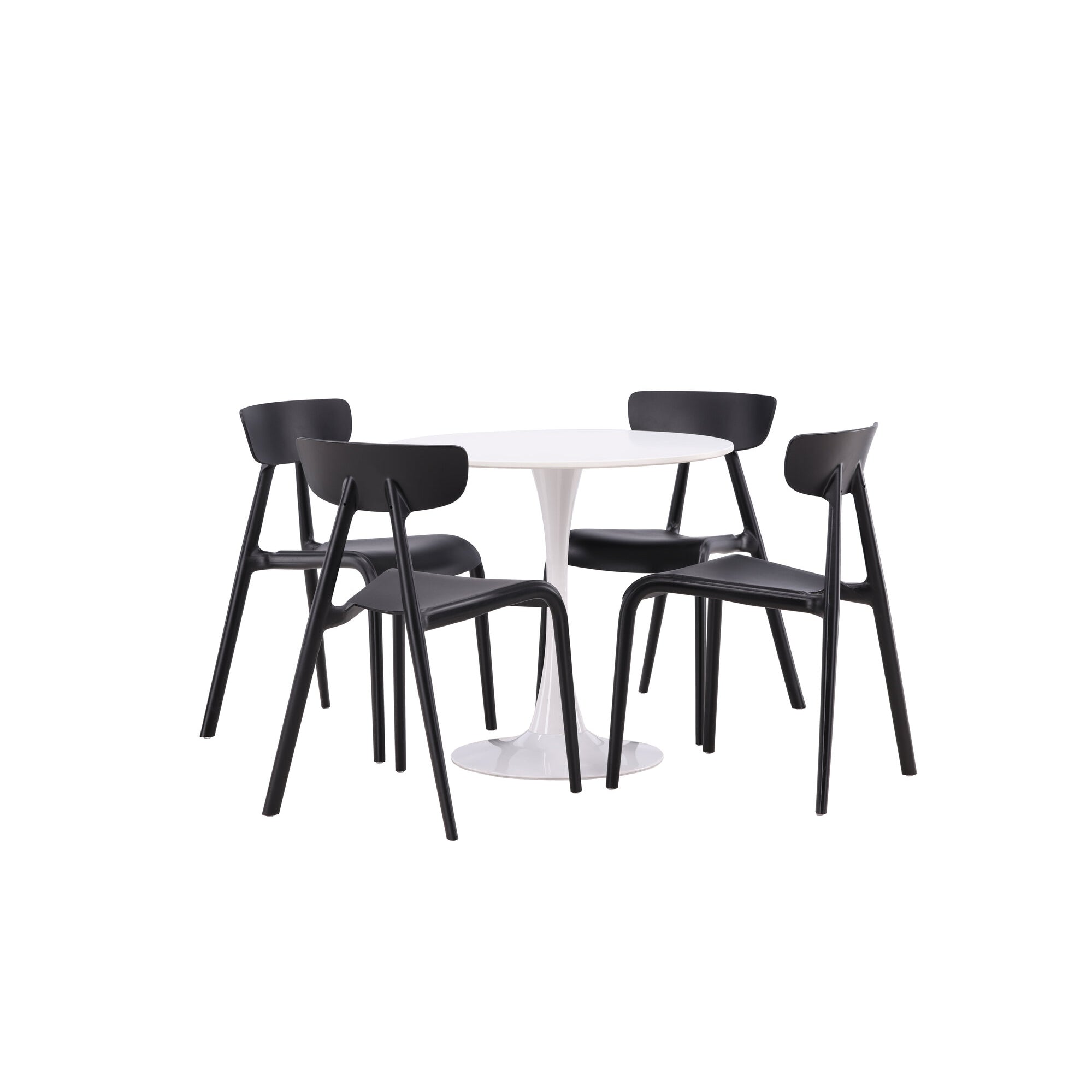 Jídelní stůl Hamden - Bílá MDF+Ursholmen Jídelní židle - Černá Polypropylen_4