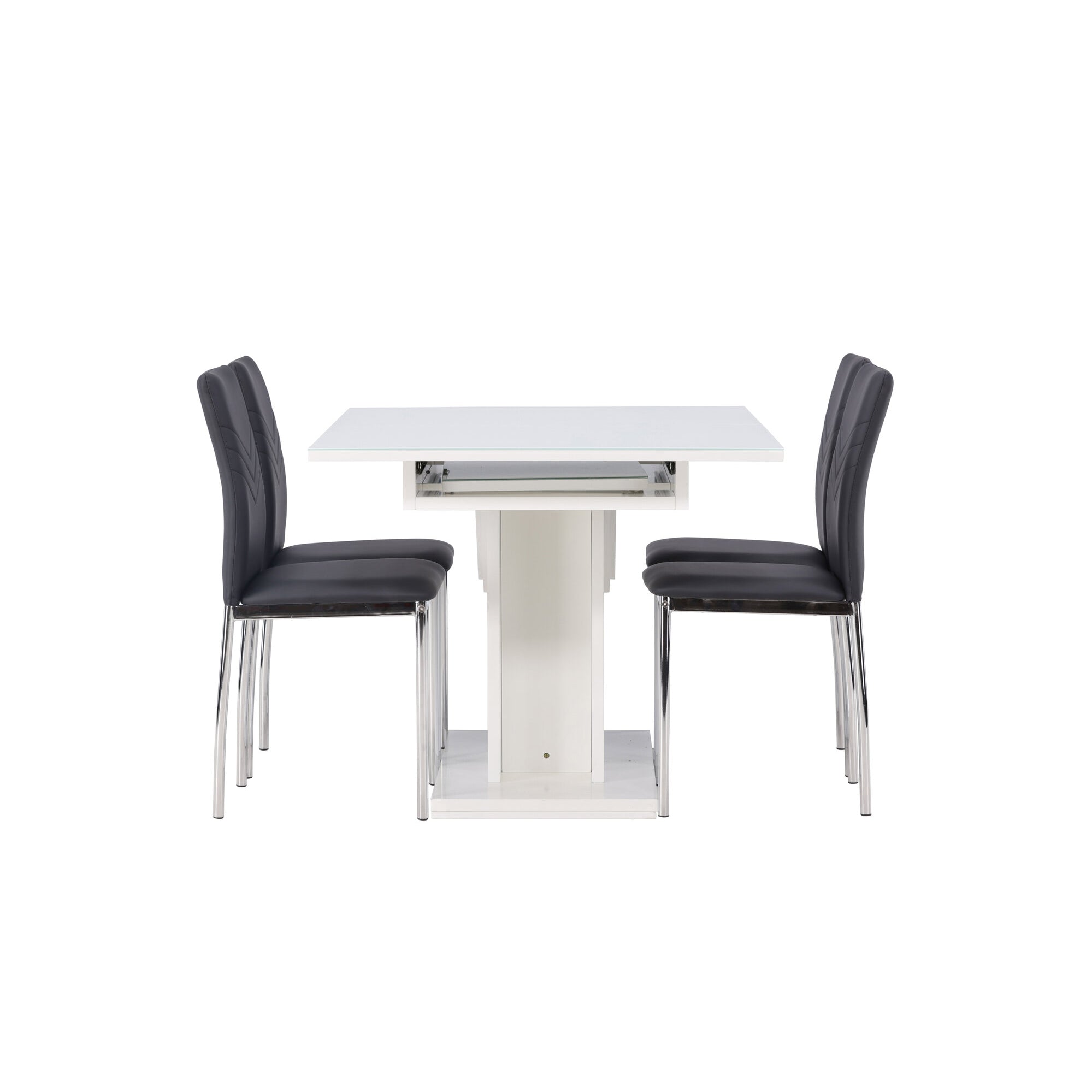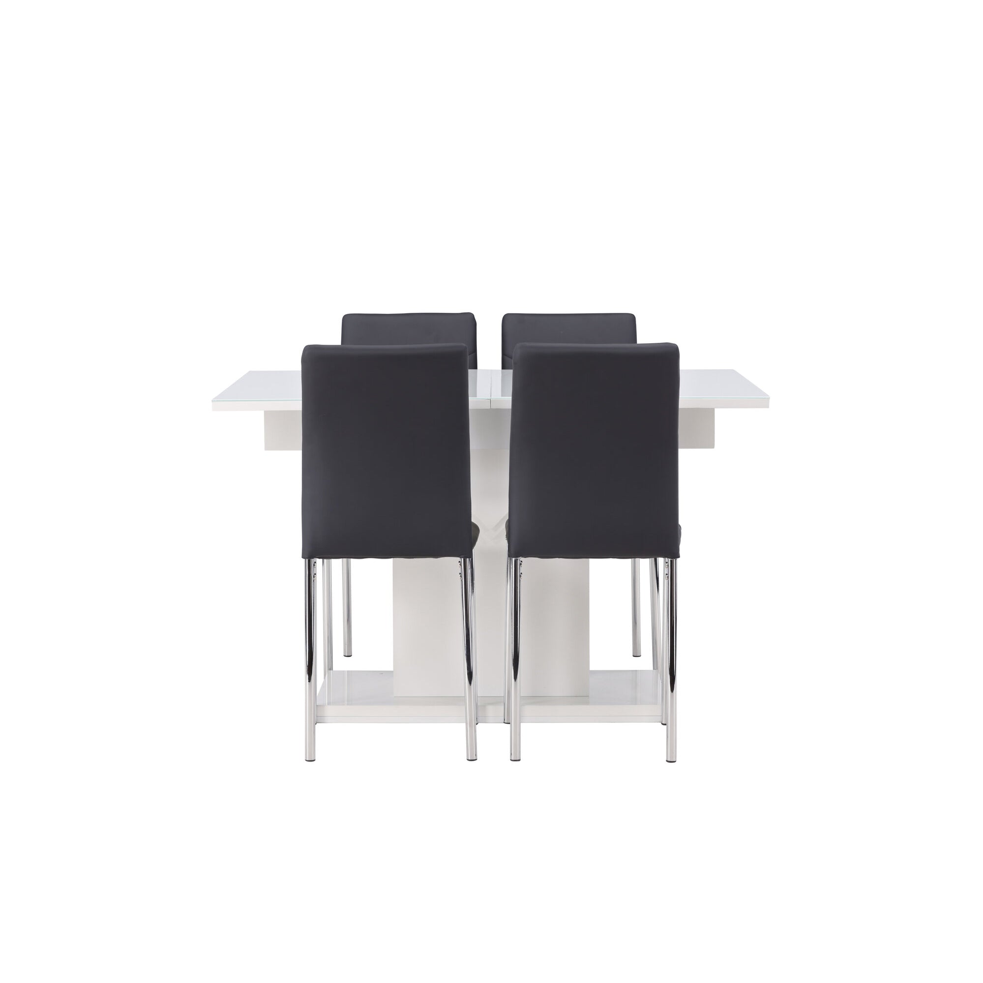 Jídelní stůl Pluto 120/160*90- Bílá / Sklo MDF + Jídelní židle Lily - Chromovaná noha / Černá PU _4