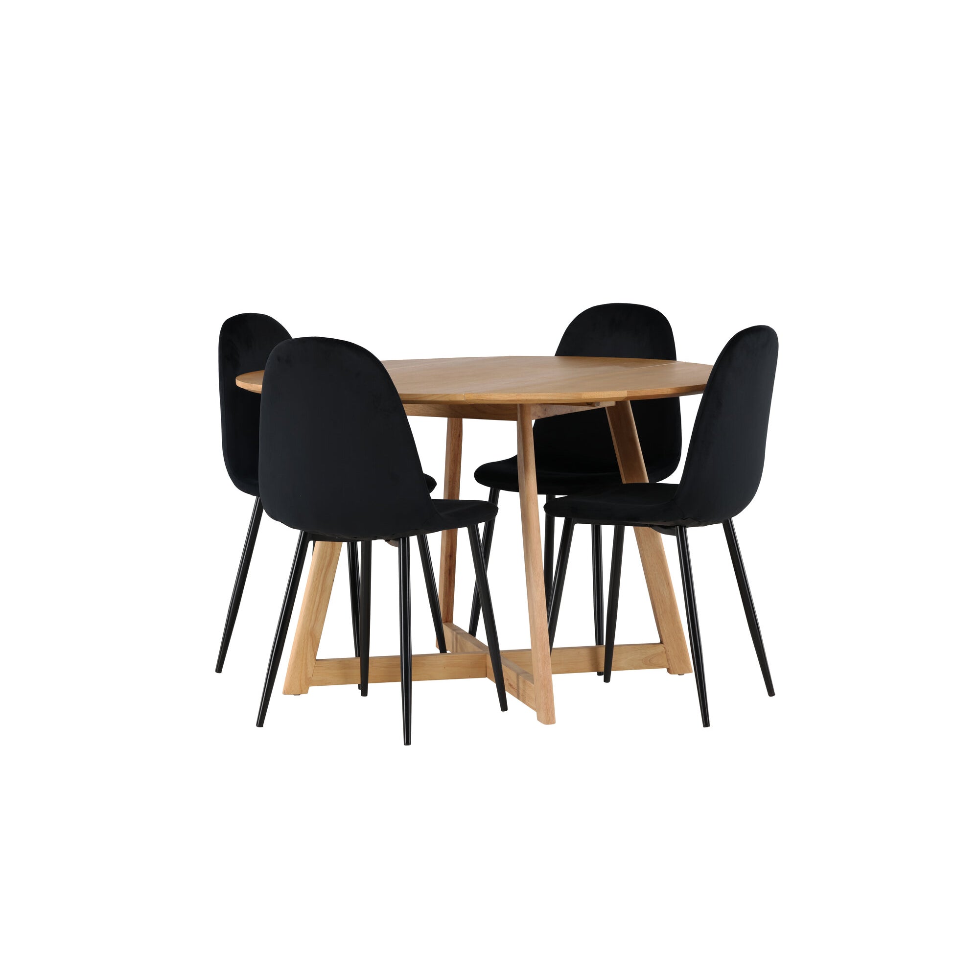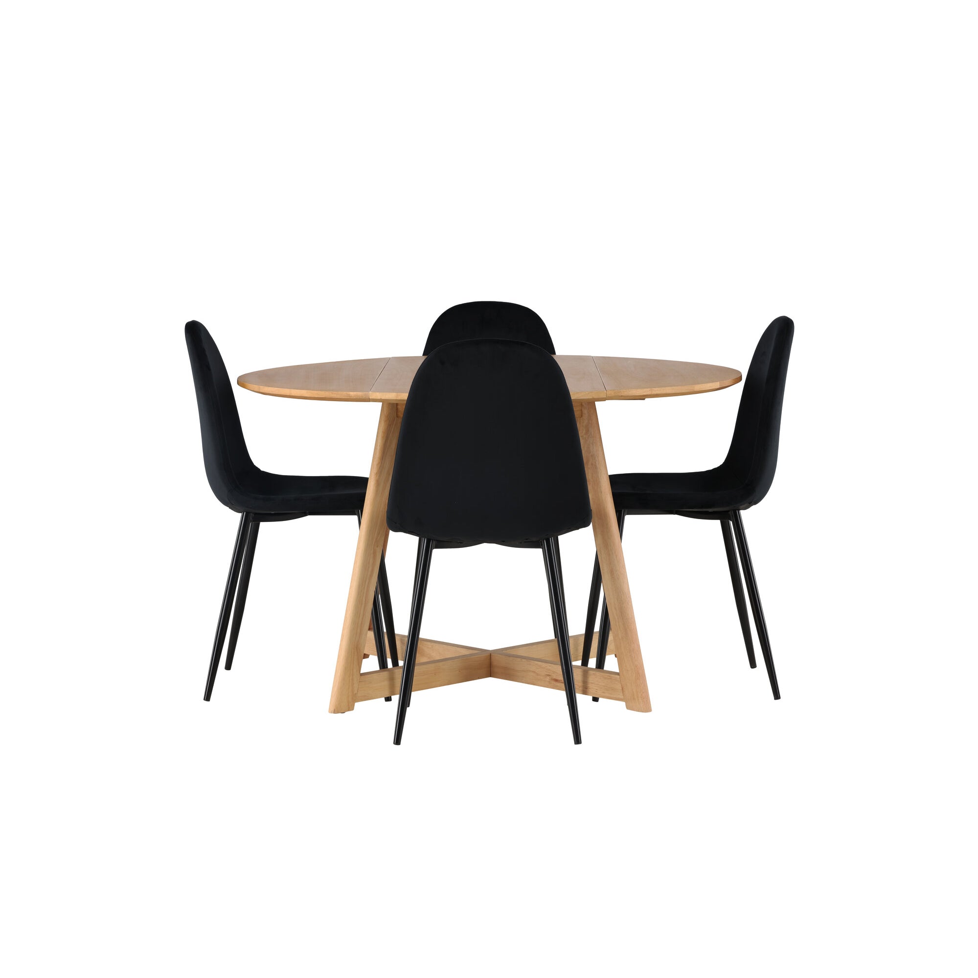 Jídelní stůl Yakidon - Gumové dřevo / Oaklook MDF + Jídelní židle Polar - Černé nohy / Black Velvet _4