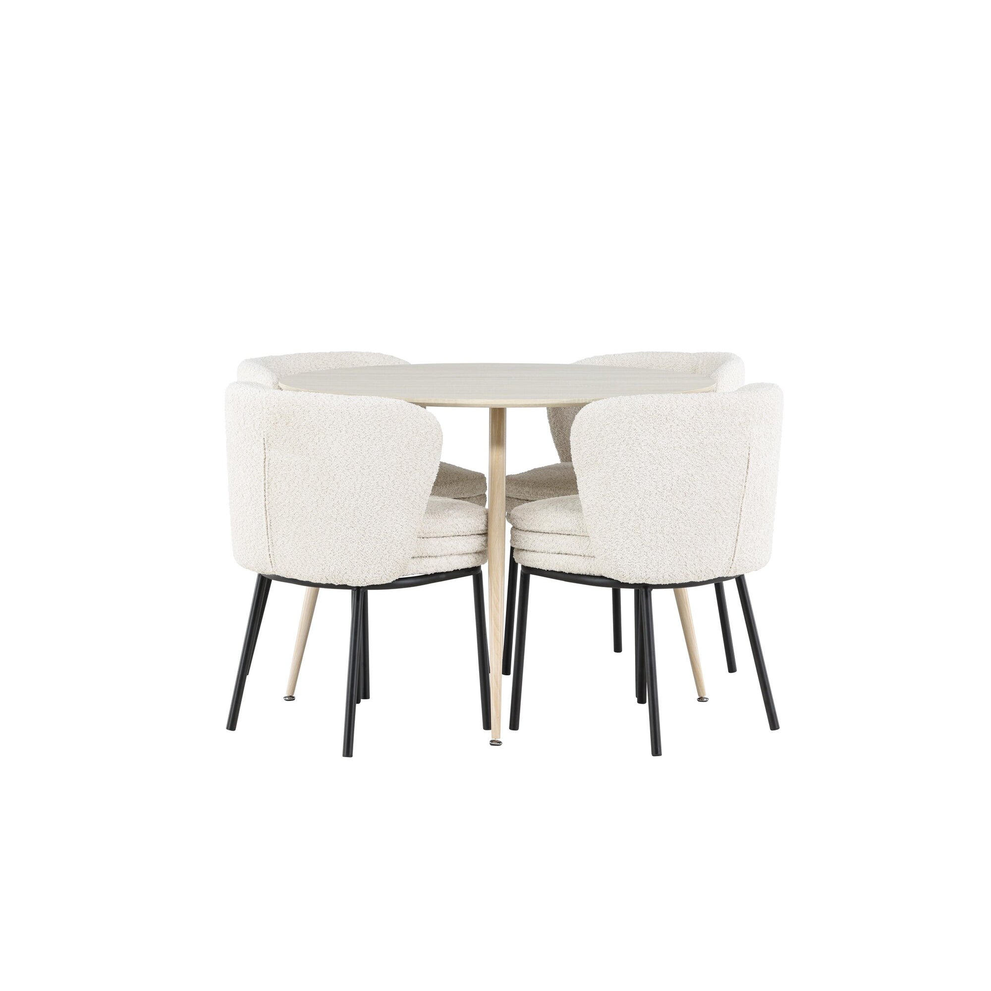 Jídelní stůl Hamden - Bílá Jídelní židle MDF+Dyrön - Greige Polypropylen_4