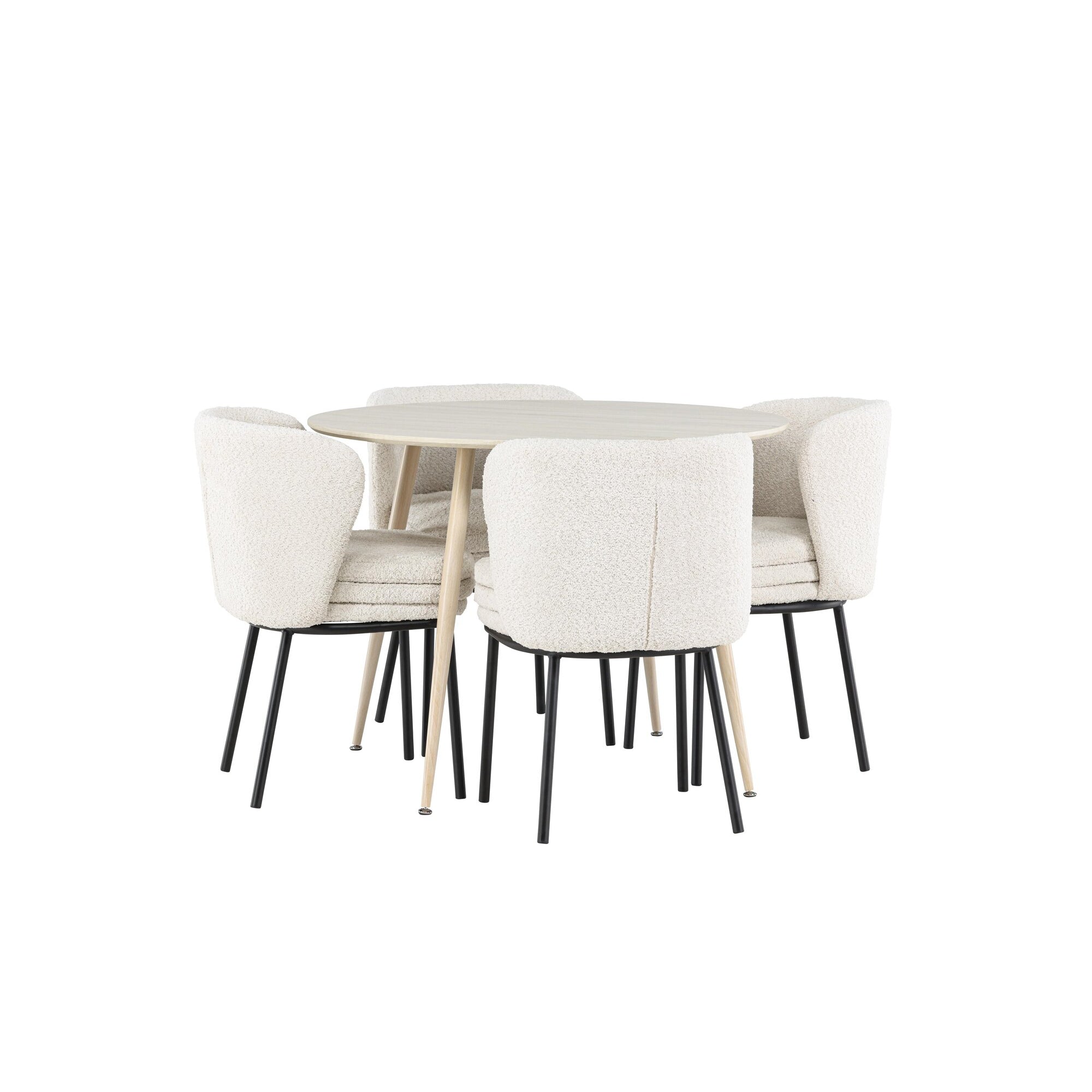 Jídelní stůl Volta - Bílý - ø90+Texas křeslo (stohovatelné) - Bílý / Teak_2