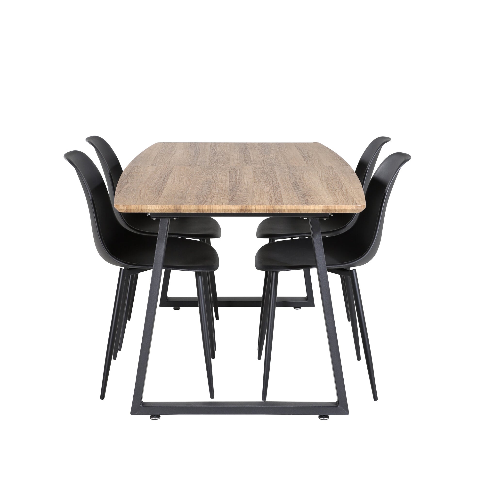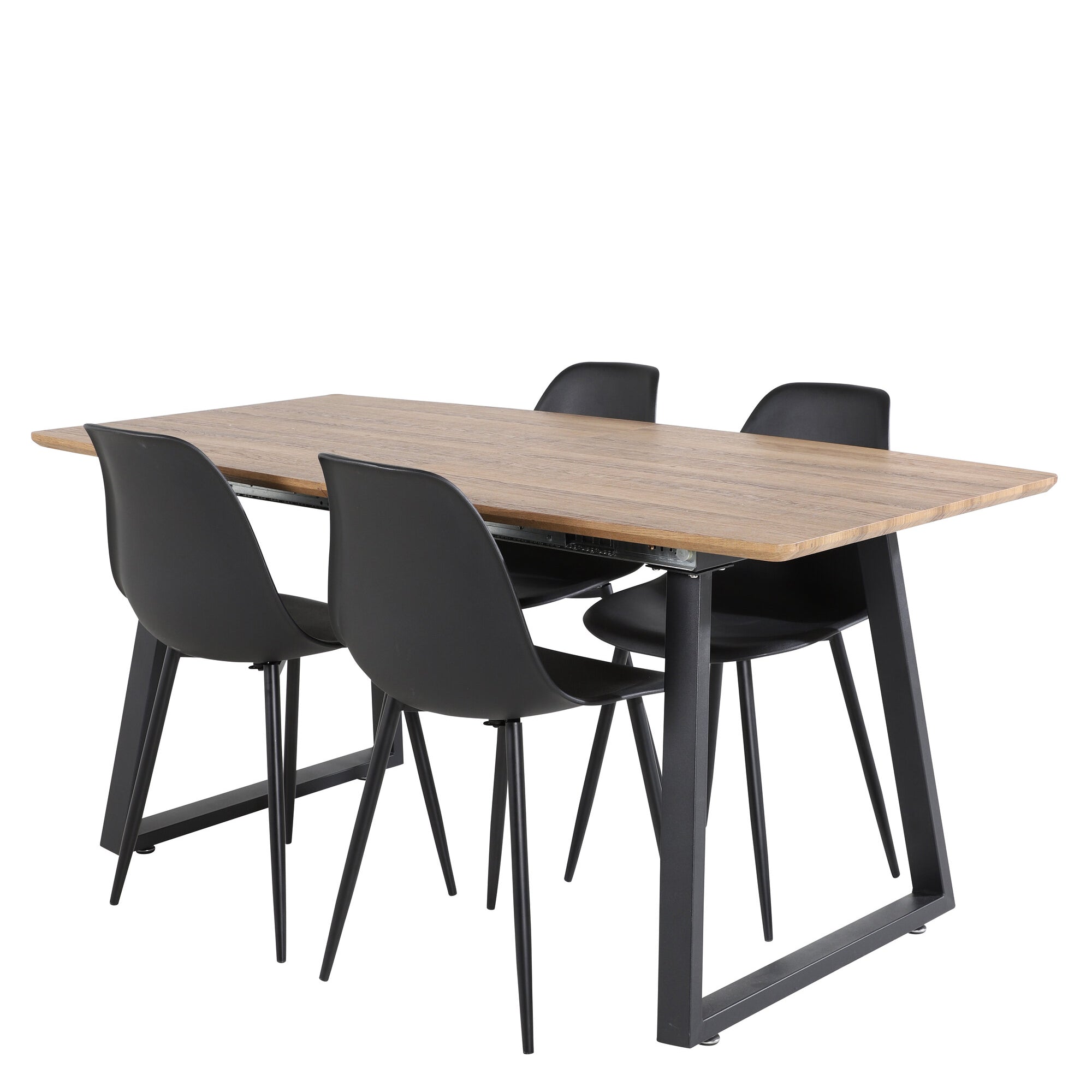 Jídelní stůl Inca - 160/200*85*H75 - Dub / Černá+Polar Plastová jídelní židle - Černé nohy / Černý Plast_4