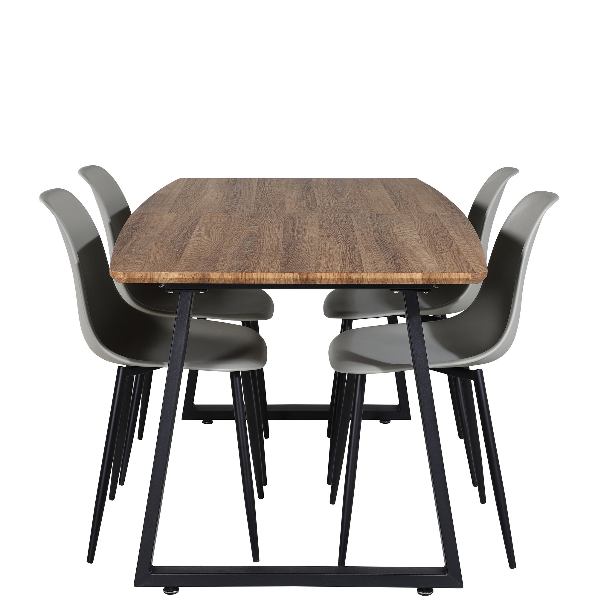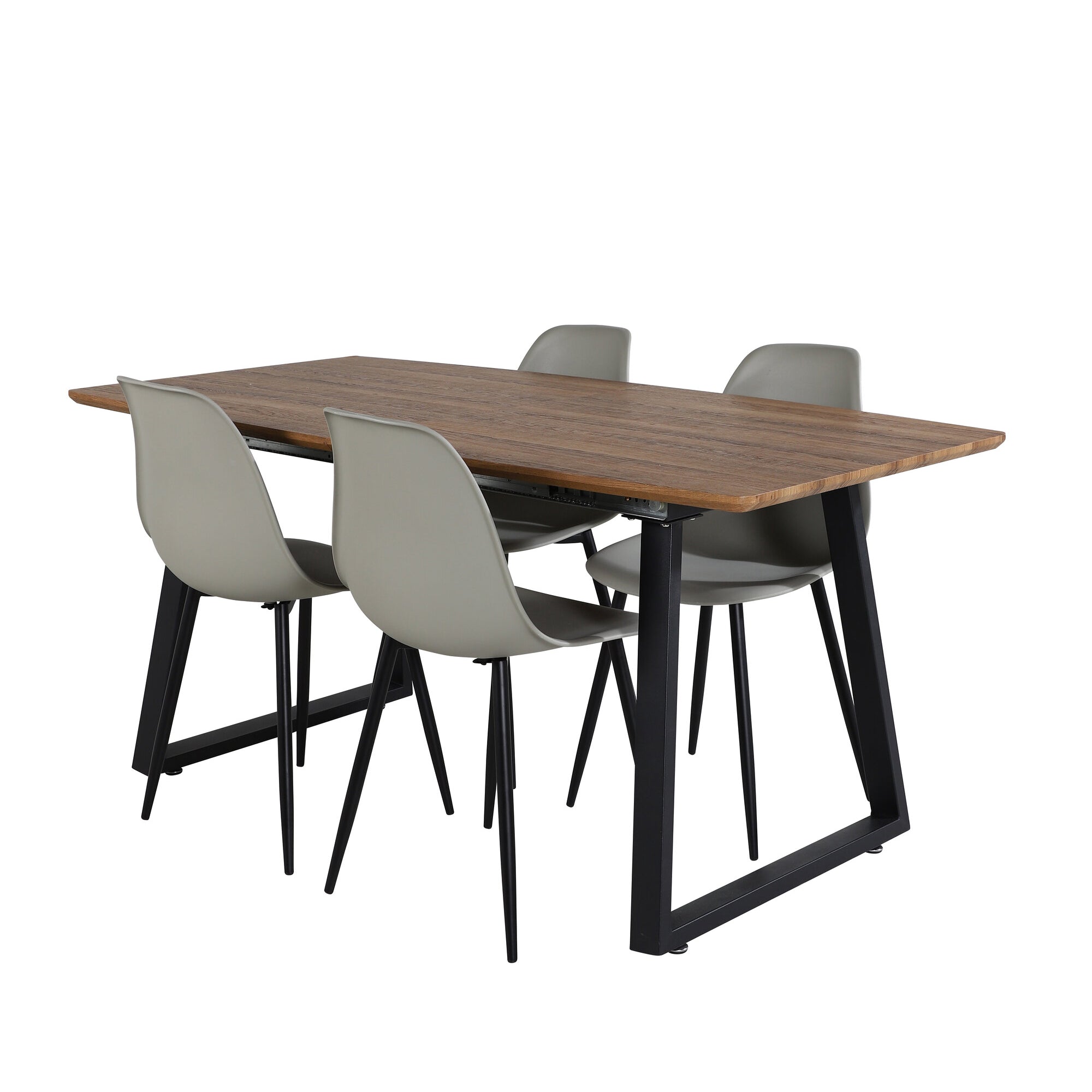 Jídelní stůl Inca - 160/200*85*H75 - Dub / Černá+Polar Plastová jídelní židle - Černé nohy / Šedý plast_4
