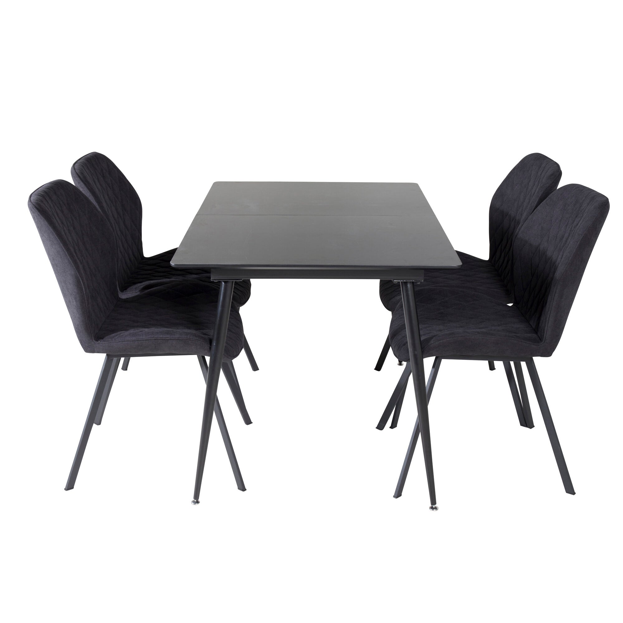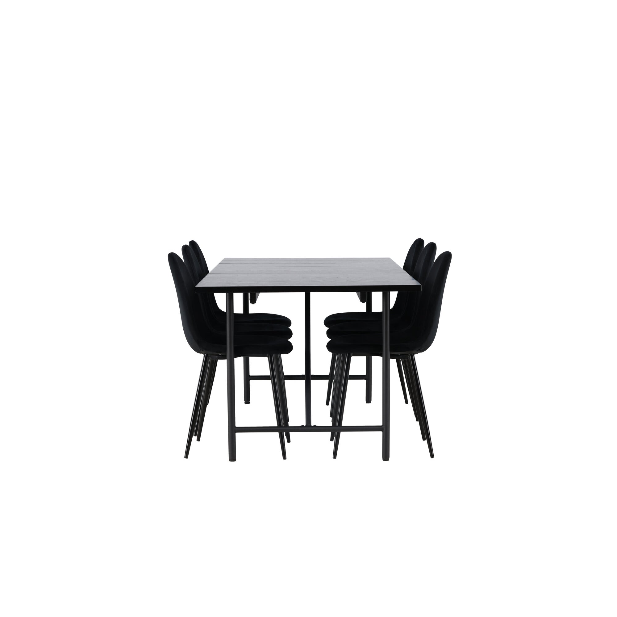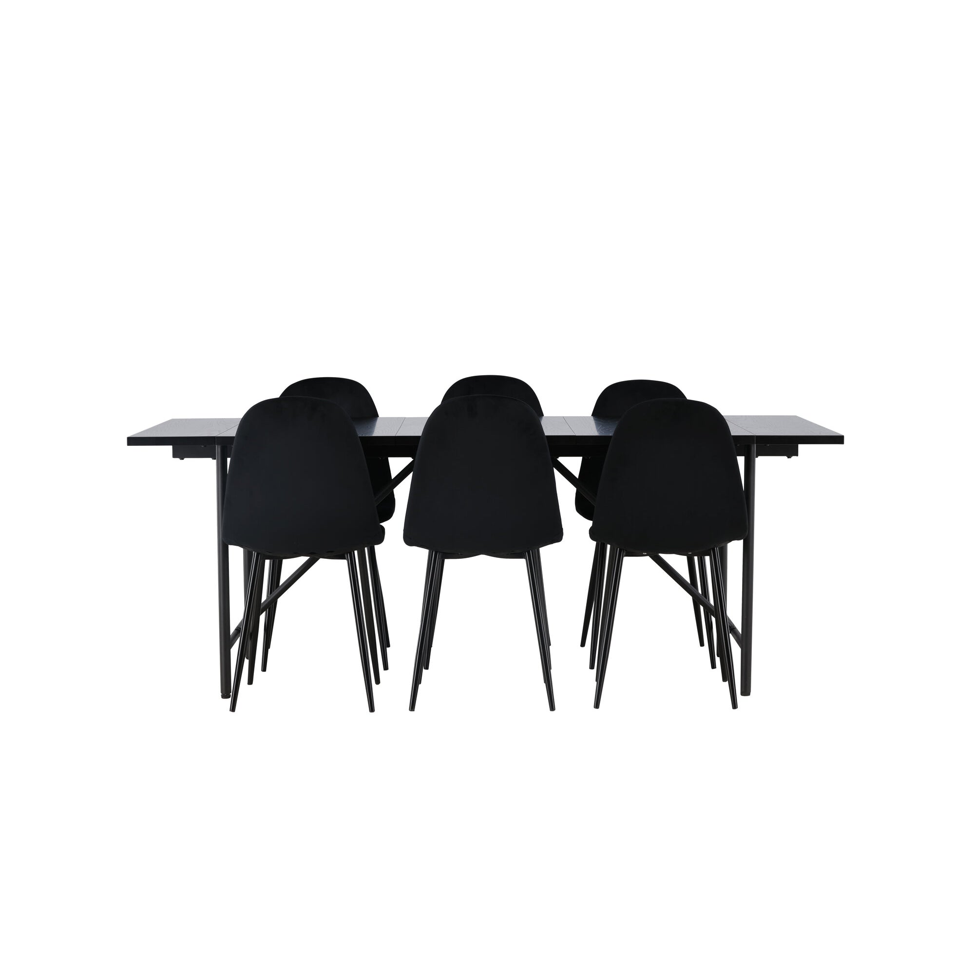 Jídelní stůl Silar - 180 cm - Černý melamin / Černé nohy+Jídelní židle Polar Diamond - Černé nohy - Black Velvet_6