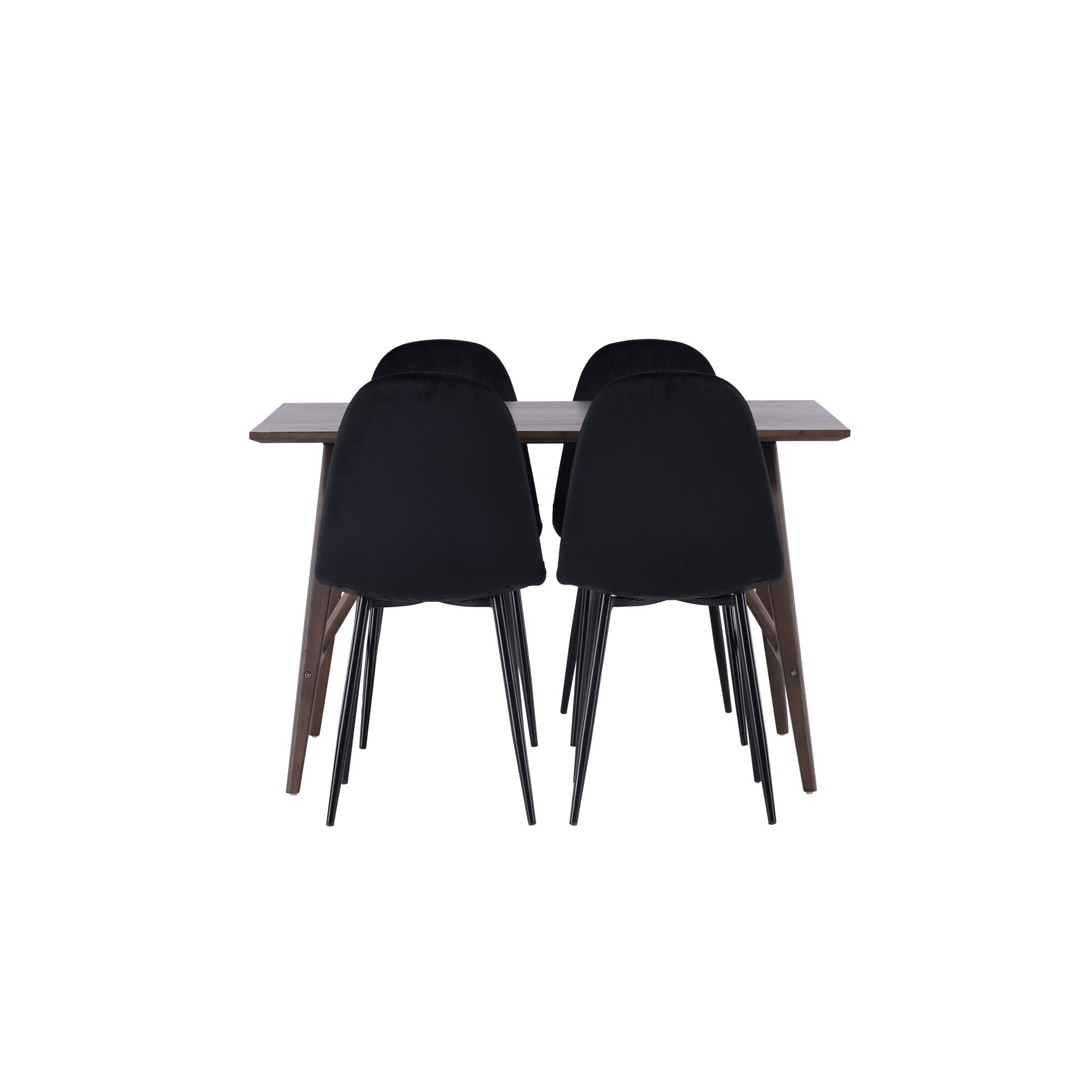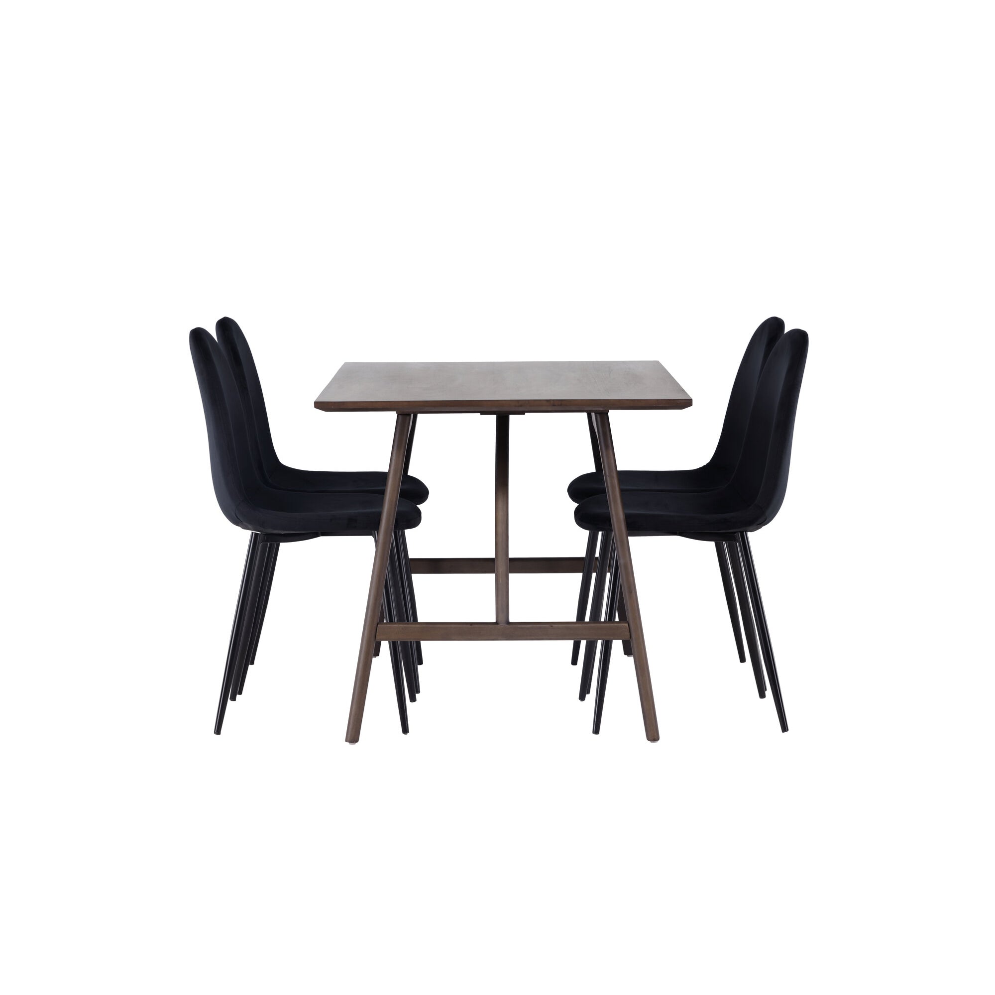 Jídelní stůl Kaseidon – kaučukové dřevo / tmavě hnědá MDF + jídelní židle Polar – černé nohy / černý samet _4