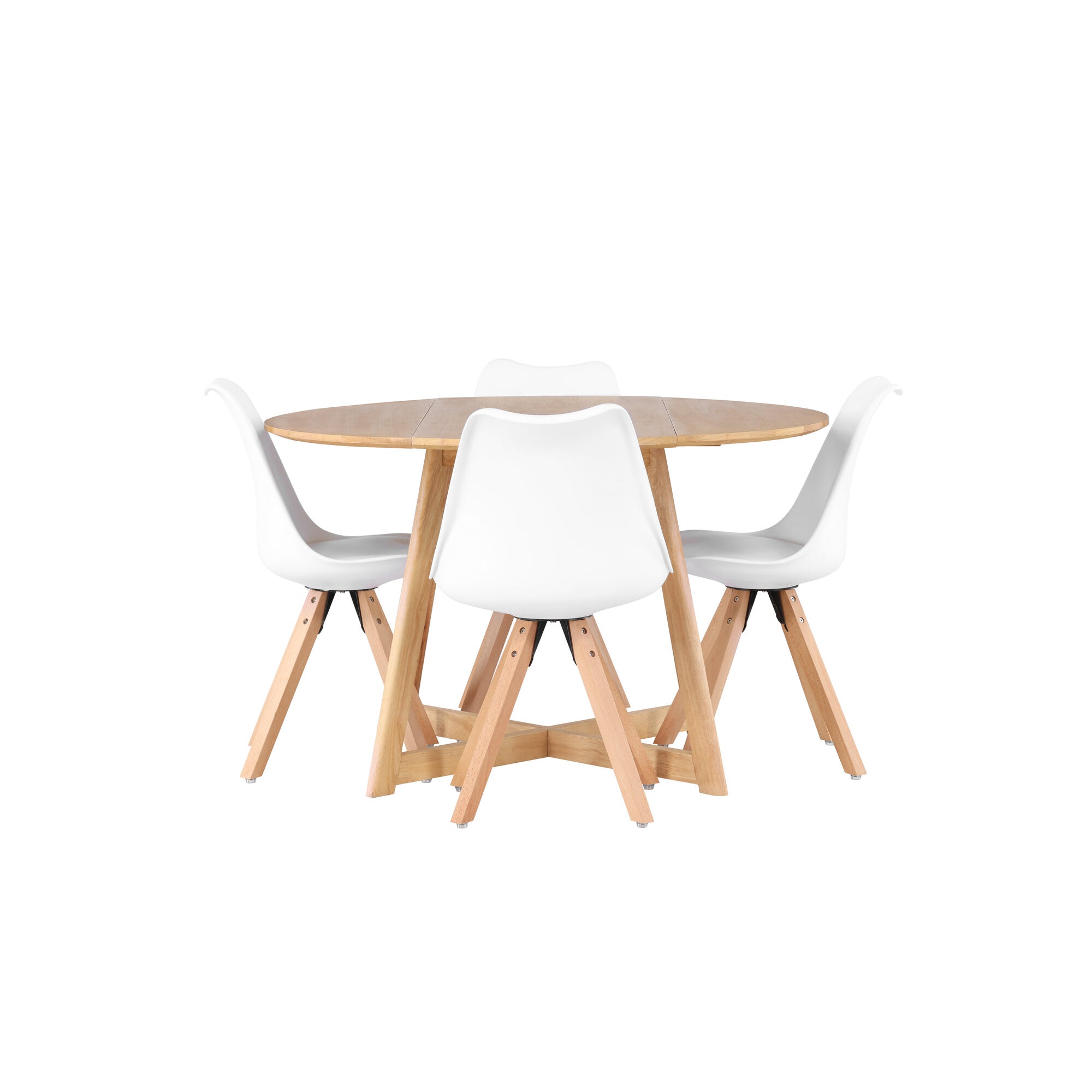 Jídelní stůl Lanzo φ120 - Přírodní / Přírodní MDF + Jídelní židle Lilja - Oaklook / Béžová látka _4