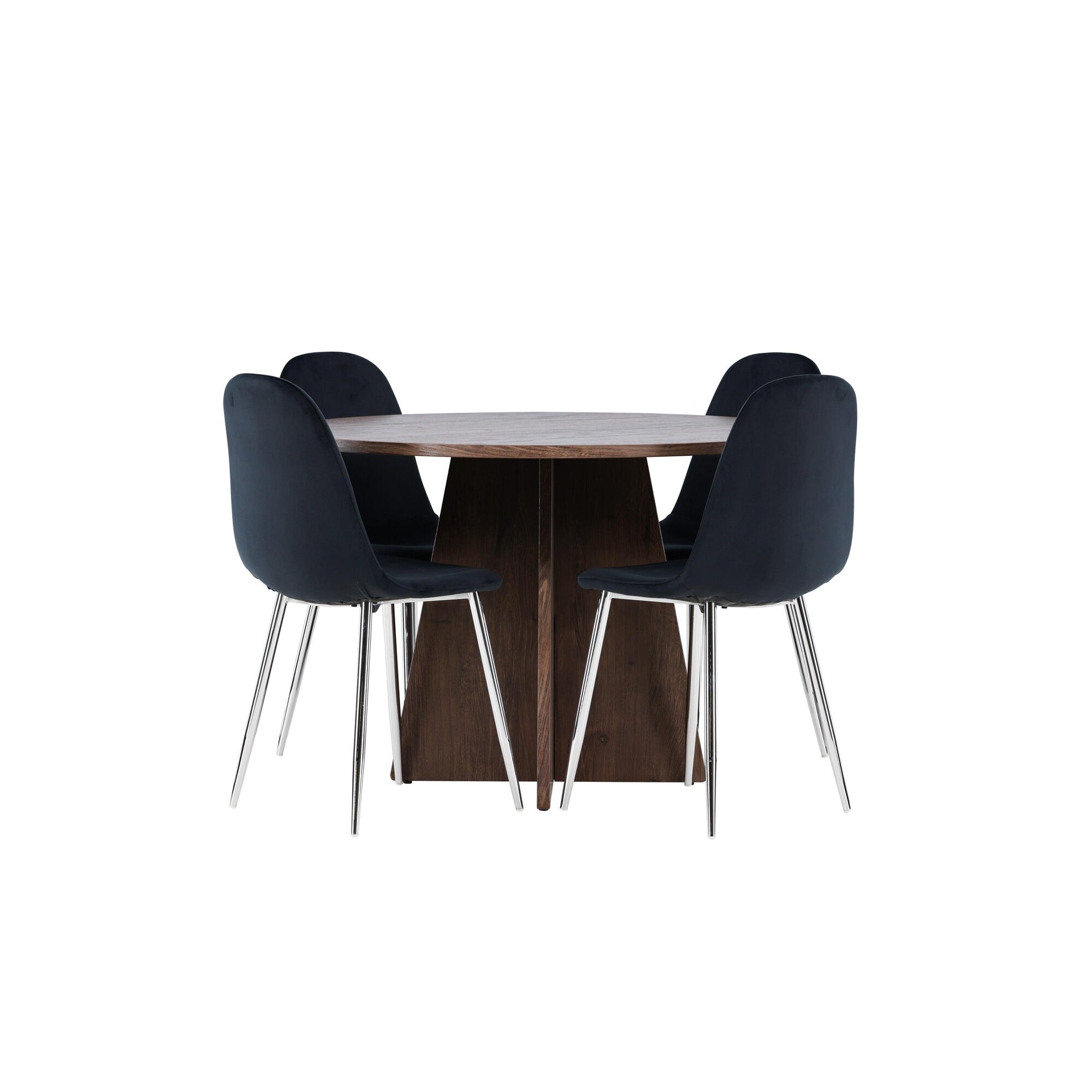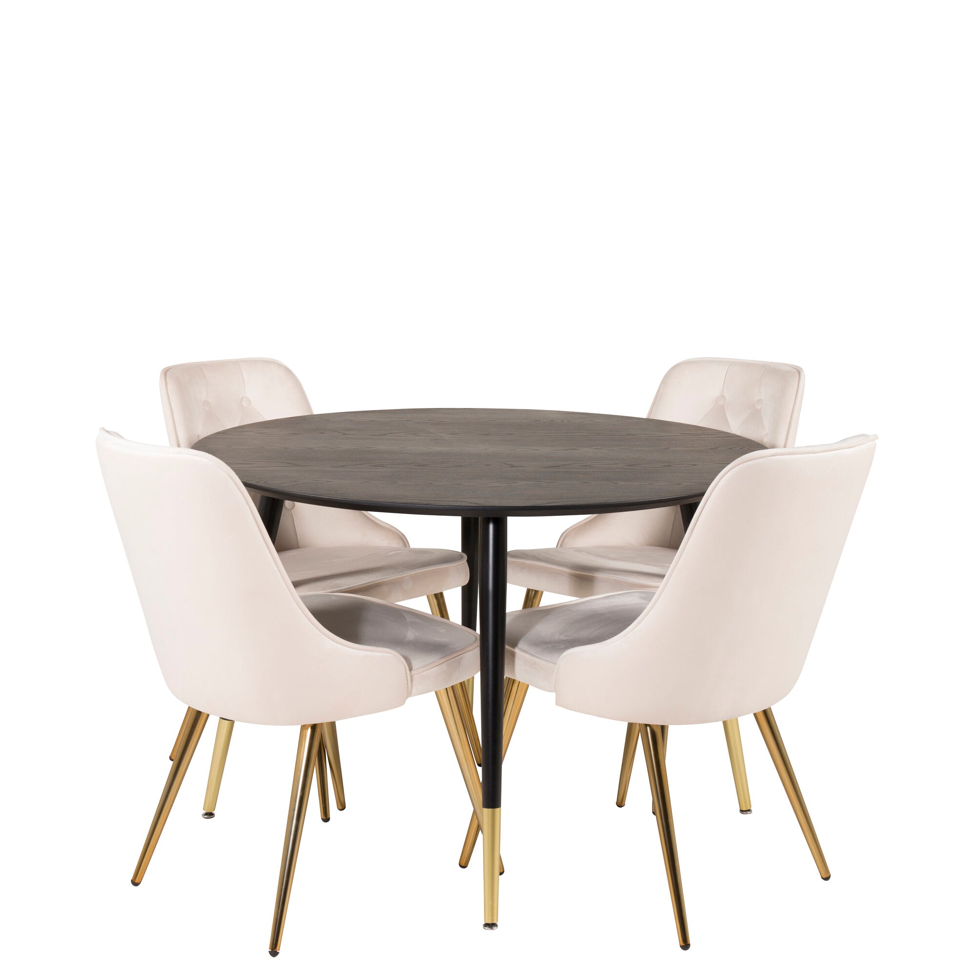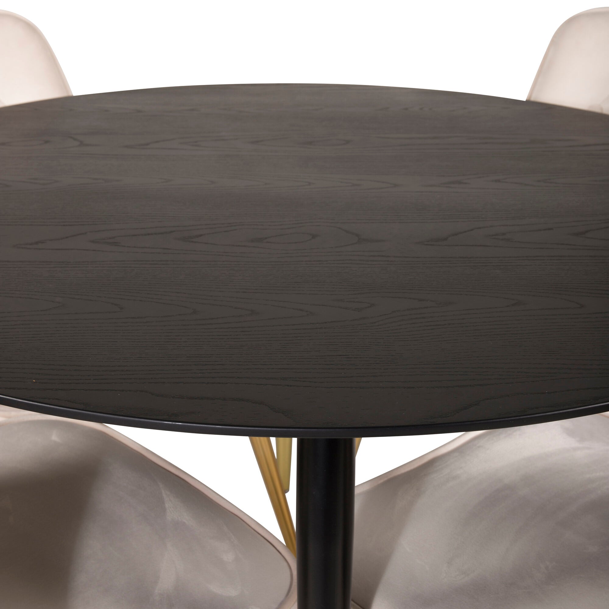 Jídelní stůl Dipp - 115 cm - Černá dýha / černé nohy s mosazným dippem + Limhamn Light - Židle - Gold Velvet_4