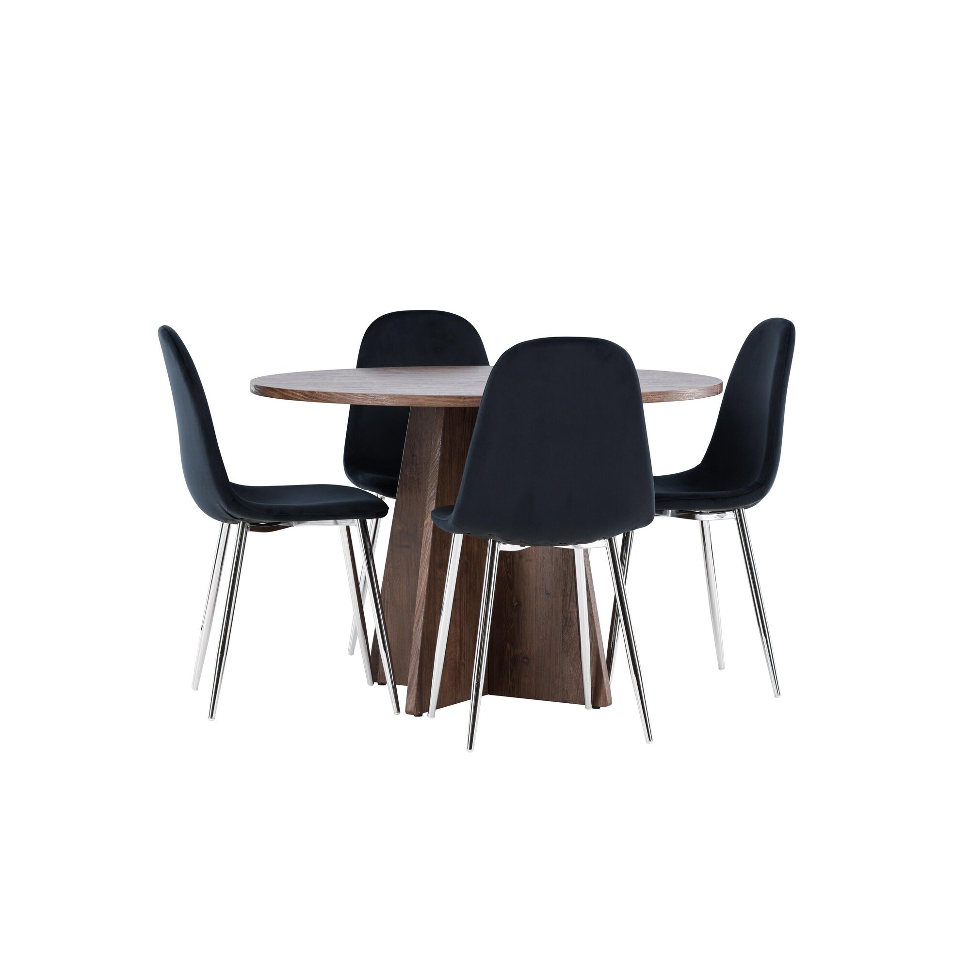 Bootcut kulatý jídelní stůl - černá / černá Fanéer + jídelní židle Polar - černý samet / chrom _4