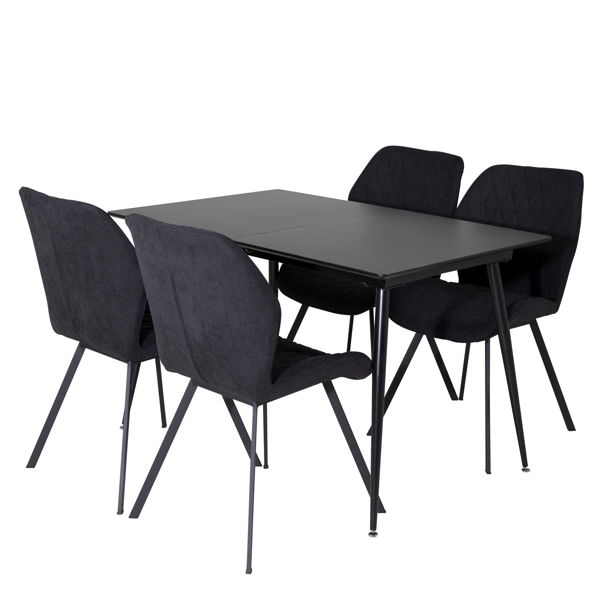 Prodlužovací stůl Silar – černý melamin/černé nohy+jídelní židle Gemma – černé nohy – černá látka_4