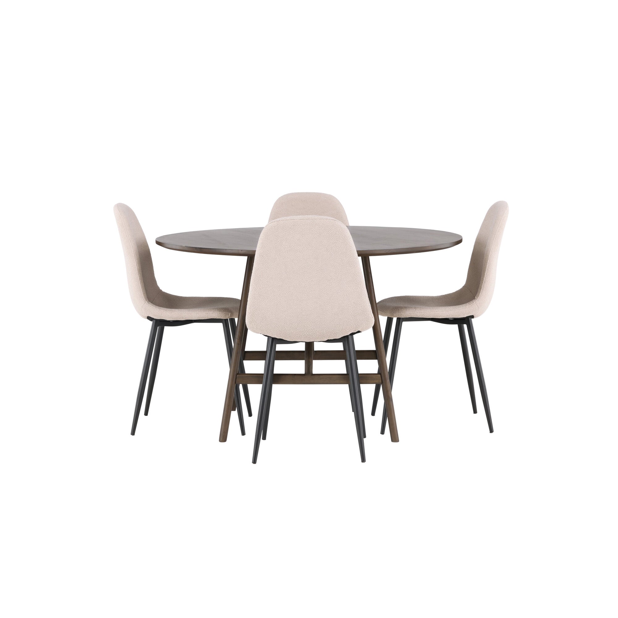 Jídelní stůl Kaseidon - kulatý - kaučukové dřevo / tmavě hnědá MDF + jídelní židle Polar - černá / béžová Boucle _4
