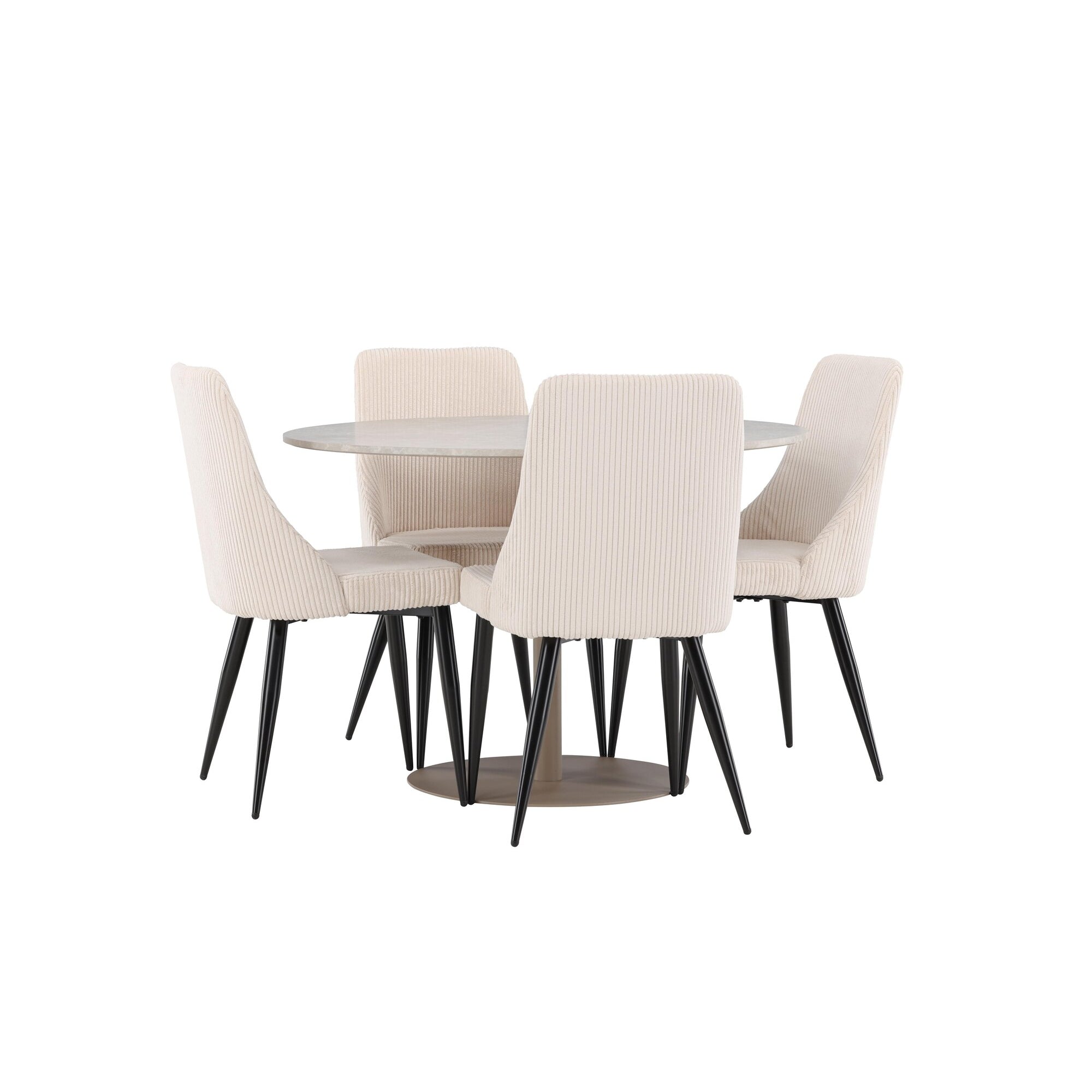 Stůl Flora - Bílý se 4 nočními křesly - Černá / Béžová