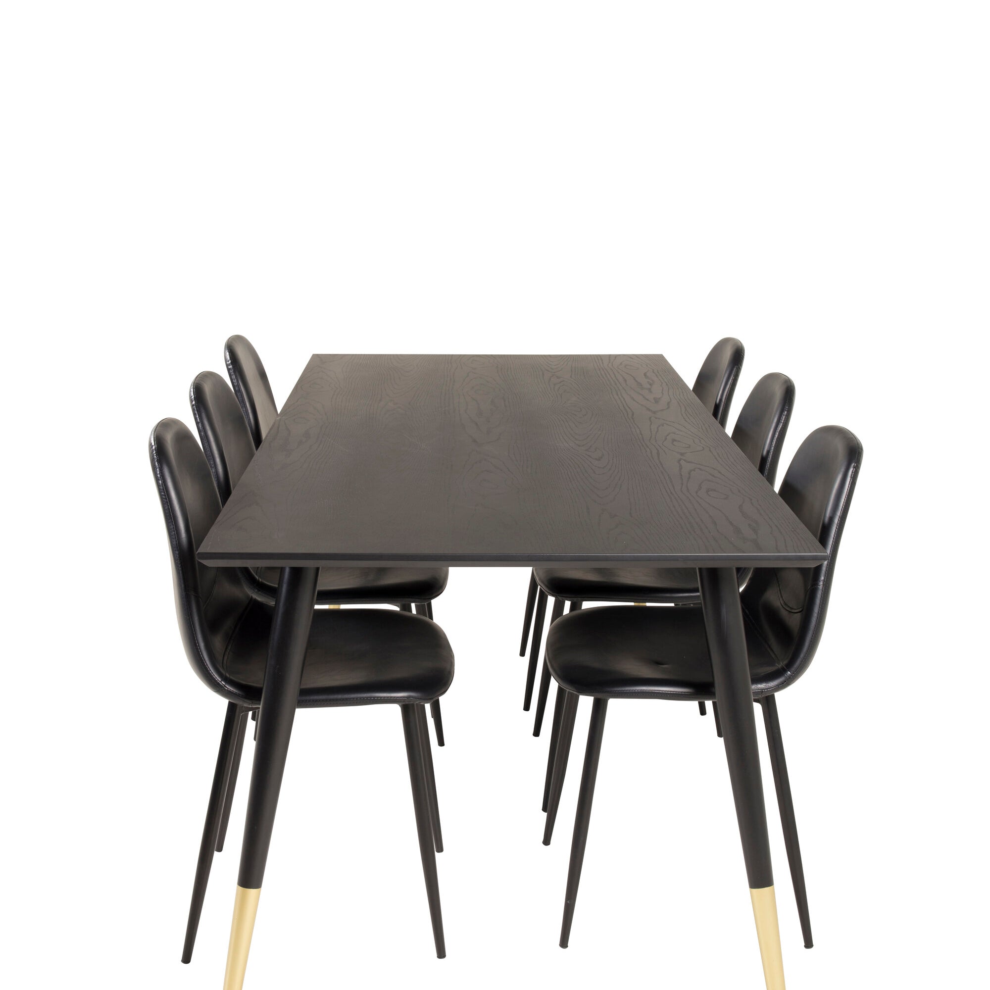 Dipp jídelní stůl - 180*90cm - Černá dýha / černé nohy s mosazným dippem + Polar Matstol - Svart / Svart PU _6