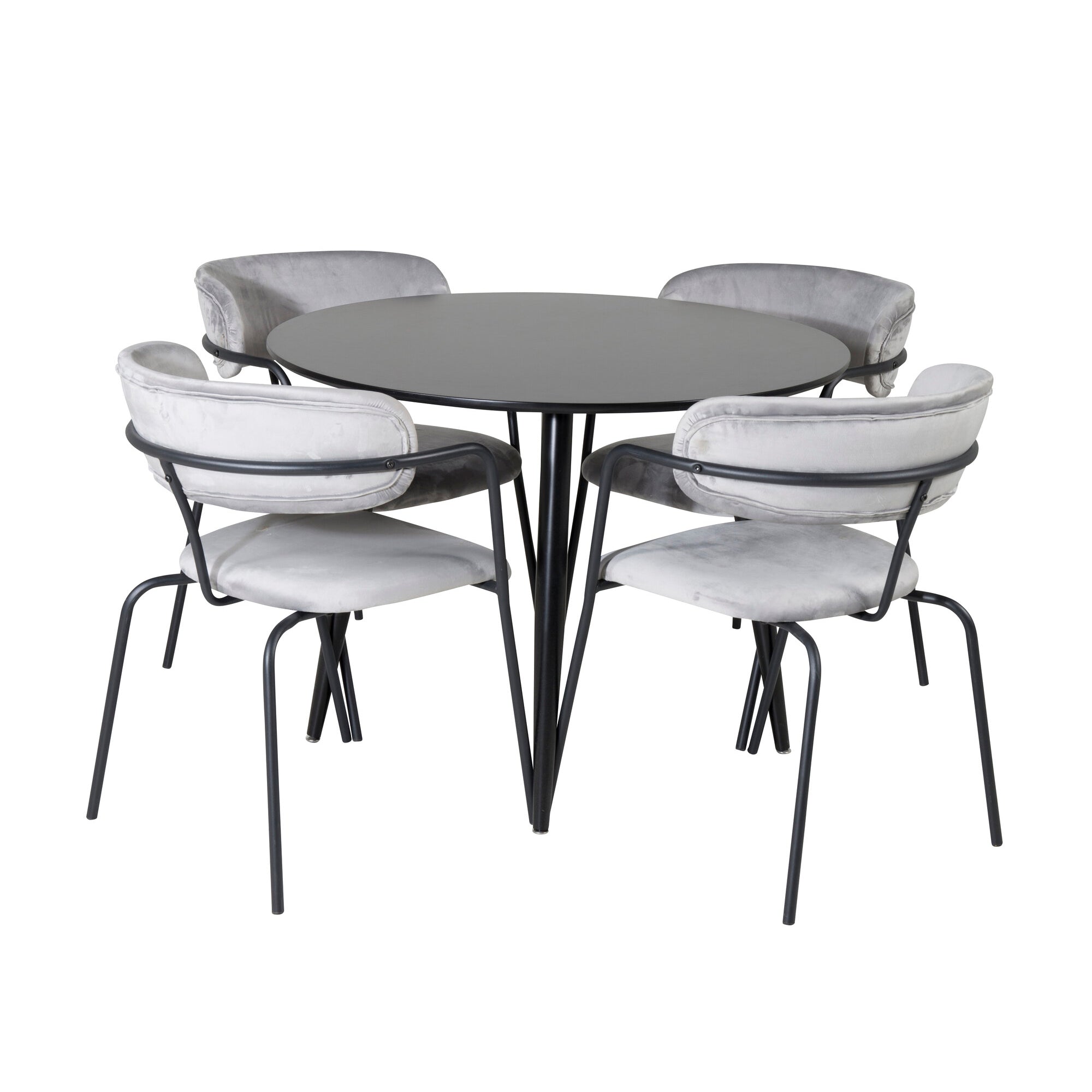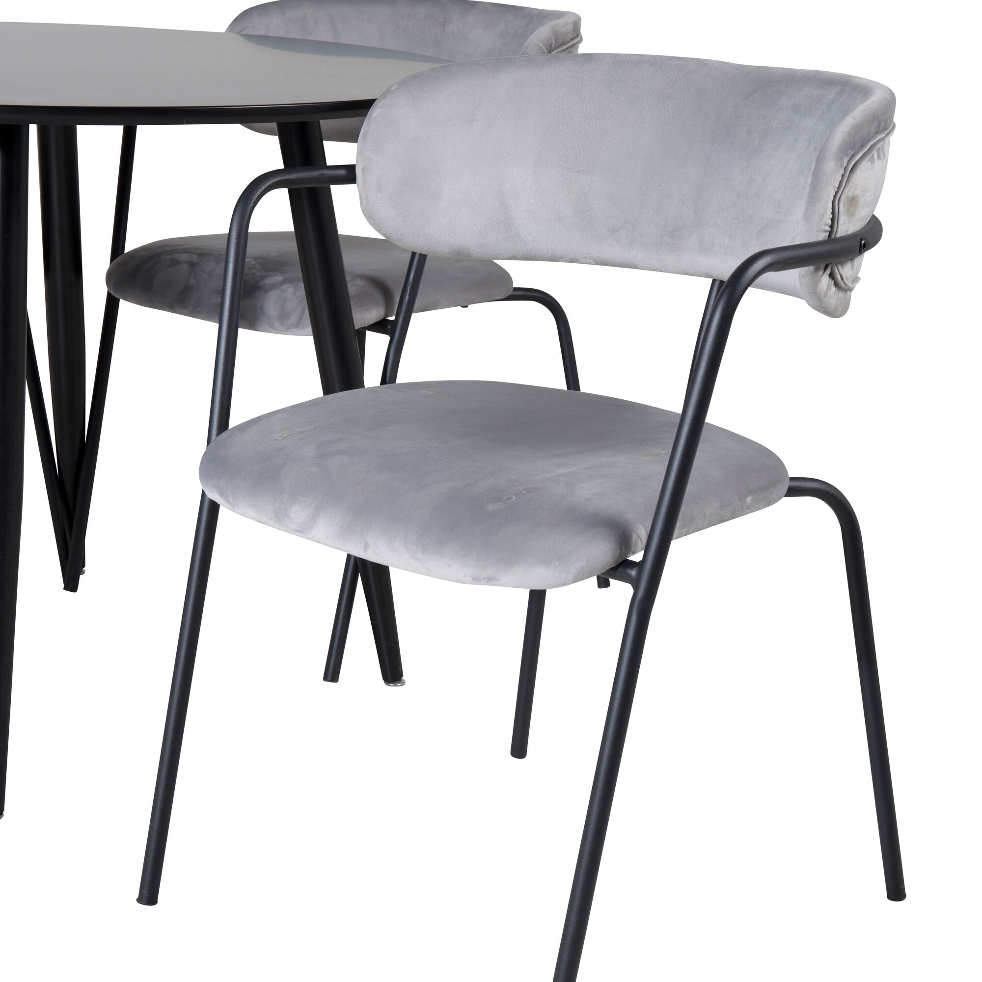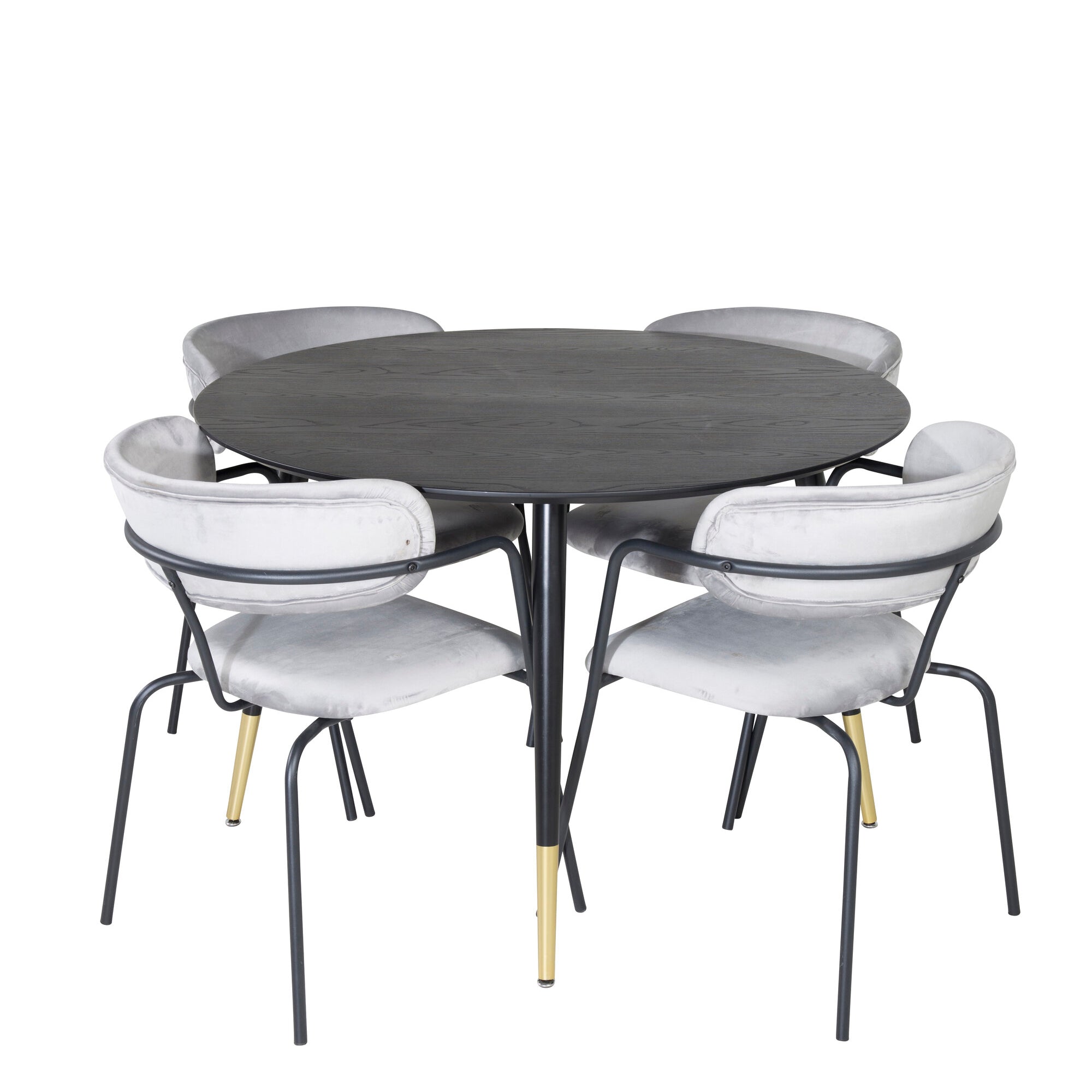 Plaza Runt Matbord - Svart / Svart - ø100*H75 +Křeslo Arrow - Black Legs - Grey Velvet _4