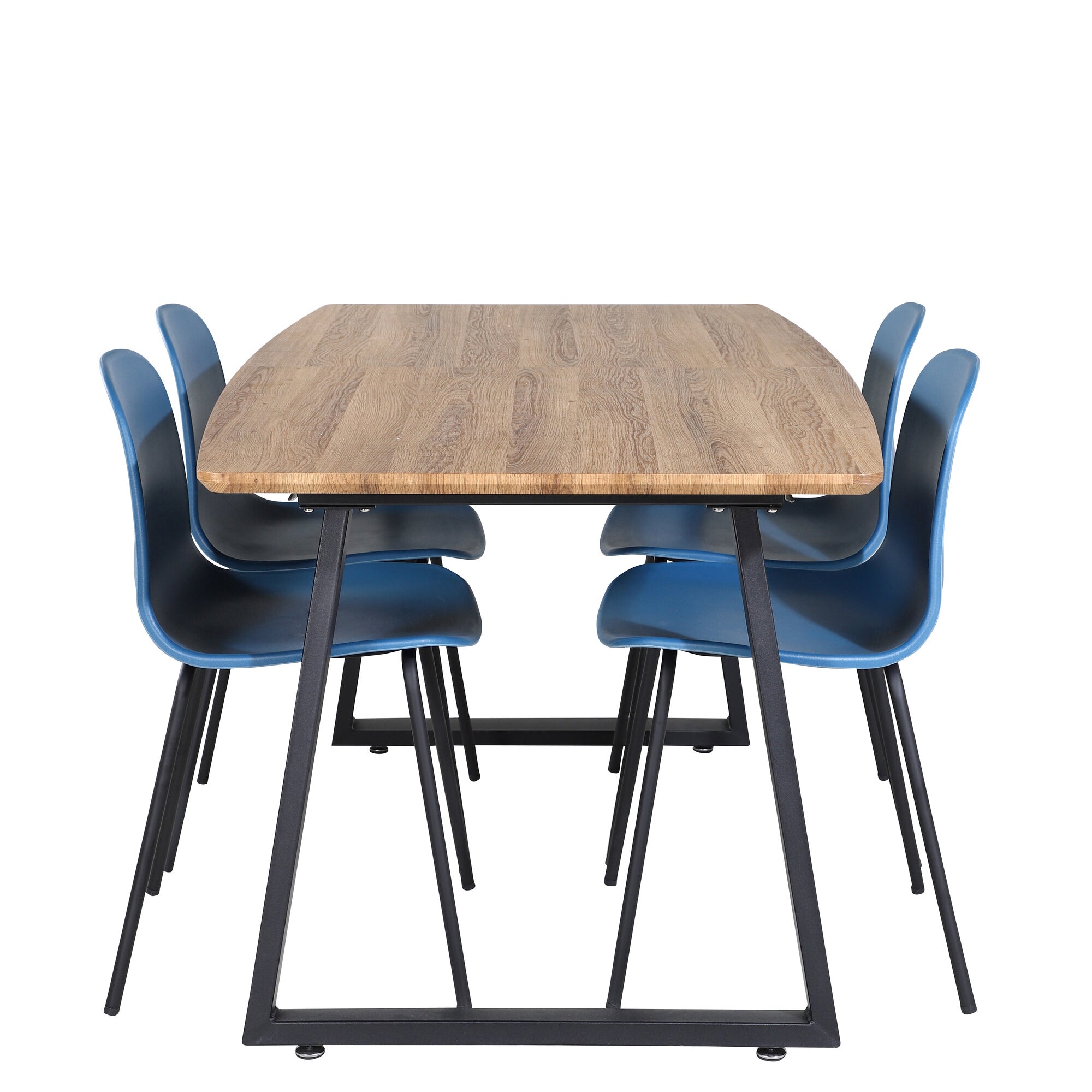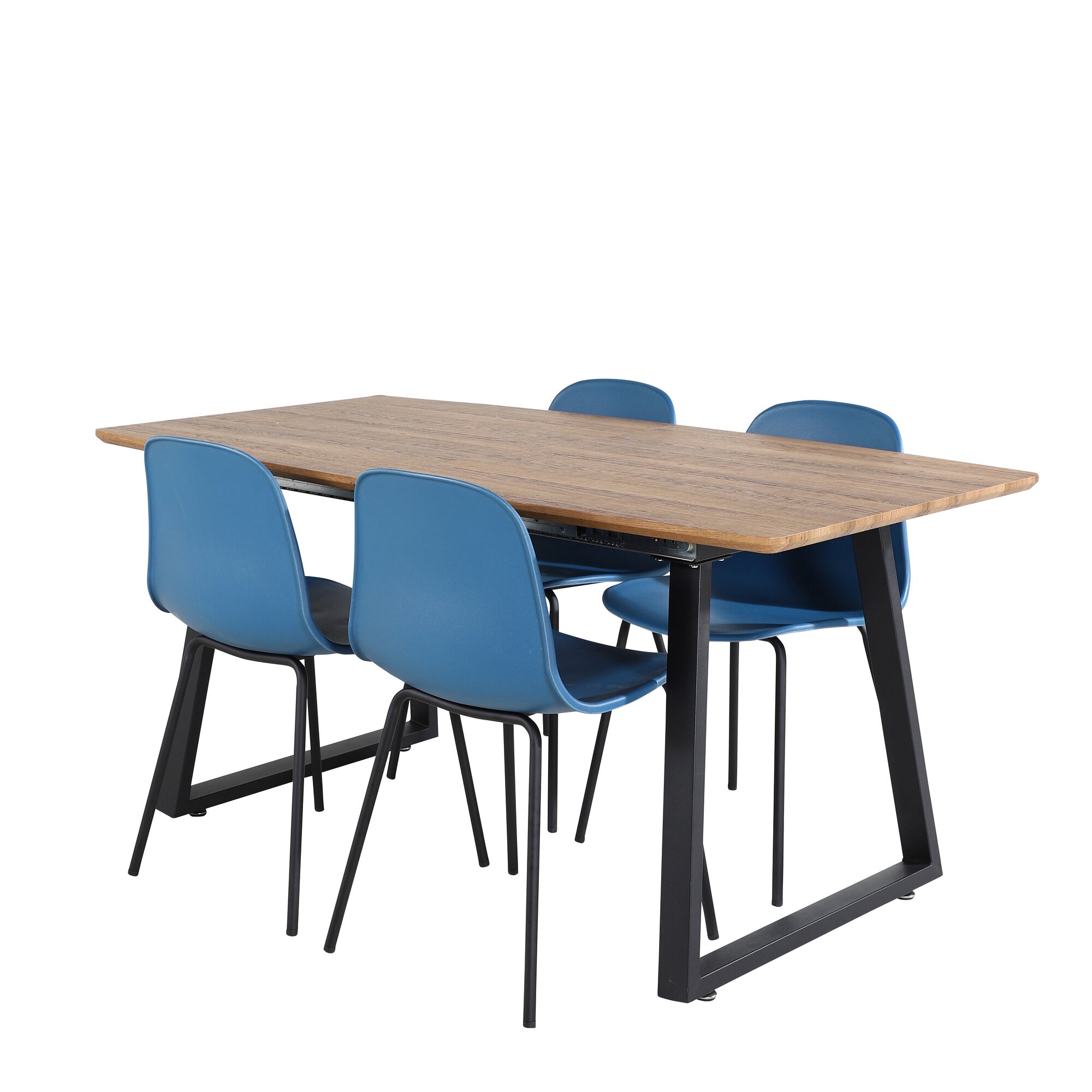 Jídelní stůl Inca - 160/200*85*H75 - Dub / Černá+Arktická jídelní židle - Černé nohy - Modrý Plast_4